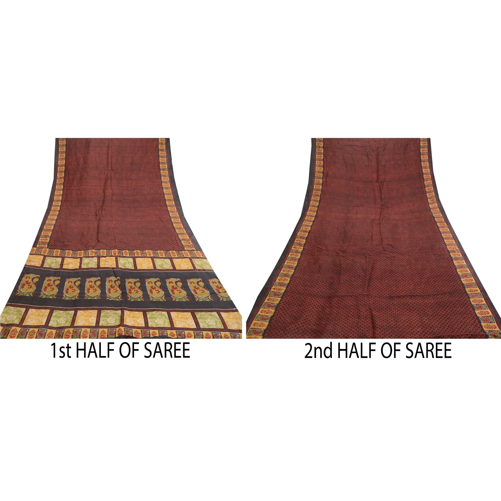 Sanskriti Vintage Sarees Black From India Pure Silk Printed Sari Craft Sustainable Fabric