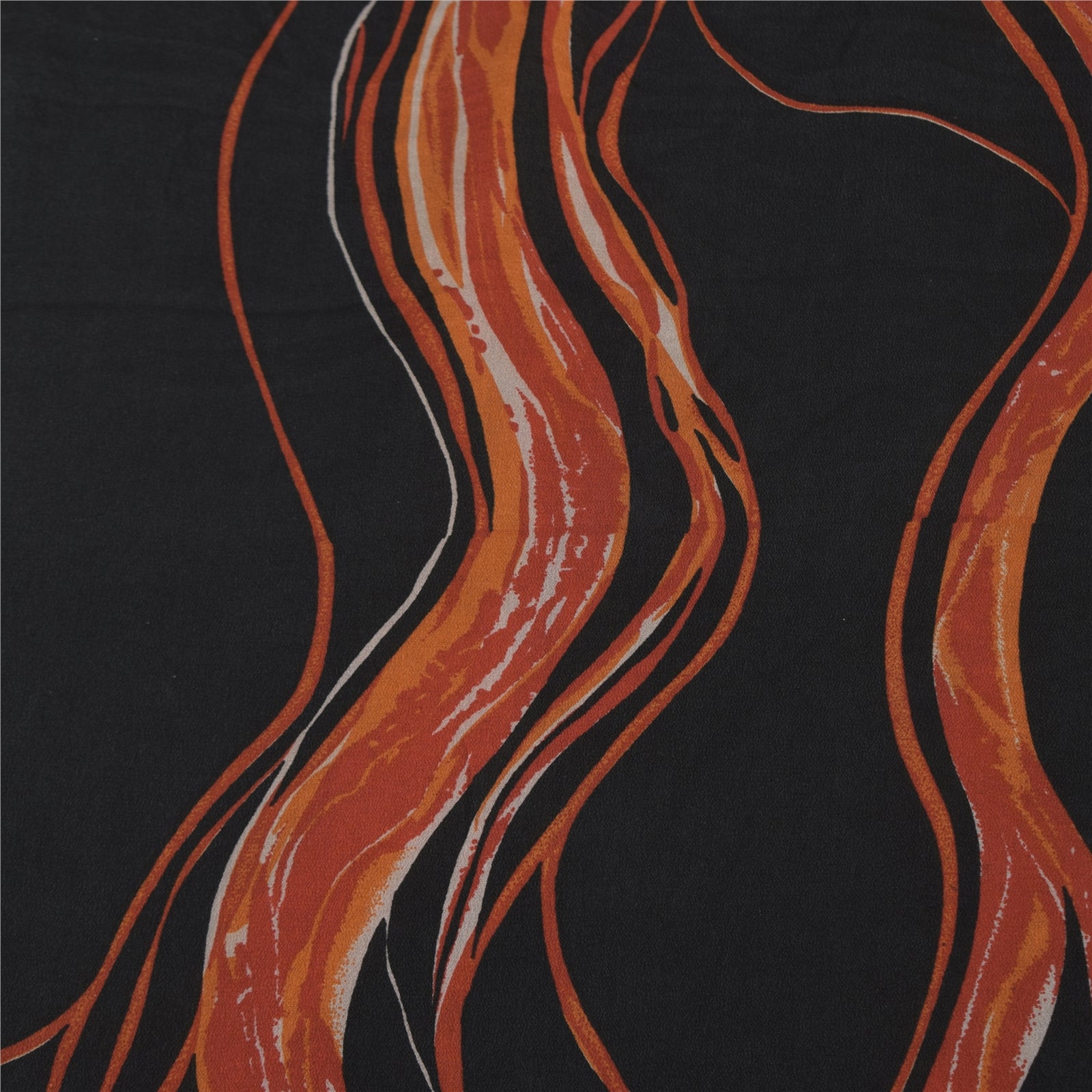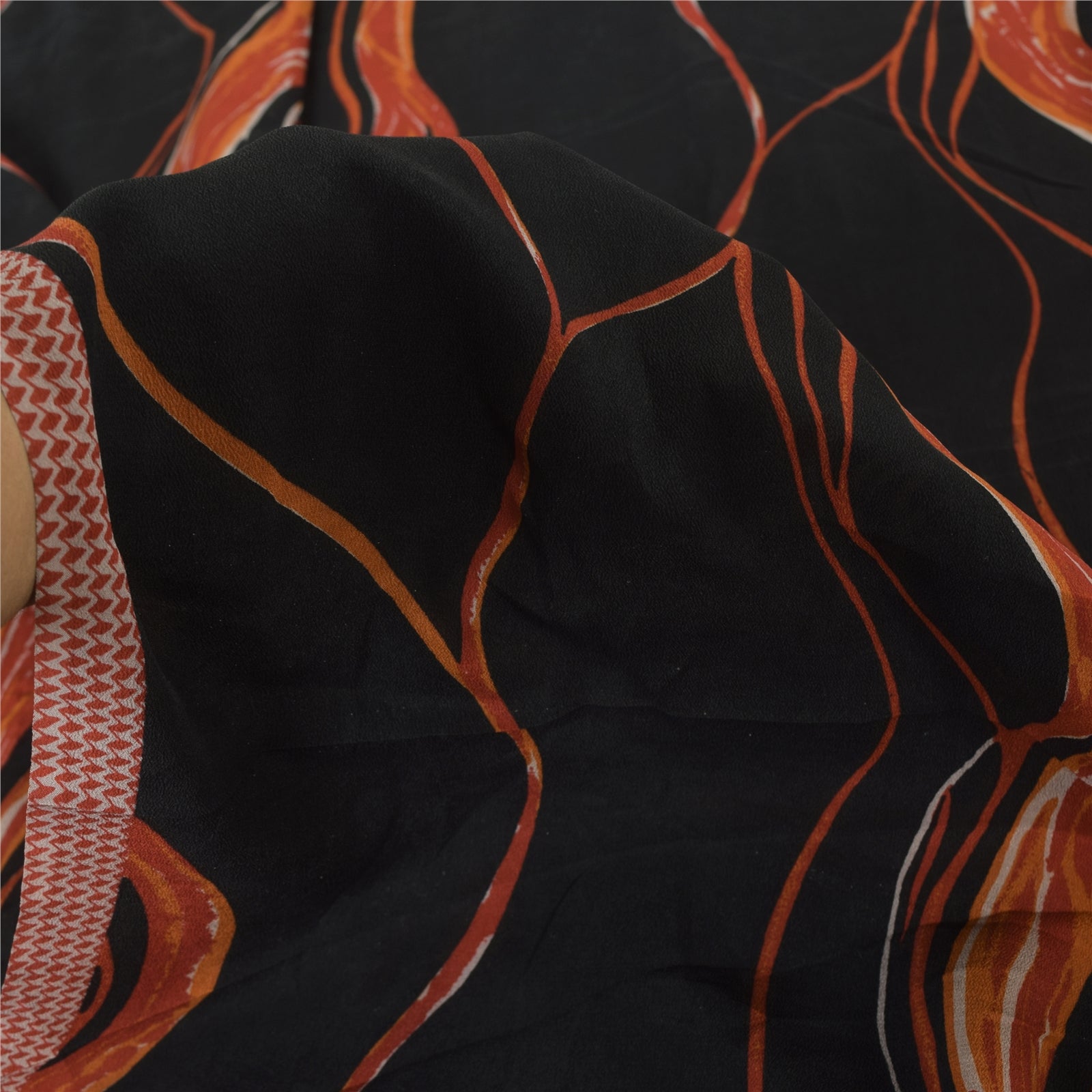 Sanskriti Vintage Sarees Black/Orange Pure Crepe Silk Printed Sari Craft Sustainable Fabric
