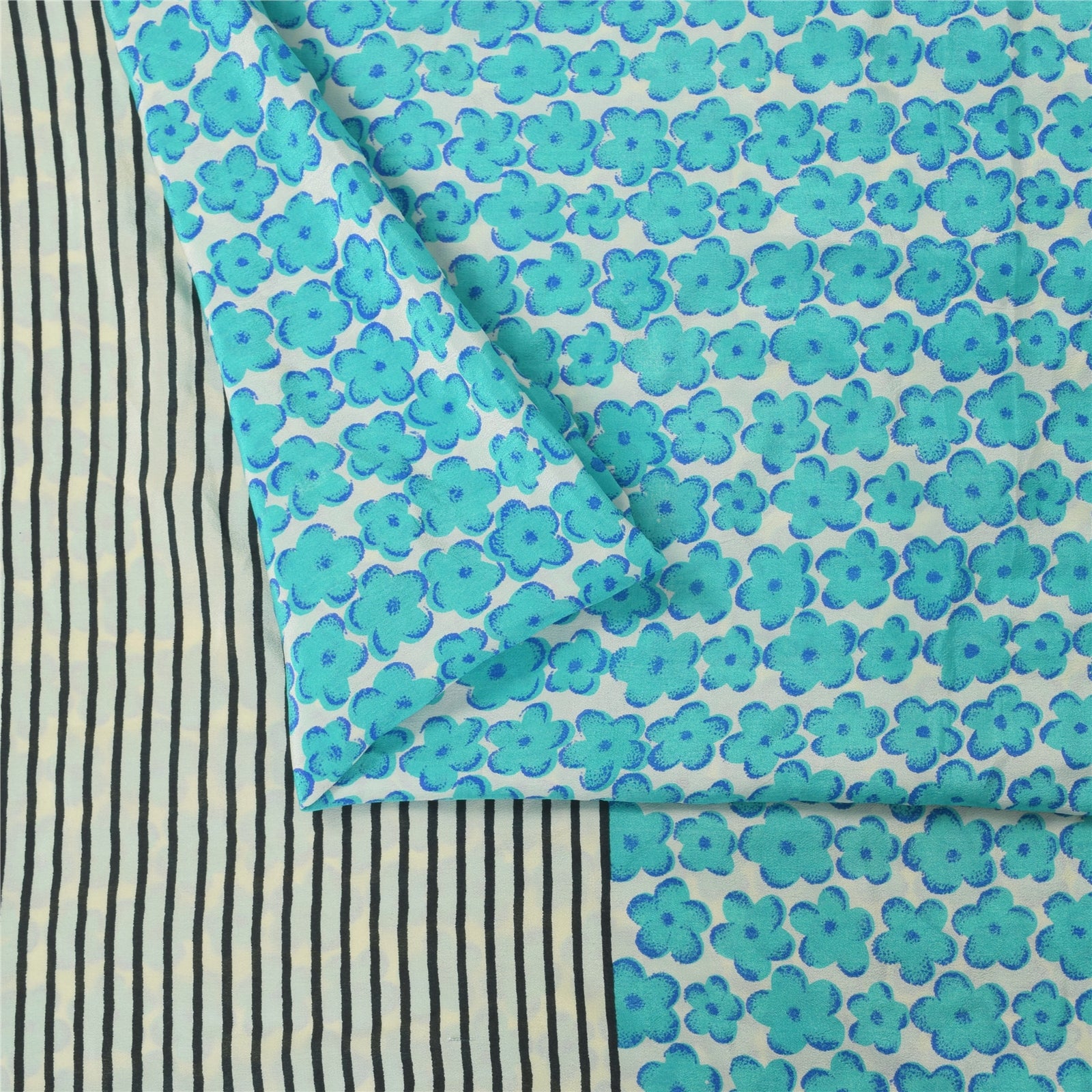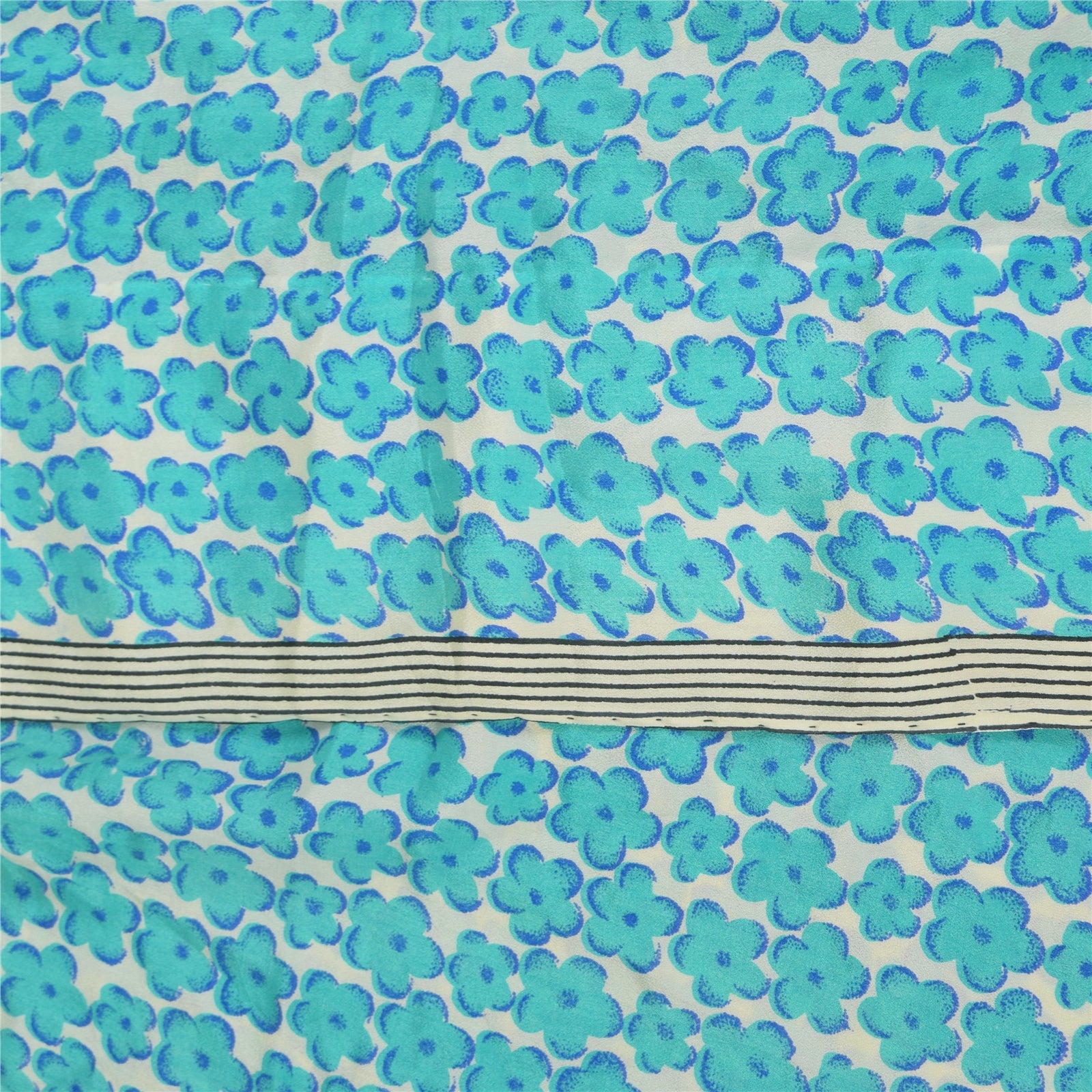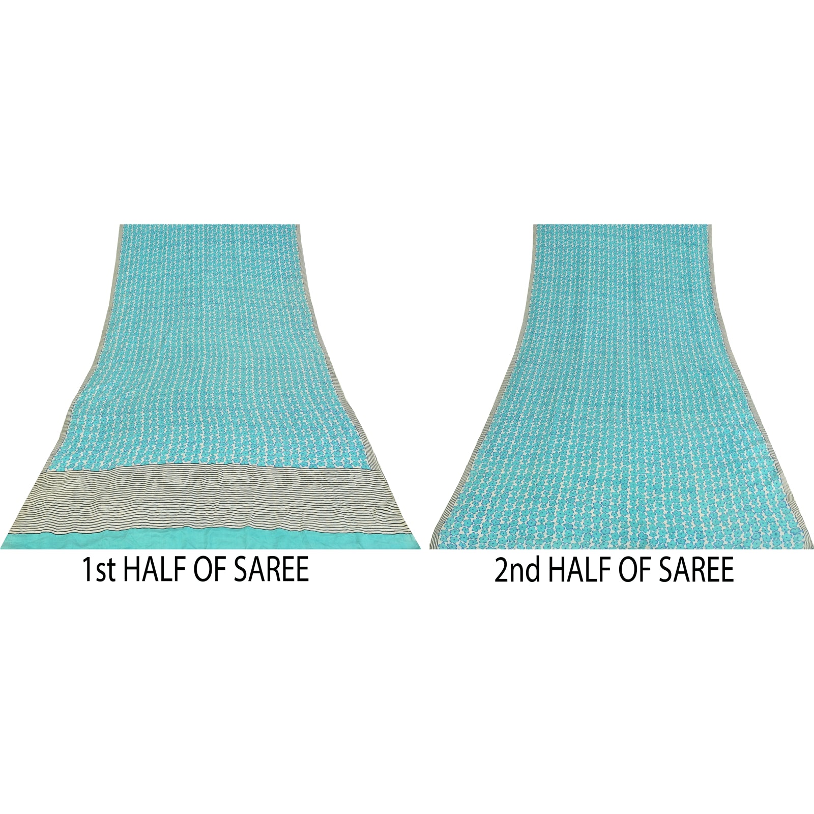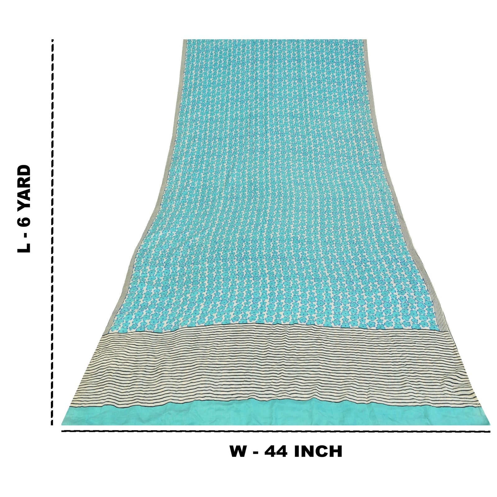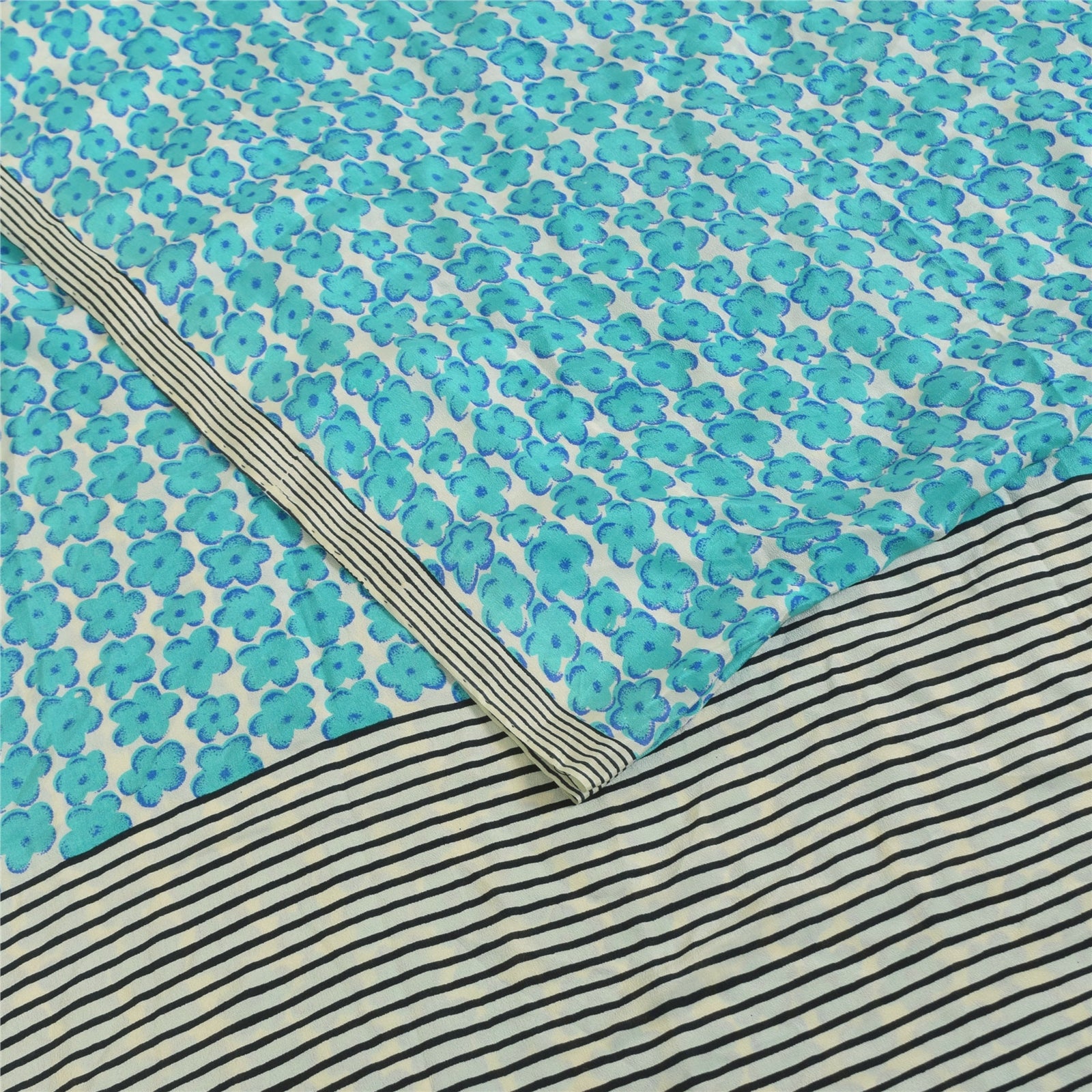 Sanskriti Vintage Sarees Blue Pure Crepe Silk Printed Sari 6yd Craft Fabric