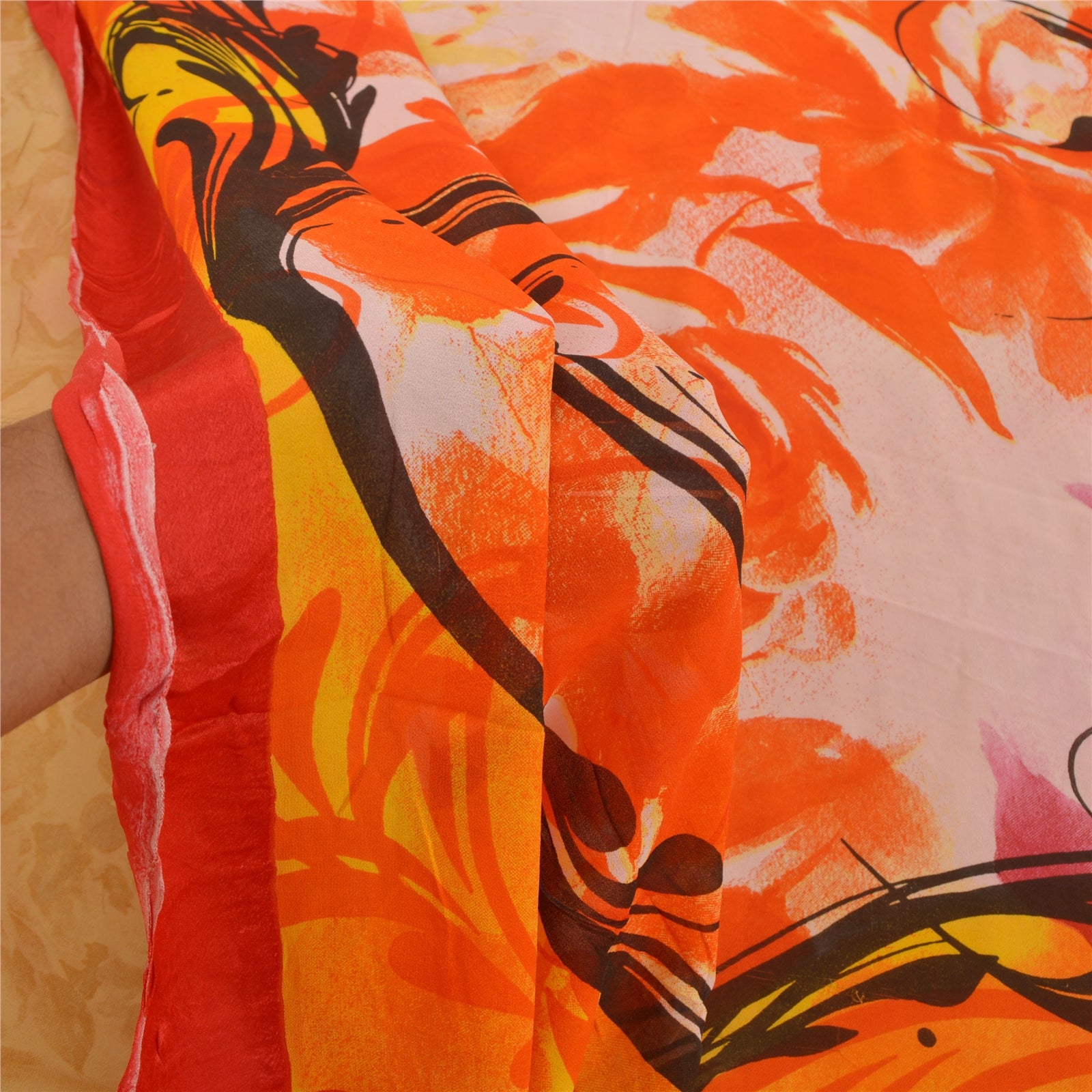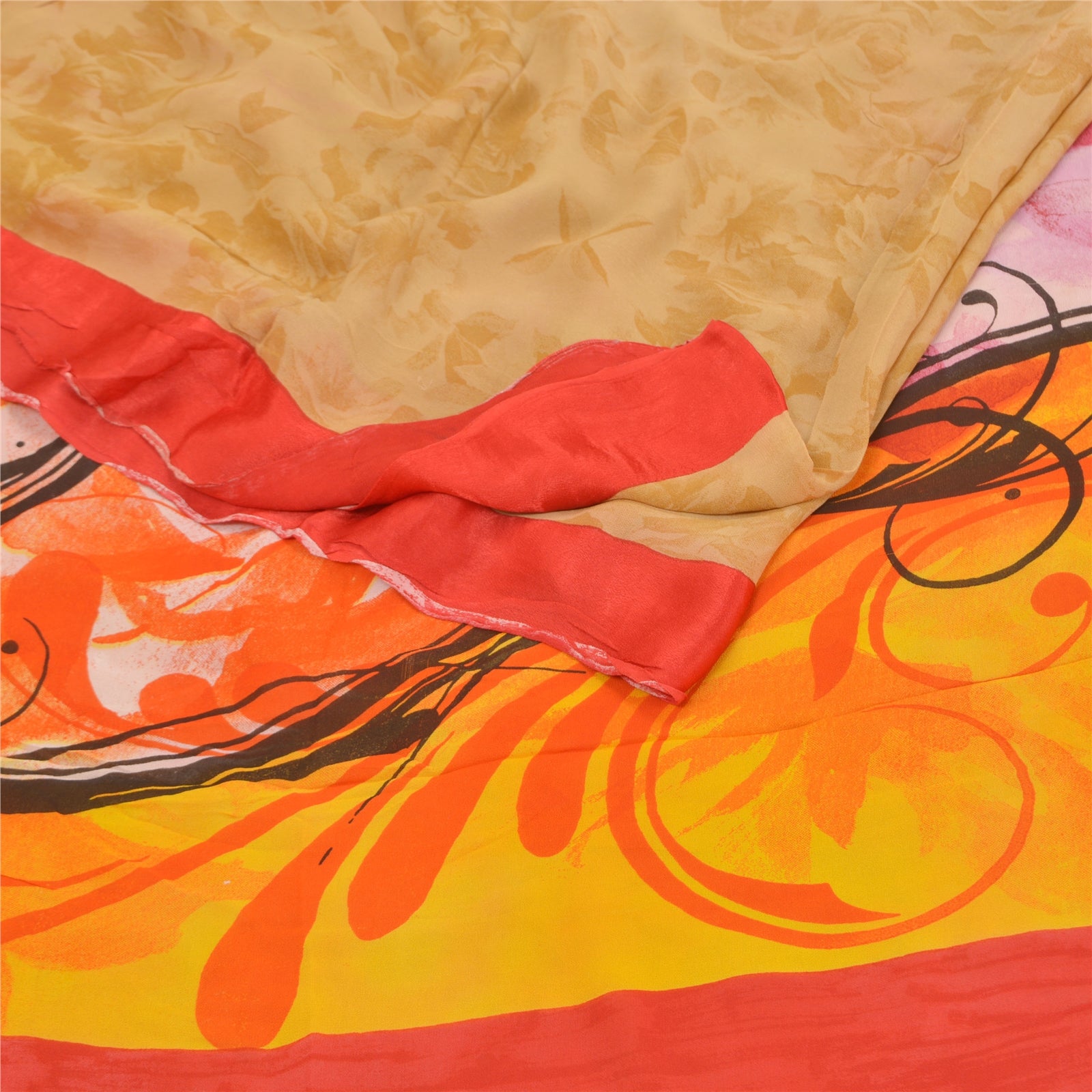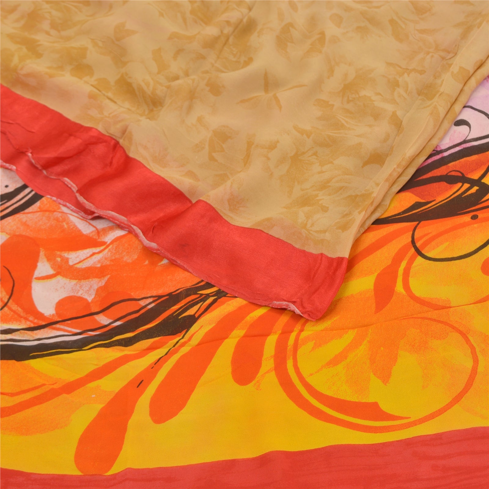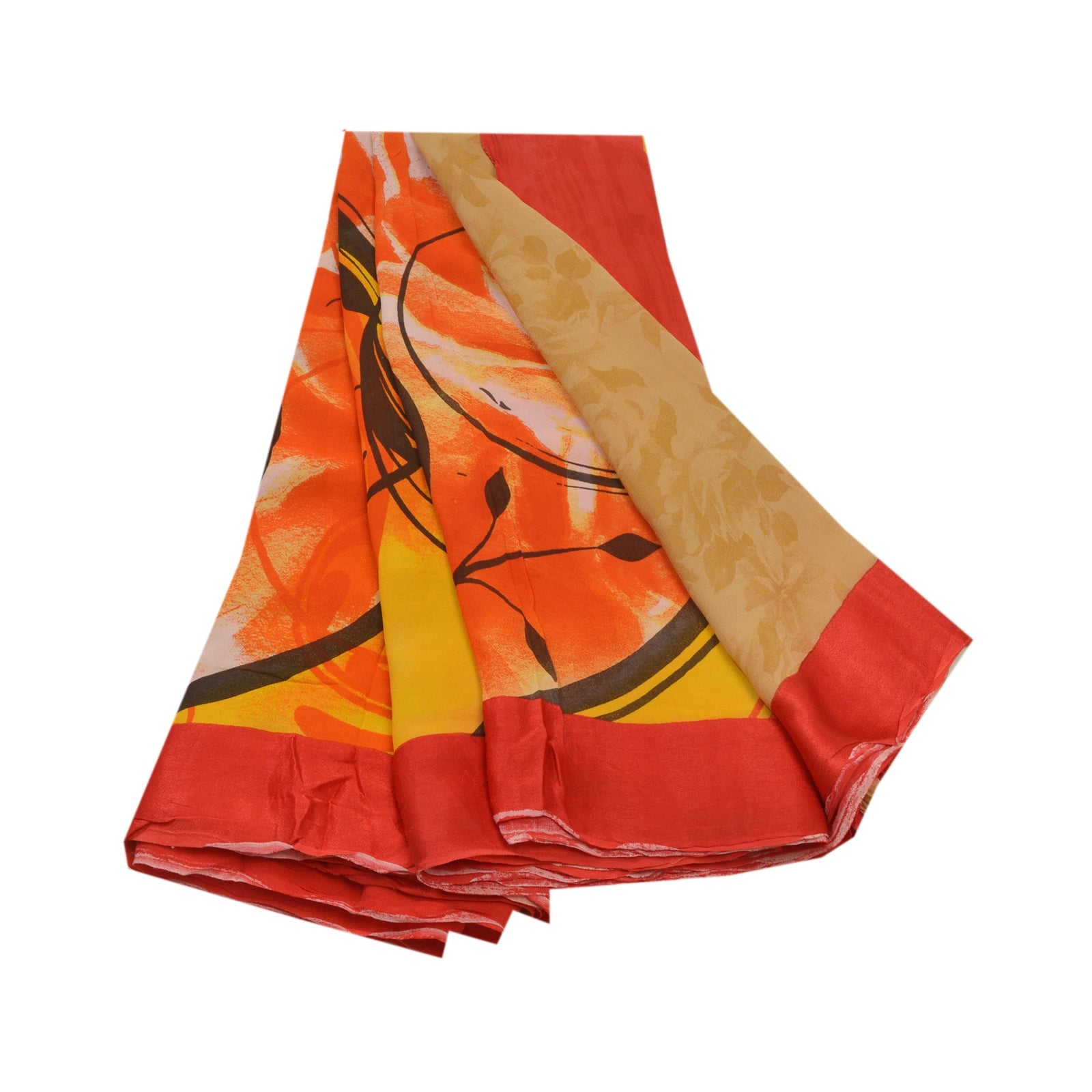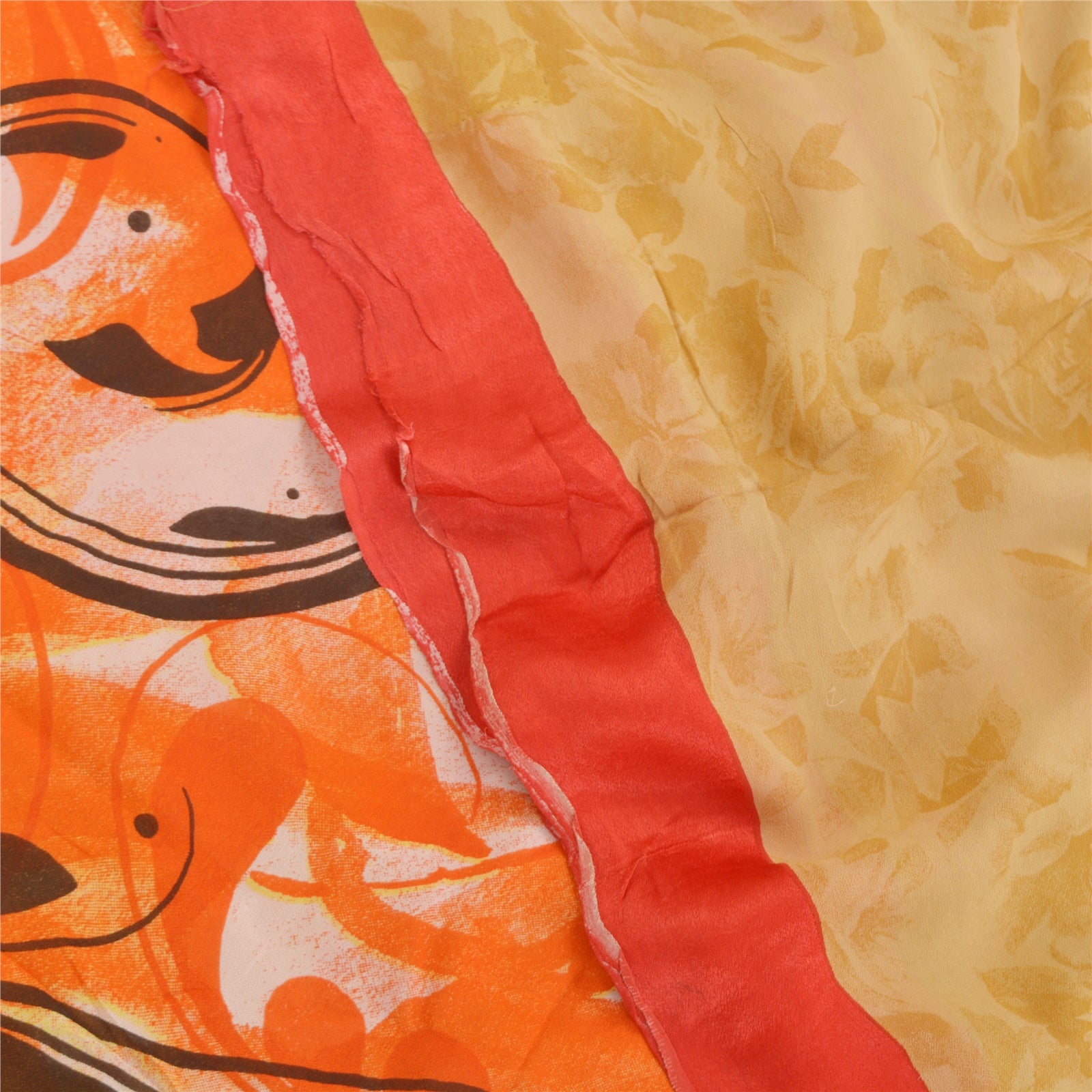 Sanskriti Vintage Sarees Brown Blend Georgette Sari Printed Soft Craft Sustainable Fabric