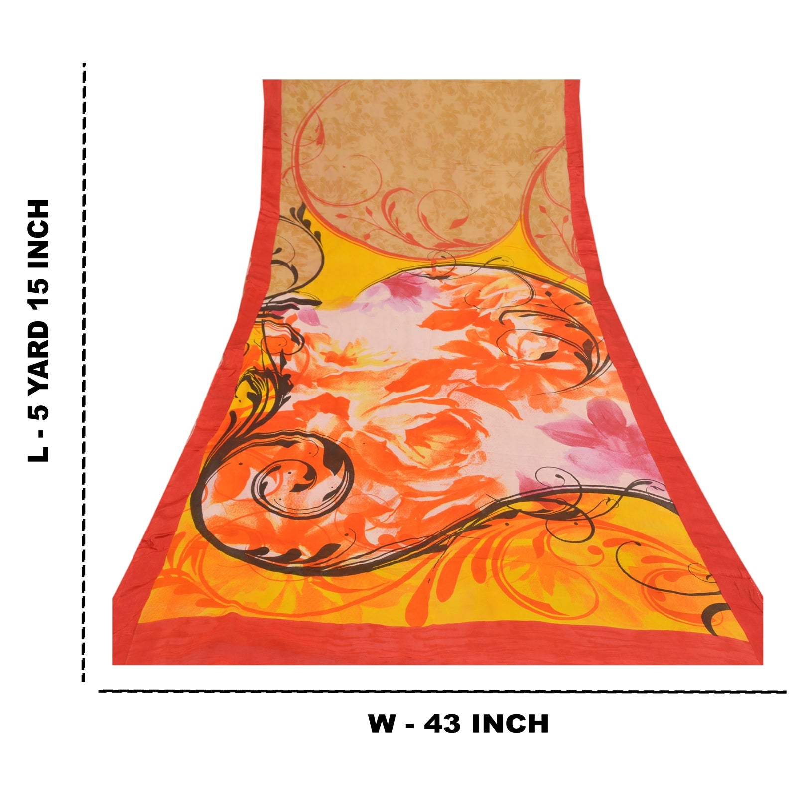 Nice brown colored blend georgette printed saree. Pallu & border has printed floral design. Similar design in center part of saree. What is special about this saree? Brilliant design on soft Sustainable Fabric is really enhancing the beauty of the saree.This unique vintage saree can be used for various crafting ideas even if you don't want to use it as a sari. Design a dress, use it as a as window dressing, upholstery, sarongs, throw, dress making and table linen much more. Let your creative juices flow and use this decorated Sustainable Fabric in multiple fashion.
