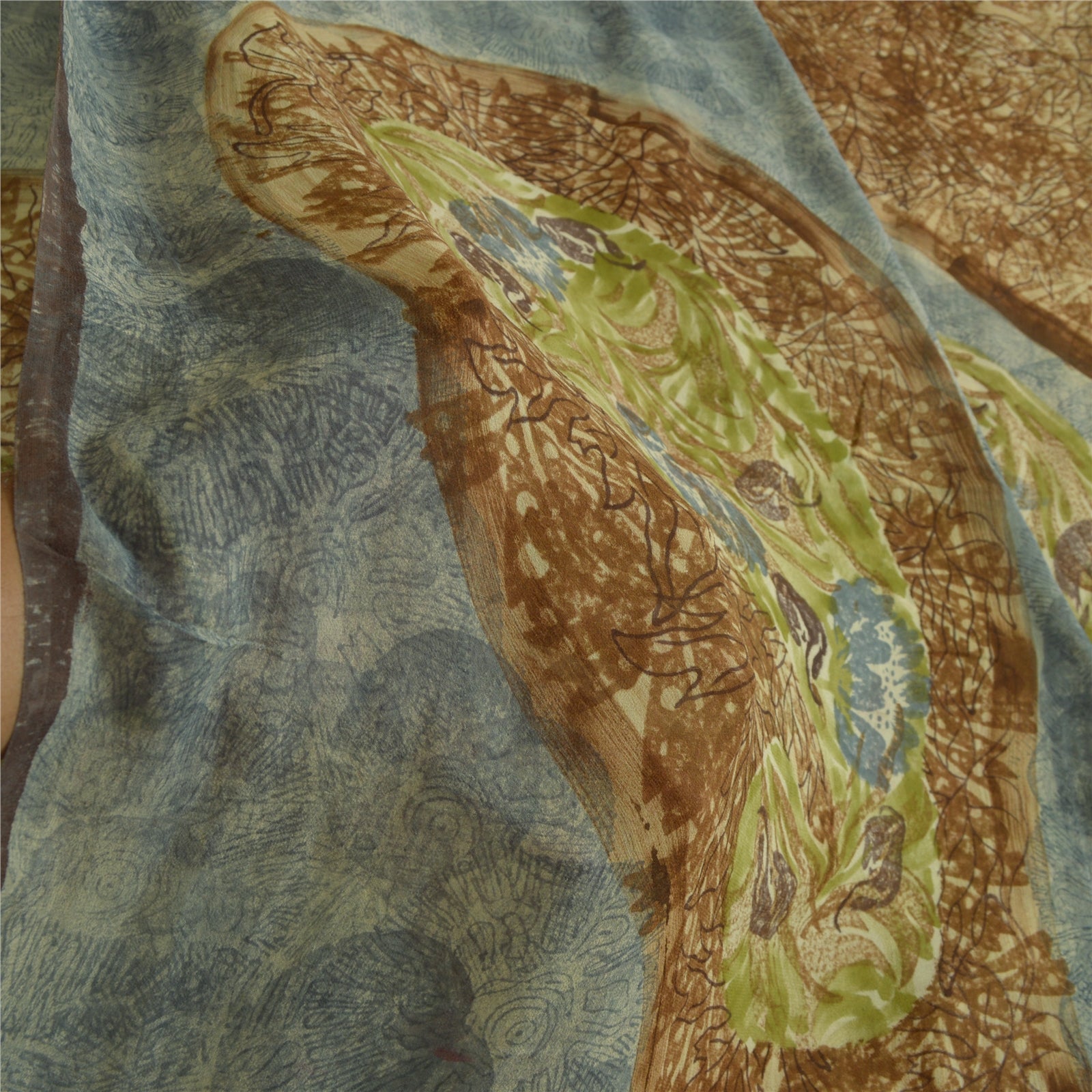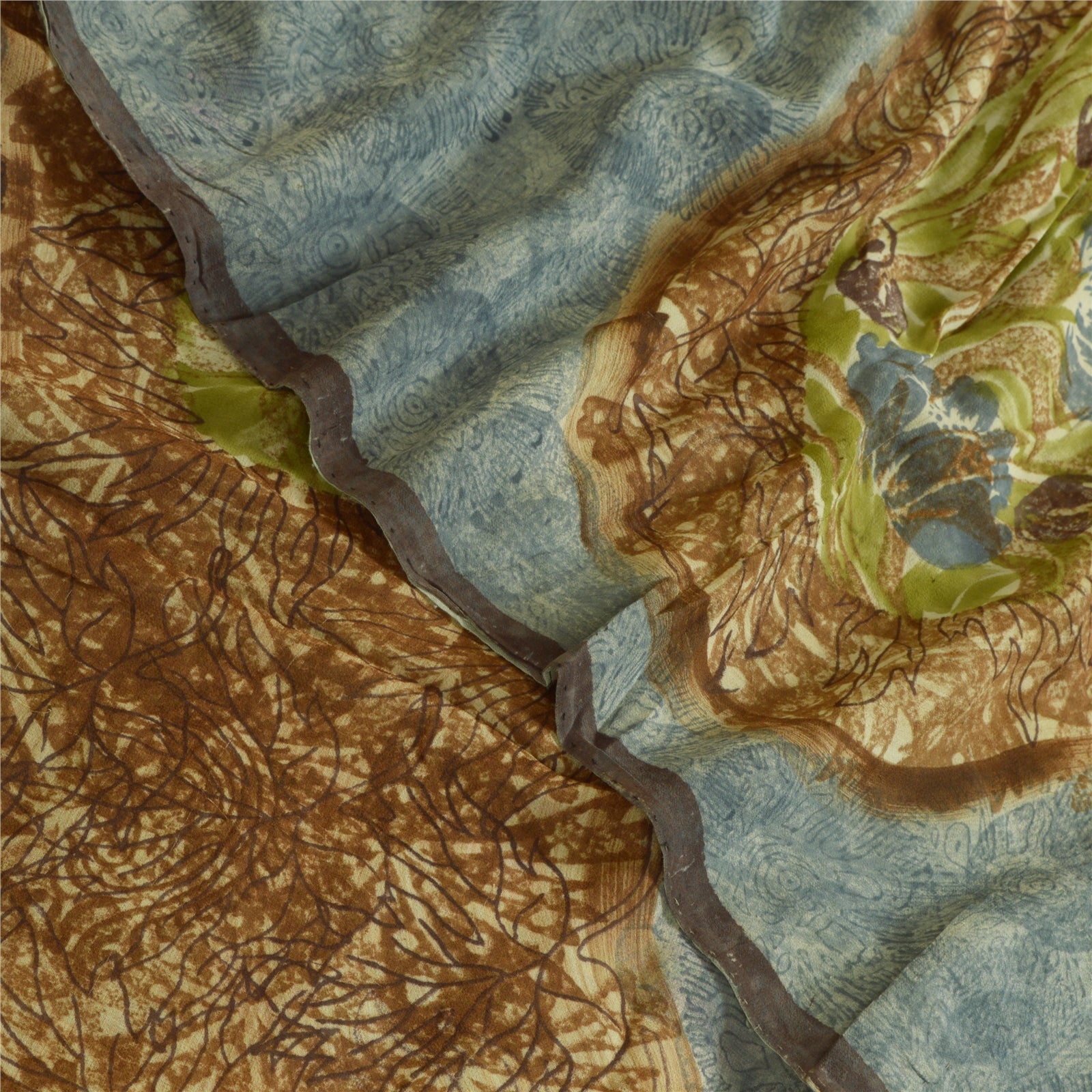 Sanskriti Vintage Sarees Brown/Blue Pure Georgette Silk Print Sari Craft Sustainable Fabric