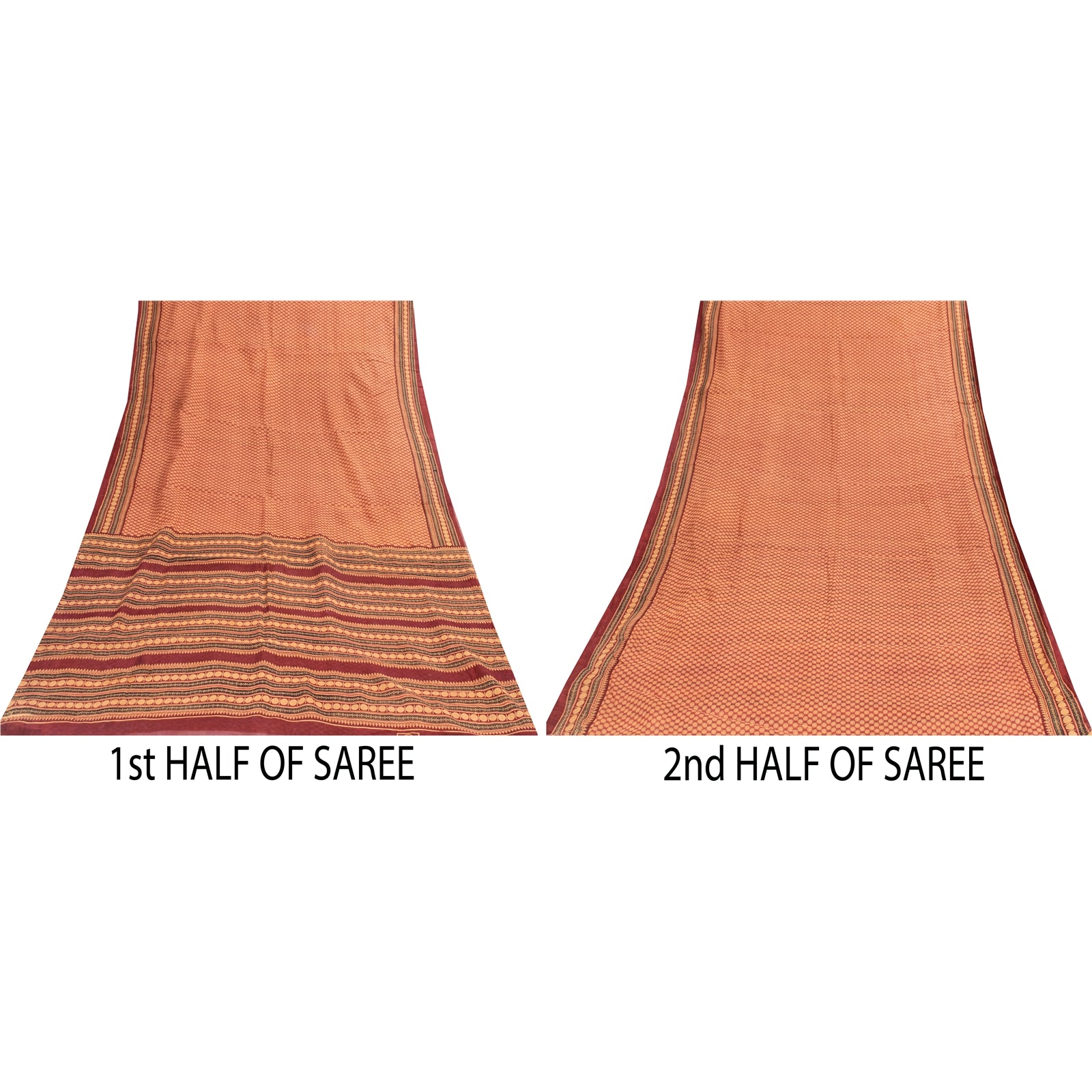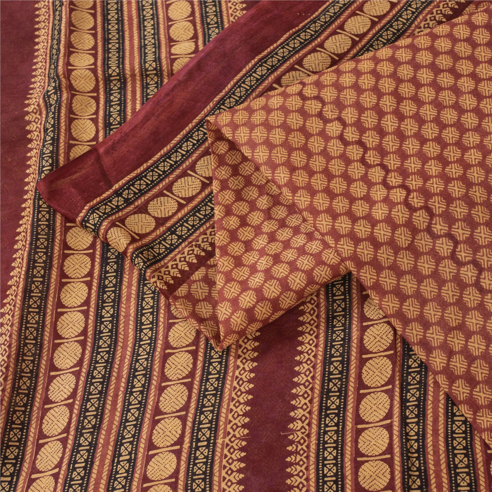 Sanskriti Vintage Sarees Brown Pure Cotton Geometric Printed Sari 5+yd Fabric