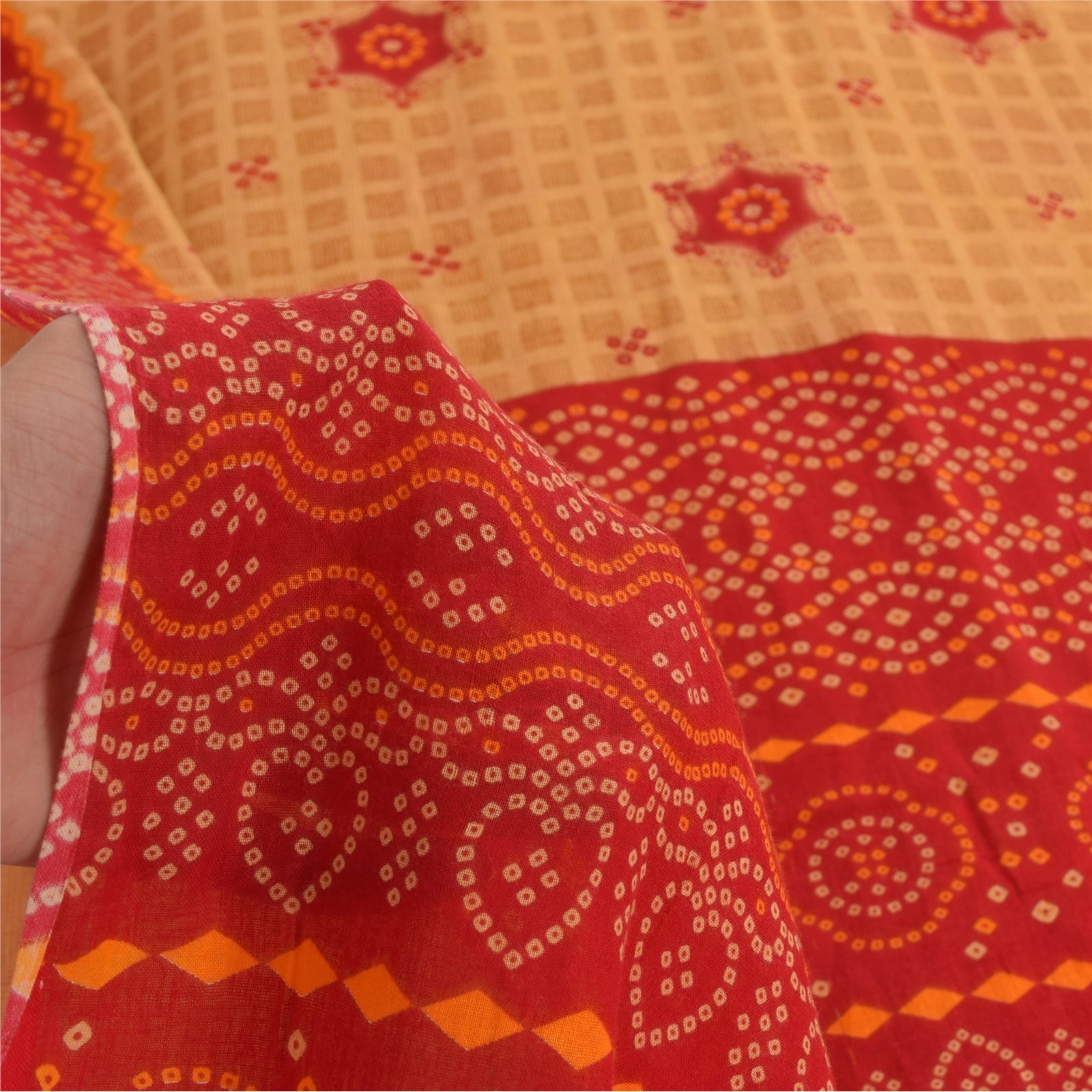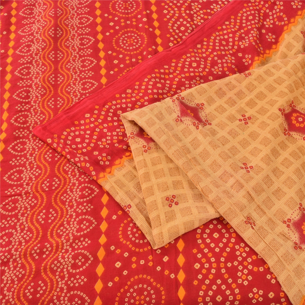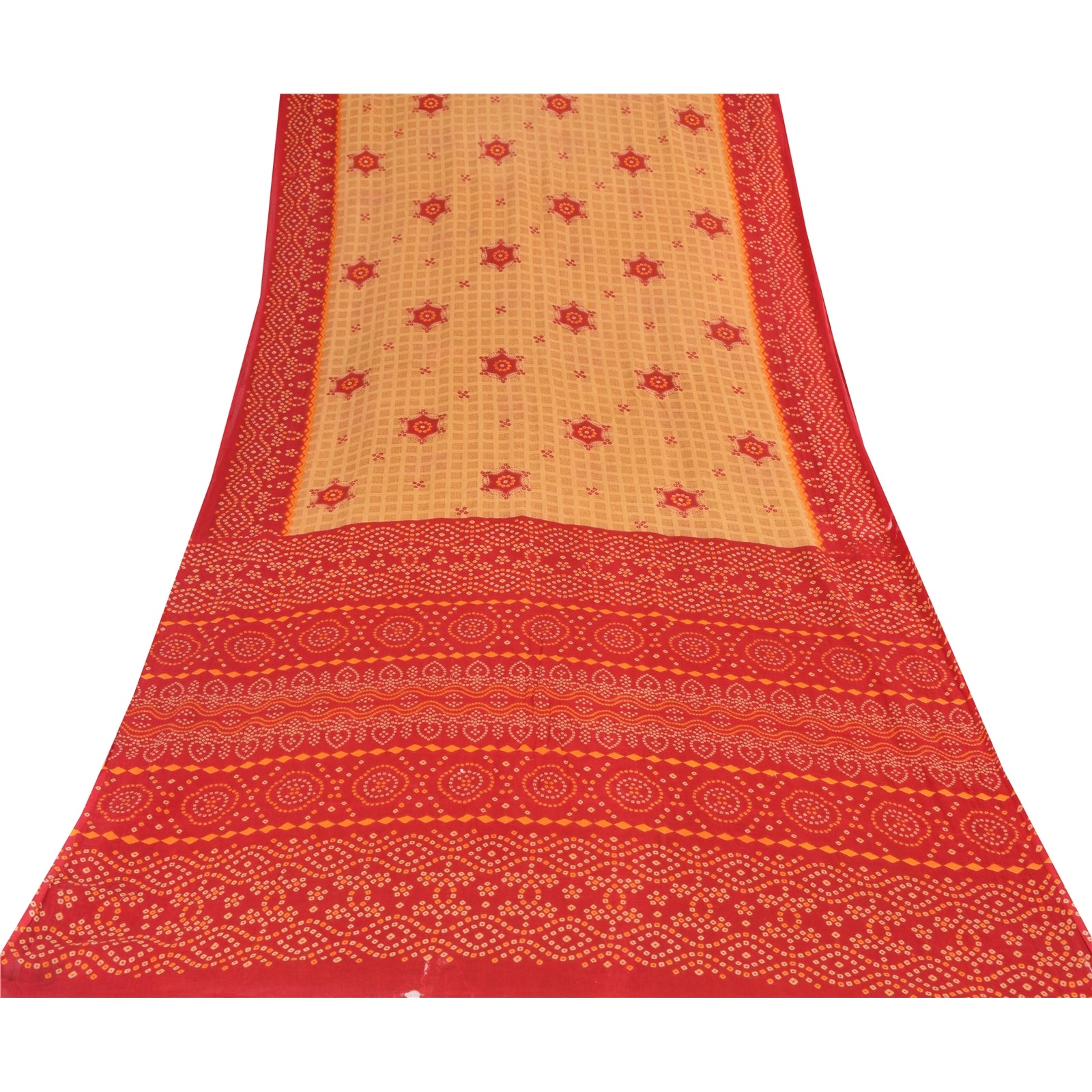 THE ITEM COLOR OR SHADE MAY BE DARKER OR LIGHTER THAN THE PICTURE. Attractive light brown & red colored pure cotton bandhani printed sari. Pallu & Border has printed floral design with geometric pattern. Geometric design in center part of saree.. This unique vintage saree can be used for various crafting ideas even if you don't want to use it as a sari. Design a dress, use it as a as window dressing, upholstery, sarongs, throw, dress making and table linen much more. Let your creative juices flow and use this decorated Sustainable Fabric in multiple fashion. Shipping Note: 'International buyers please note: Import duties, taxes, and charges are not included in the item price or postage cost. These charges are the buyer's responsibility. Please check with your country's customs office to determine what these additional costs will be prior to bidding or buying. Buyer will pay custom duty/tax. It is calculated and charged differently by every country. As a seller I do not have any control over it. VAT or sales tax is calculated by the platform at the time of checkout. Customs charge is payable at the time of delivery.'