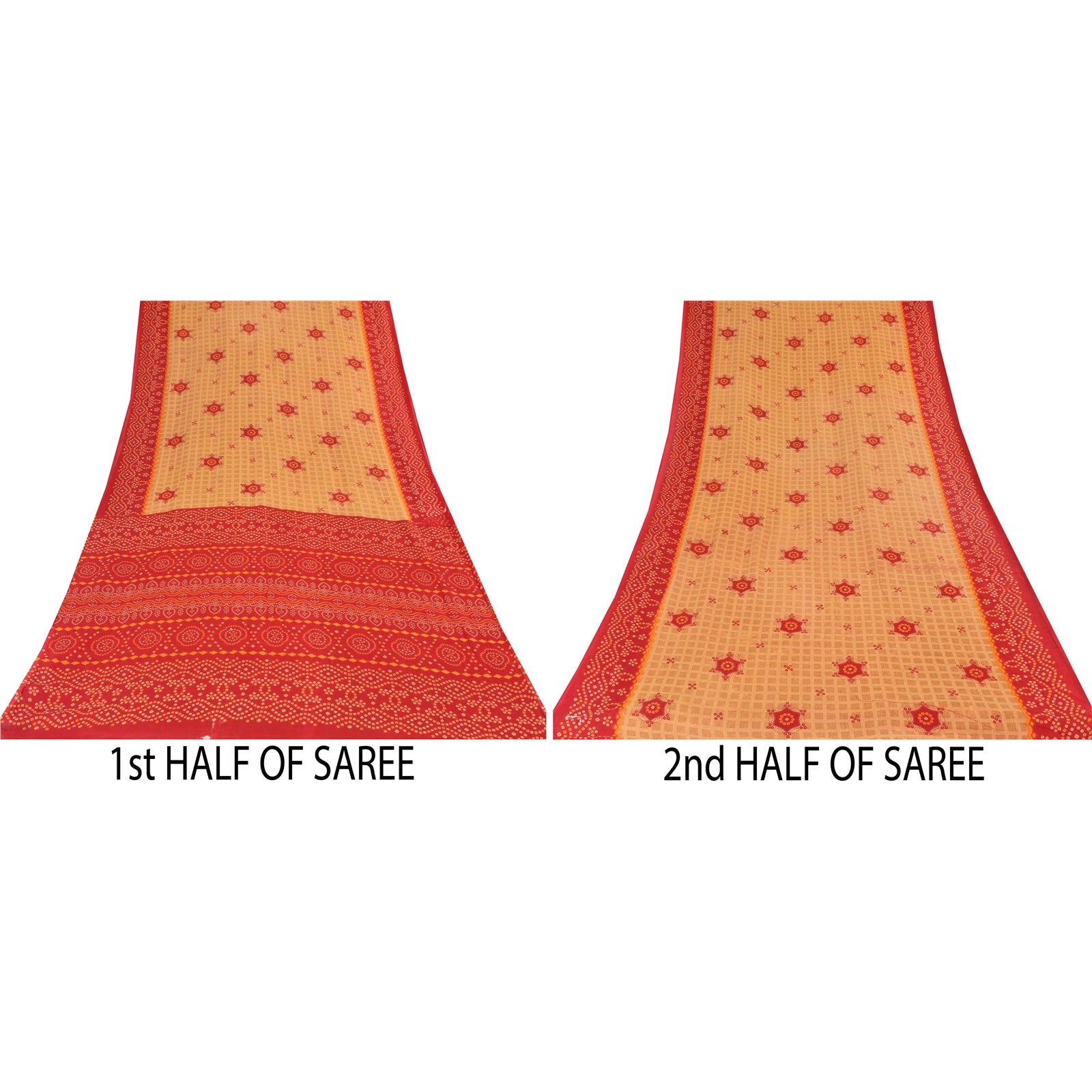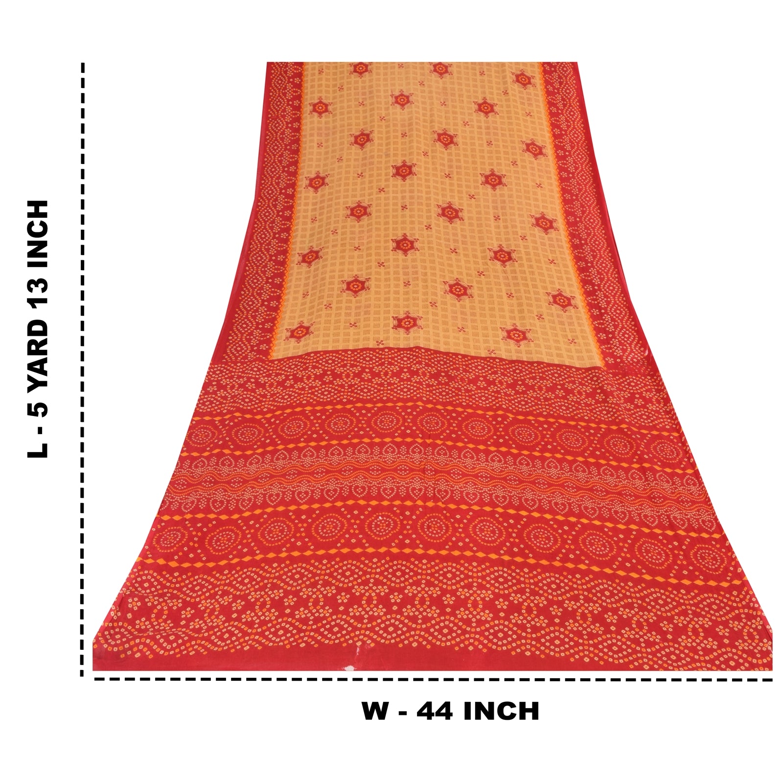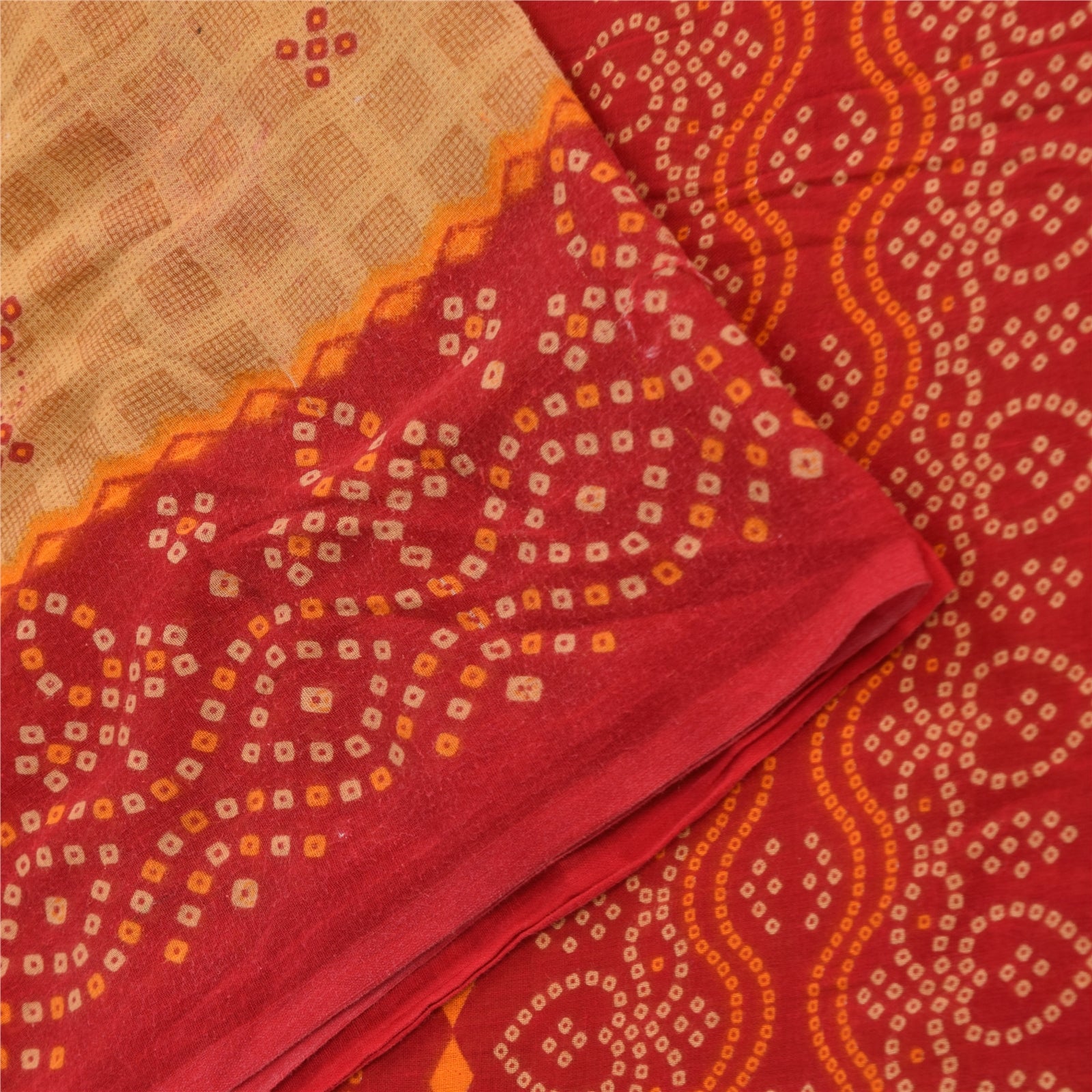 THE ITEM COLOR OR SHADE MAY BE DARKER OR LIGHTER THAN THE PICTURE. Attractive light brown & red colored pure cotton bandhani printed sari. Pallu & Border has printed floral design with geometric pattern. Geometric design in center part of saree.. This unique vintage saree can be used for various crafting ideas even if you don't want to use it as a sari. Design a dress, use it as a as window dressing, upholstery, sarongs, throw, dress making and table linen much more. Let your creative juices flow and use this decorated Sustainable Fabric in multiple fashion. Shipping Note: 'International buyers please note: Import duties, taxes, and charges are not included in the item price or postage cost. These charges are the buyer's responsibility. Please check with your country's customs office to determine what these additional costs will be prior to bidding or buying. Buyer will pay custom duty/tax. It is calculated and charged differently by every country. As a seller I do not have any control over it. VAT or sales tax is calculated by the platform at the time of checkout. Customs charge is payable at the time of delivery.'