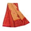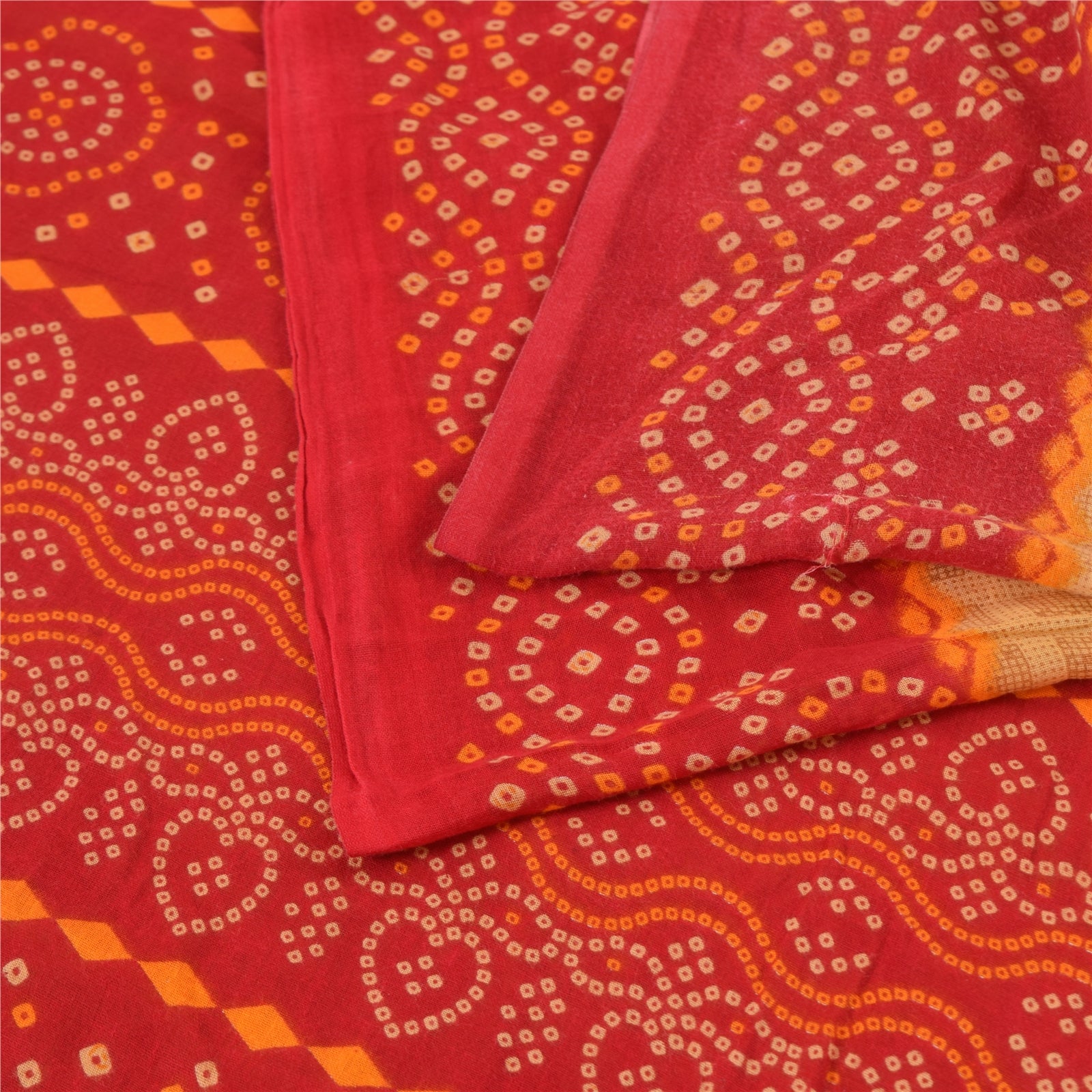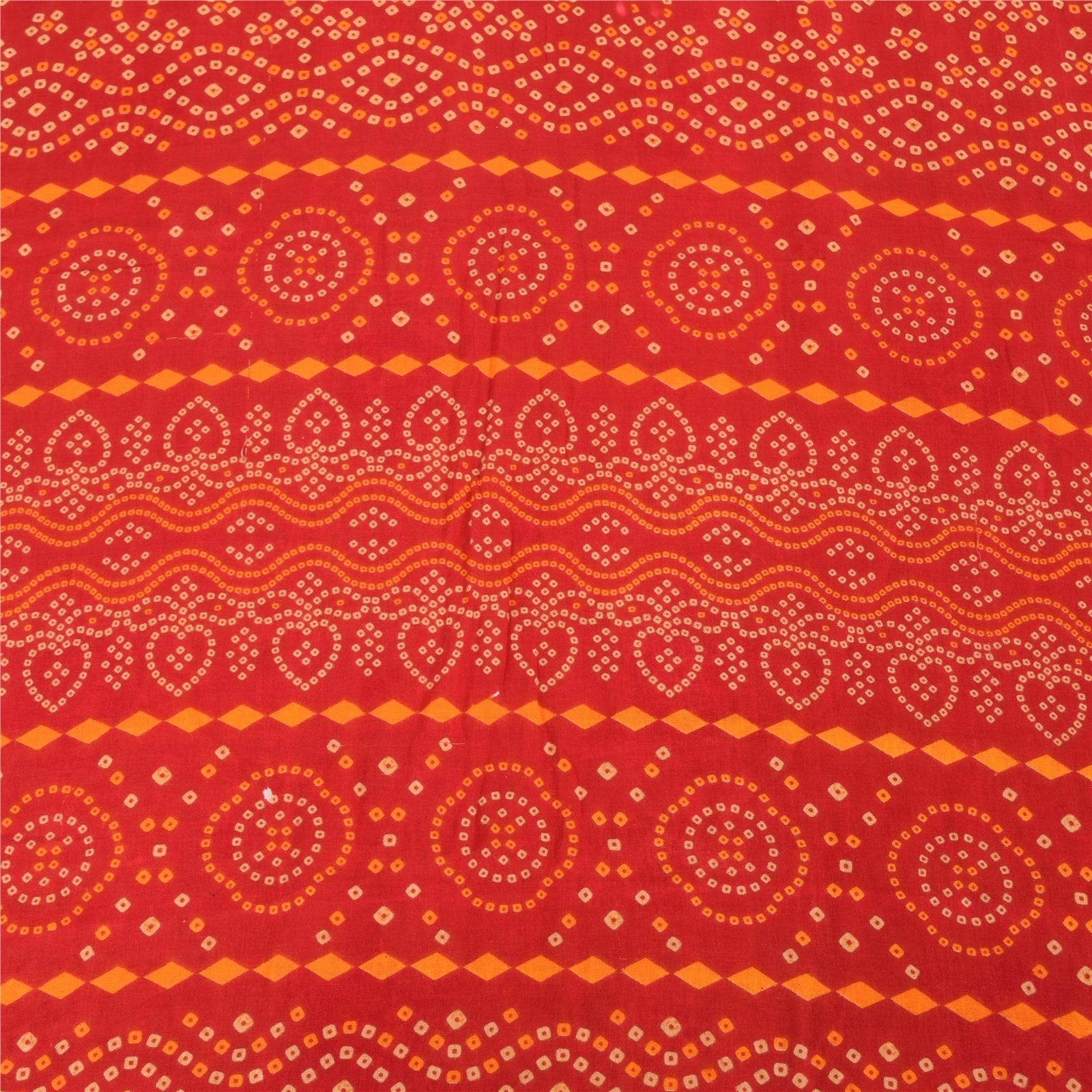 Sanskriti Vintage Sarees Brown/Red Bandhani Pure Cotton Printed Sari 5yd Sustainable Fabric