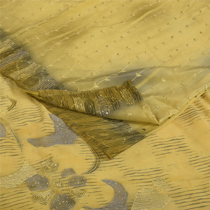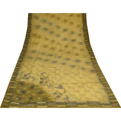 Sanskriti Vintage Sarees Cream Embroidered Pure Crepe Printed Sari 5+yd Fabric