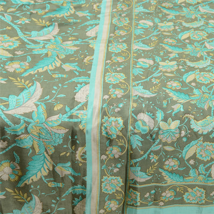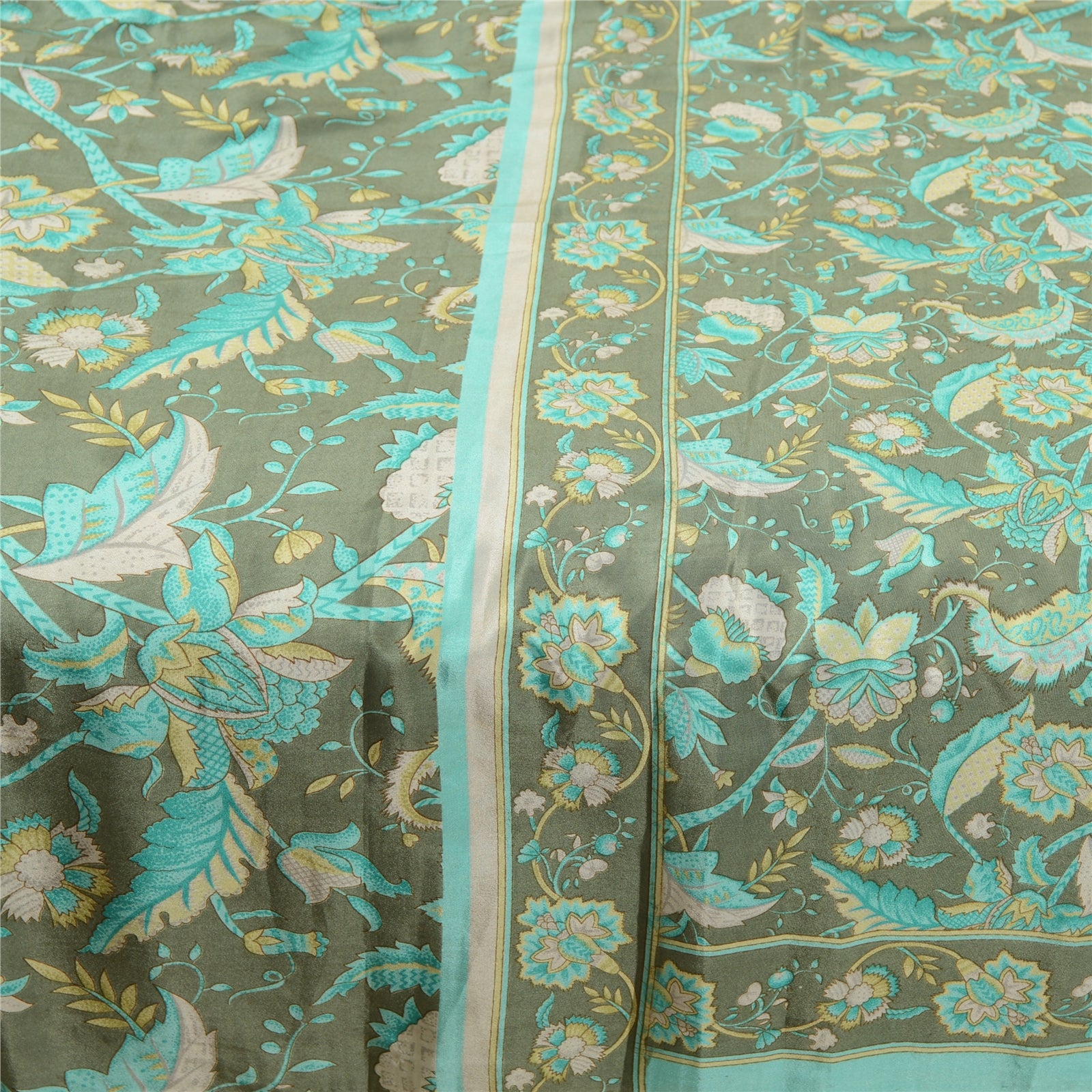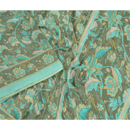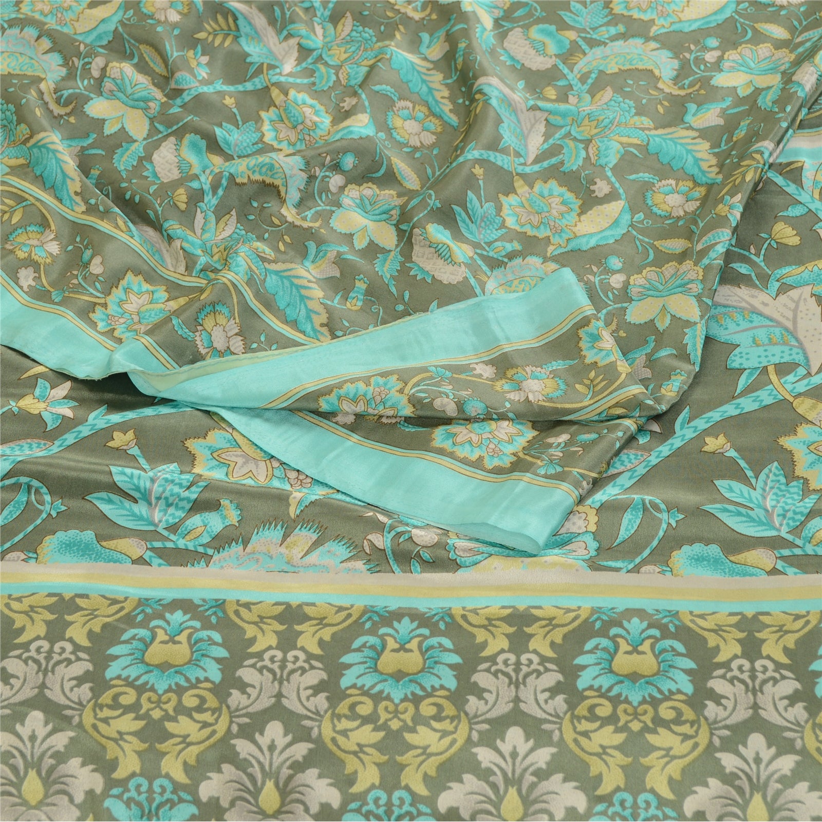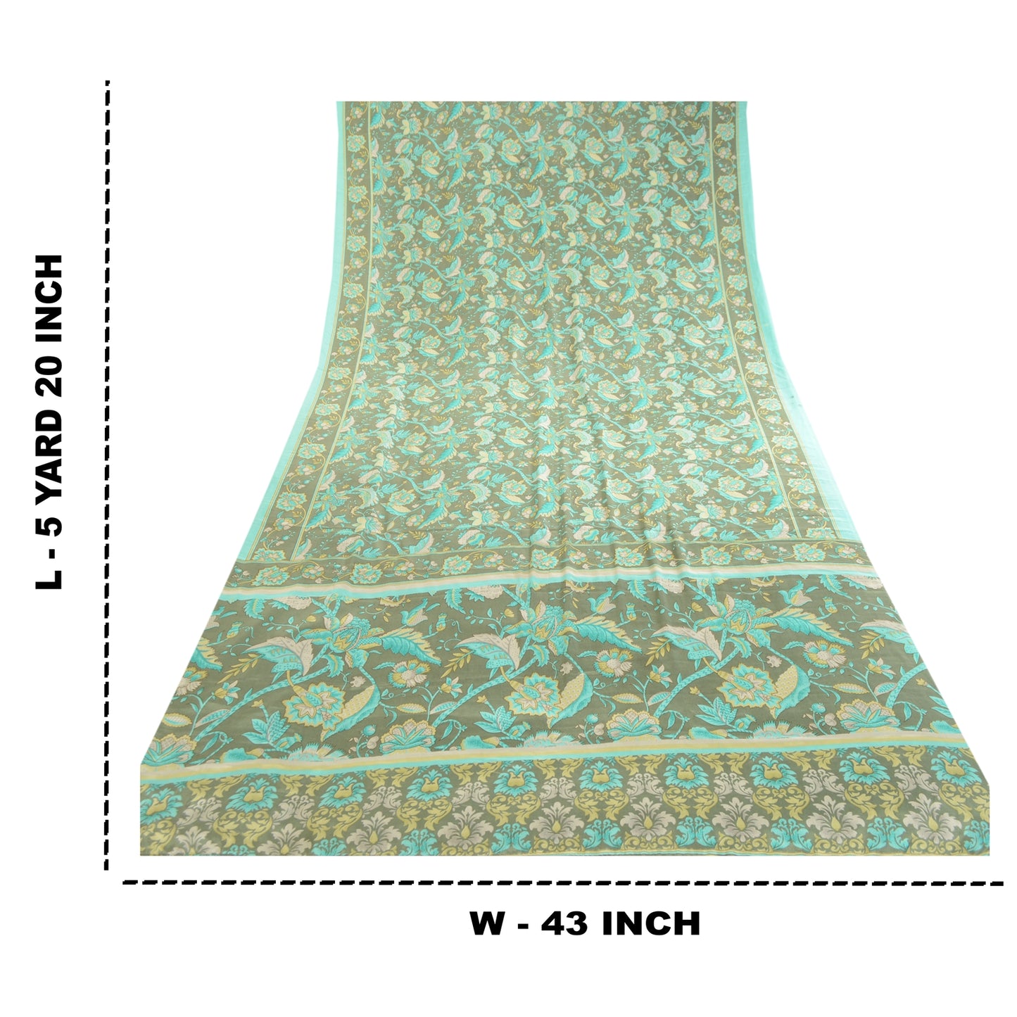Sanskriti Vintage Sarees From India Green Moss Crepe Sari Printed Craft Sustainable Fabric