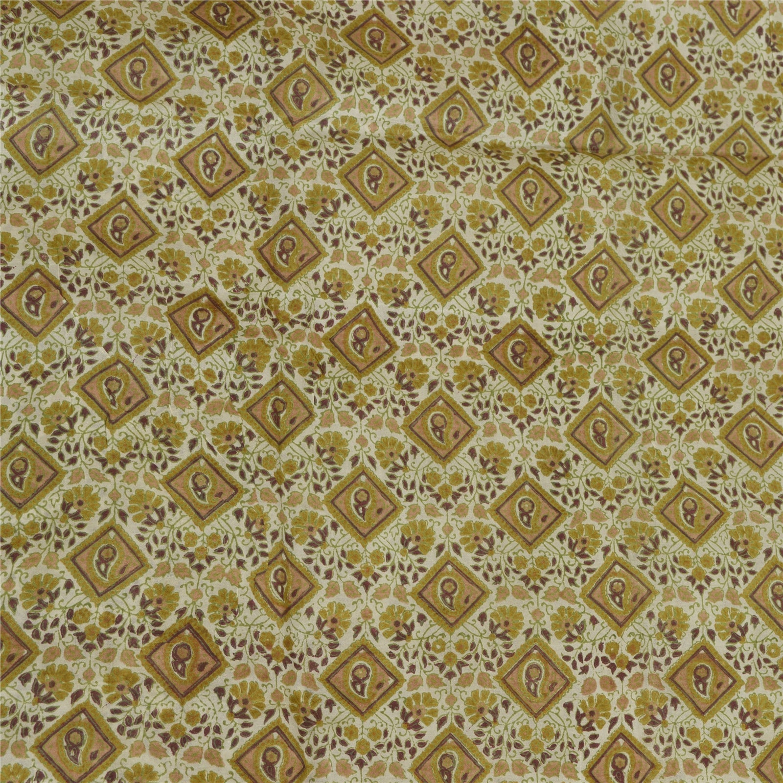 Sanskriti Vintage Sarees From india Green Printed Pure Silk Sari Craft Sustainable Fabric