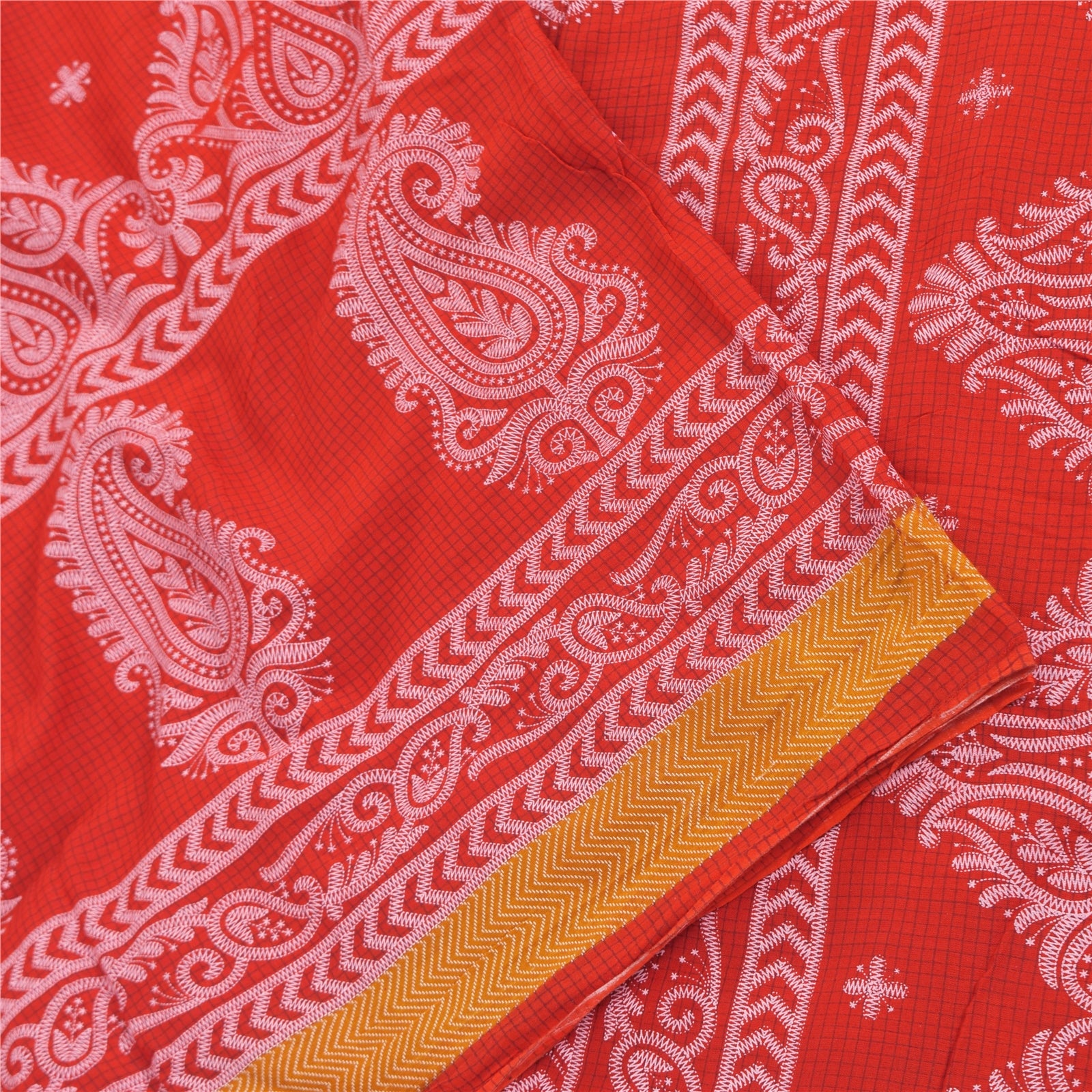 Sanskriti Vintage Sarees From India Red Pure Cotton Print Sari 5yd Craft Sustainable Fabric