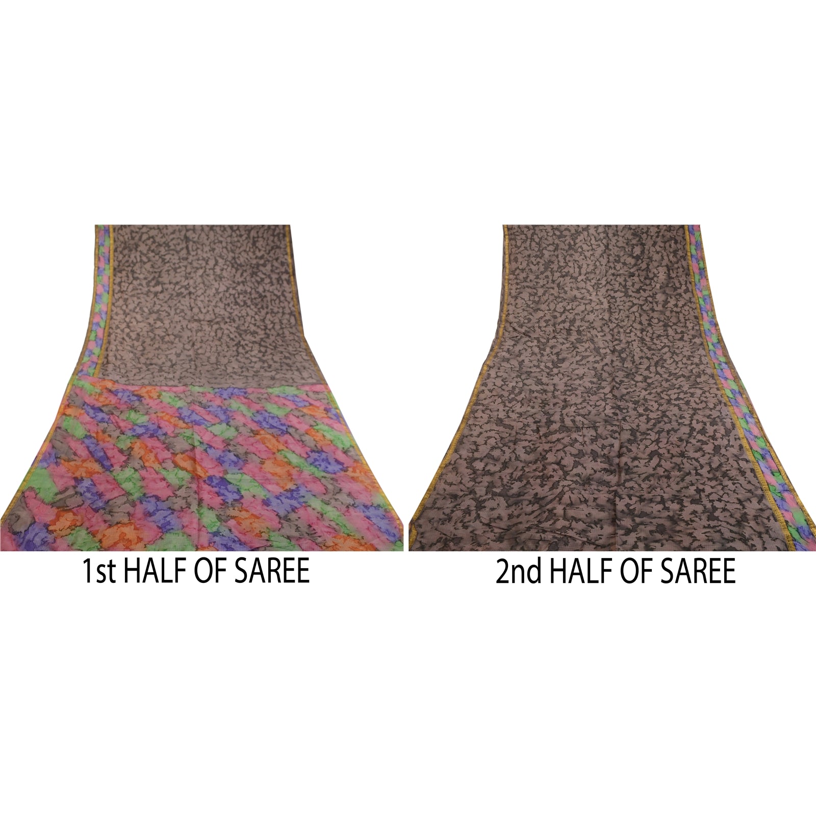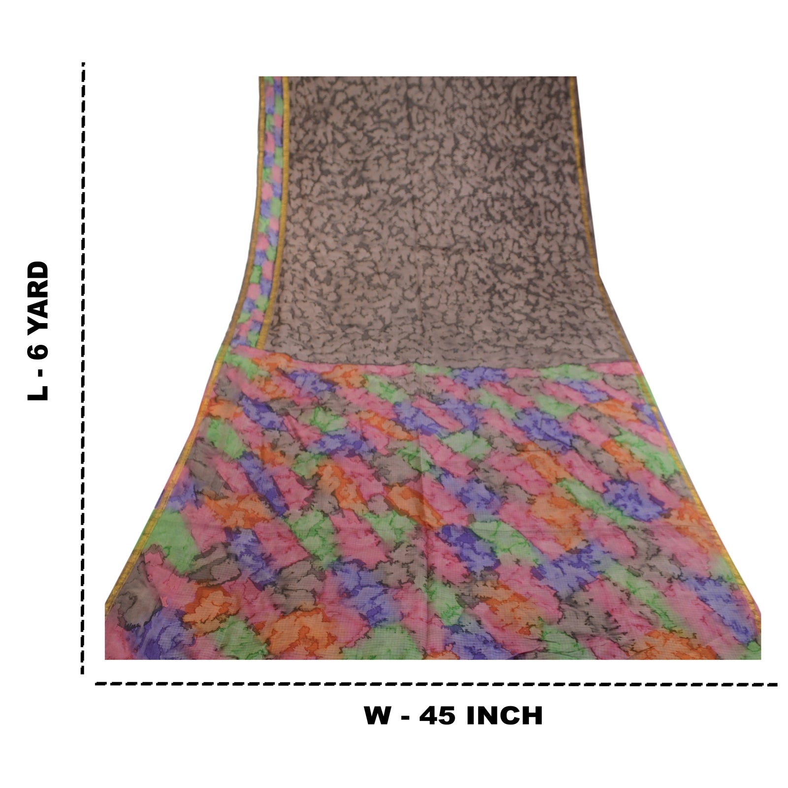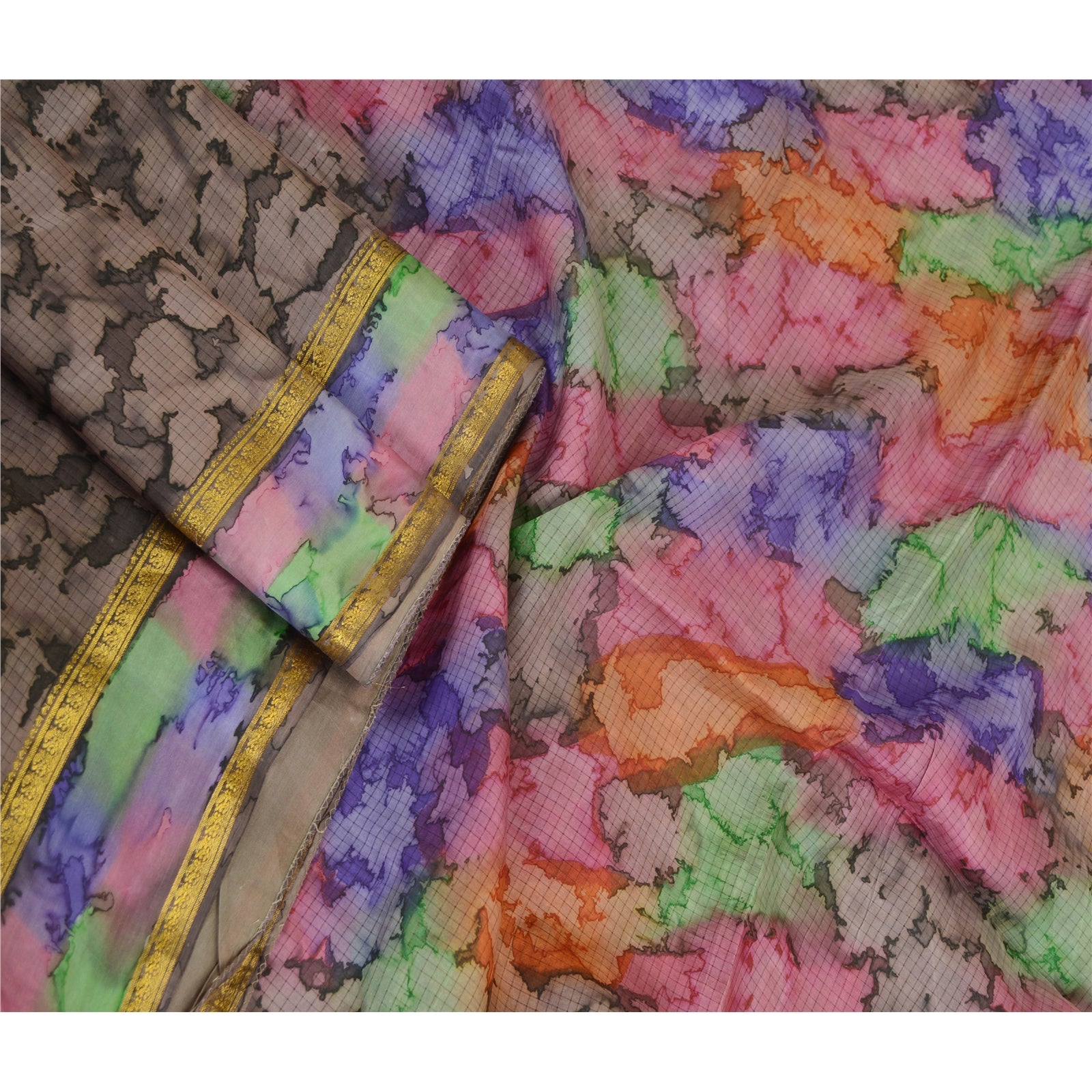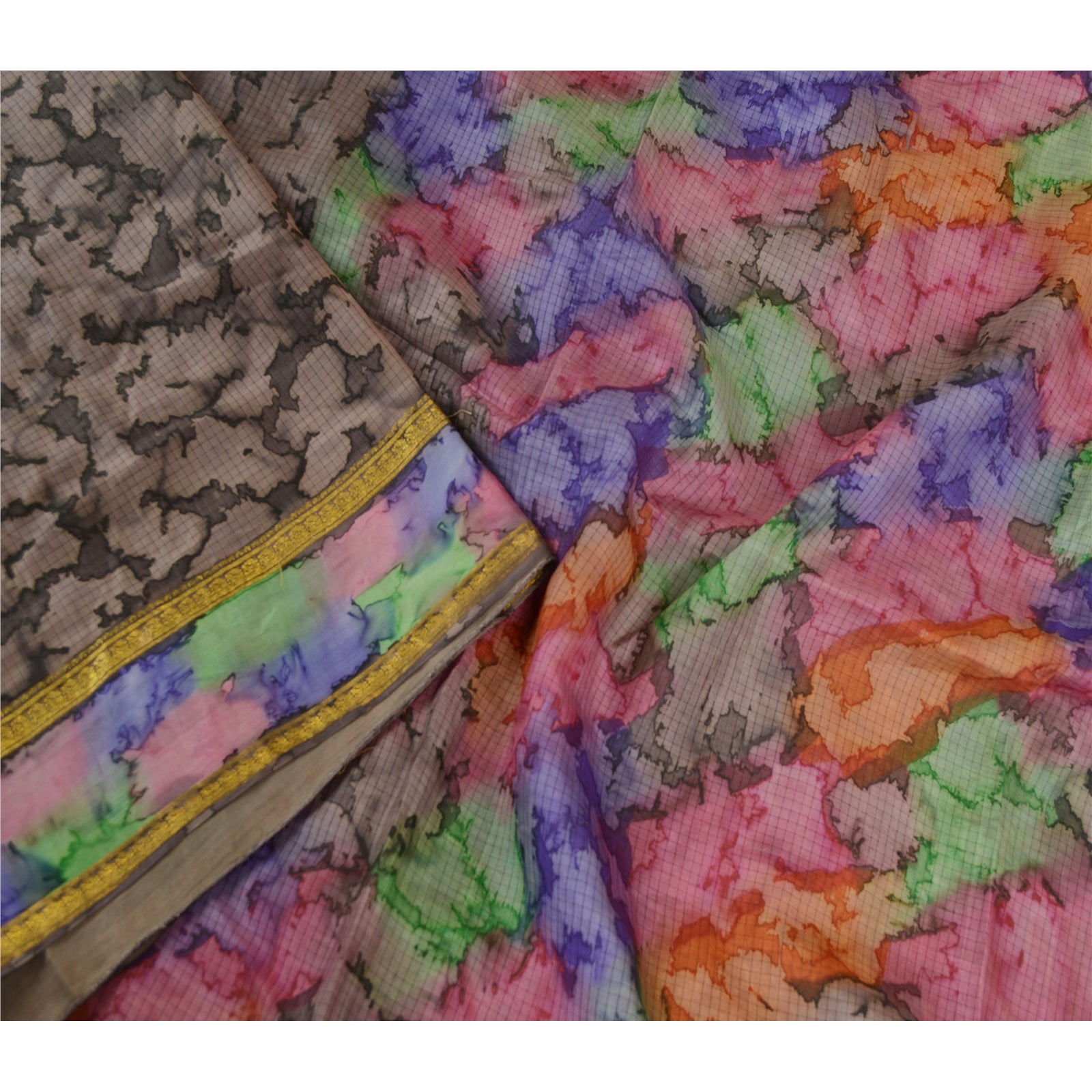THE ITEM COLOR OR SHADE MAY BE DARKER OR LIGHTER THAN THE PICTURE.' Beautiful gray colored pure silk printed saree. Pallu & border has printed abstract design & golden zari woven work. Similar design in center part of saree. What is special about this saree? Fabulous design is really enhancing the beauty of the saree.This unique vintage saree can be used for various crafting ideas even if you don't want to use it as a sari. Design a dress, use it as window,dressing, upholstery, sarongs, throw, dress making and table linen much more. Let your creative juices flow and use this decorated Sustainable Fabric in multiple fashion. International buyers please note: Import duties, taxes, and charges are not included in the item price or postage cost. These charges are the buyer's responsibility. Please check with your country's customs office to determine what these additional costs will be prior to bidding or buying. Buyer will pay custom duty/tax. It is calculated and charged differently by every country. As a seller I do not have any control over it. VAT or sales tax is calculated by the platform at the time of checkout. Customs charge is payable at the time of delivery.'