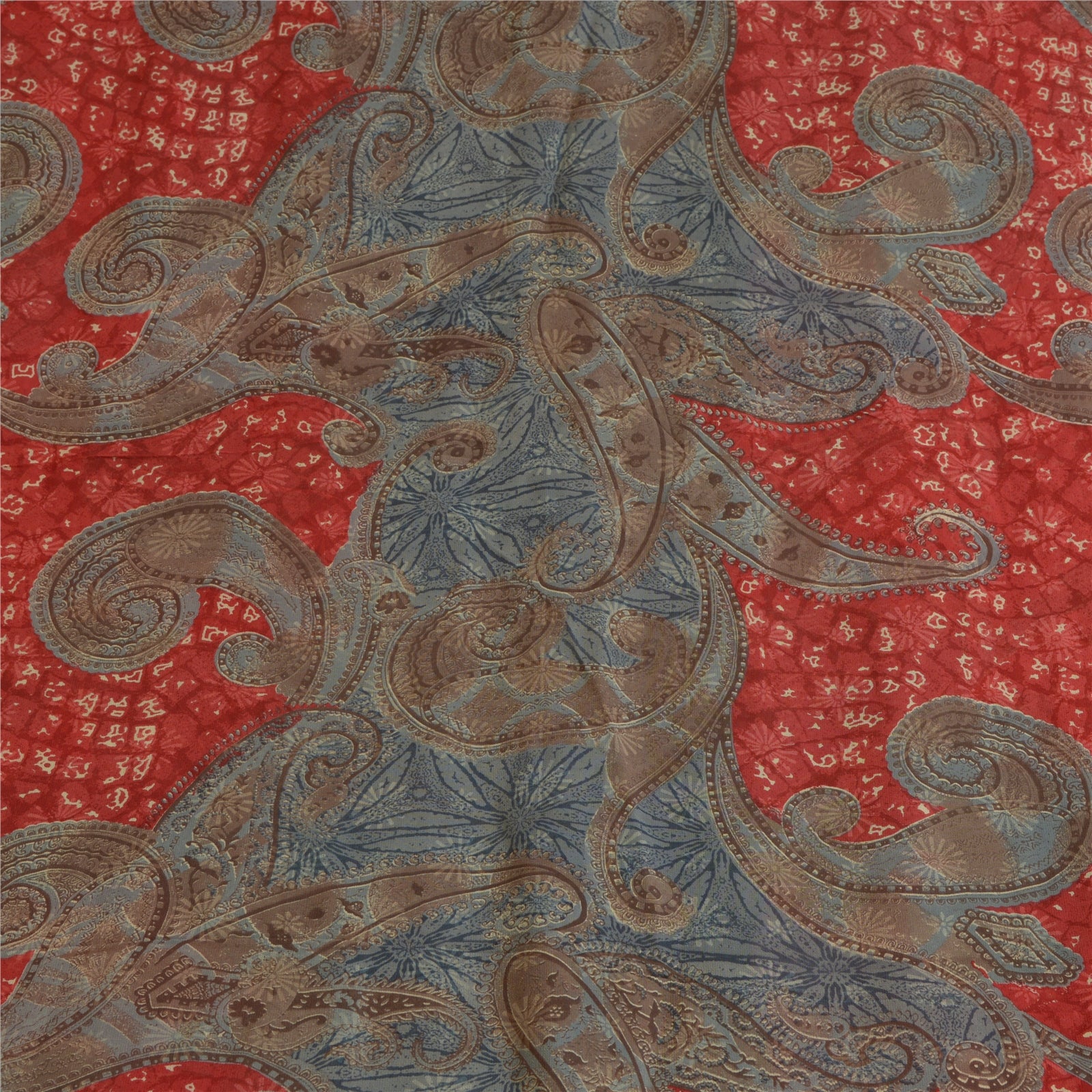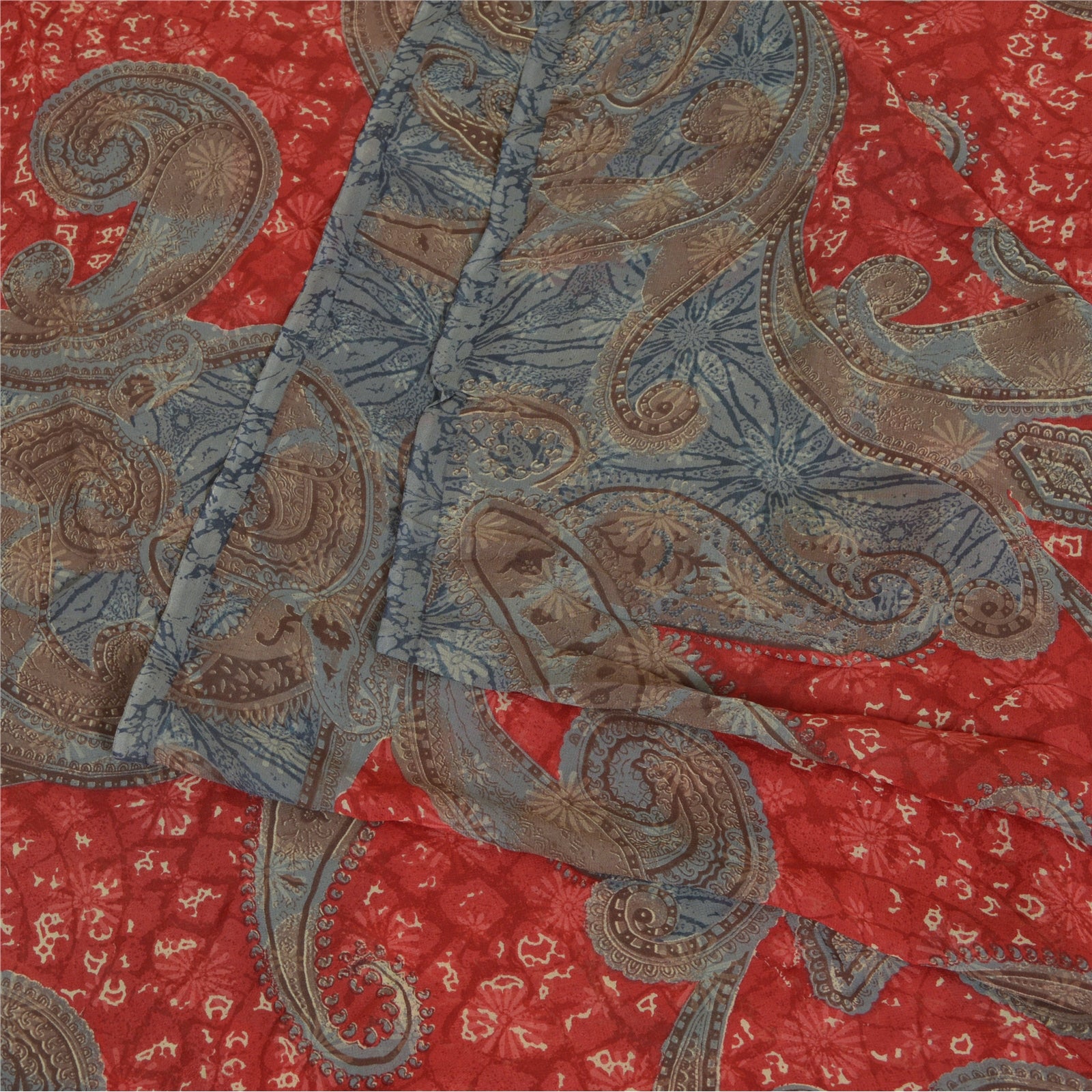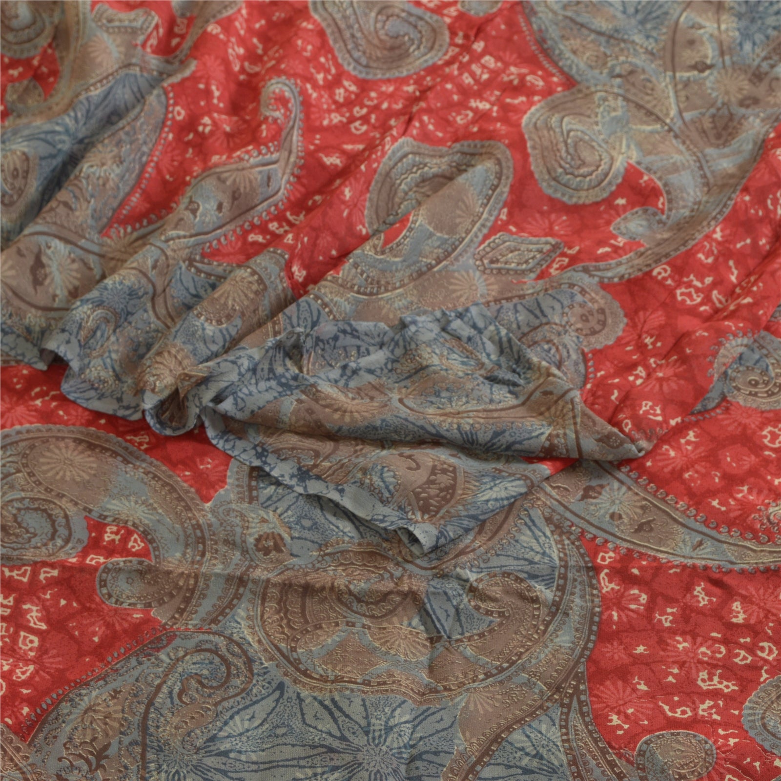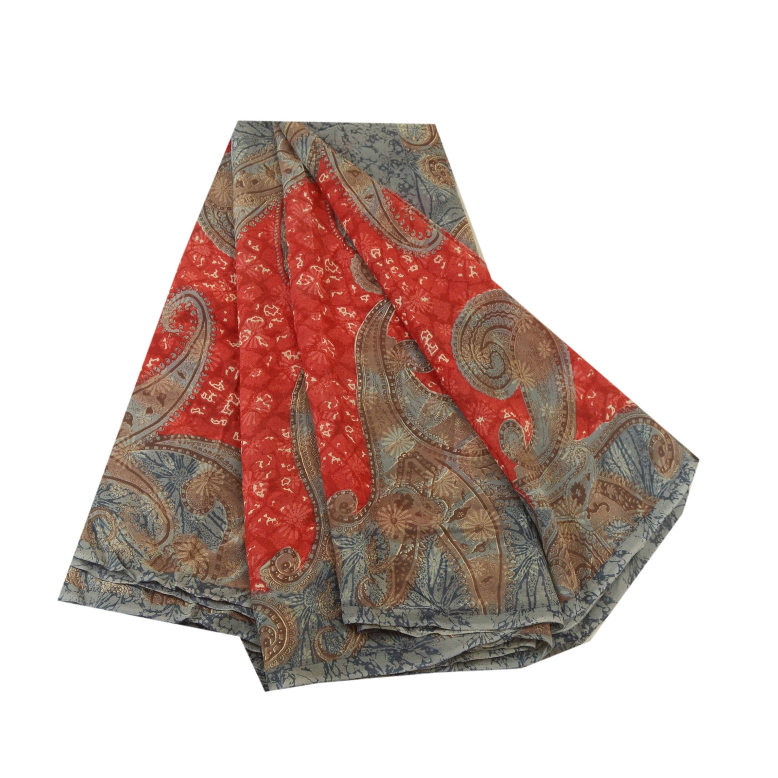 Sanskriti Vintage Sarees Gray/Red Pure Georgette Silk Printed Sari Craft Sustainable Fabric