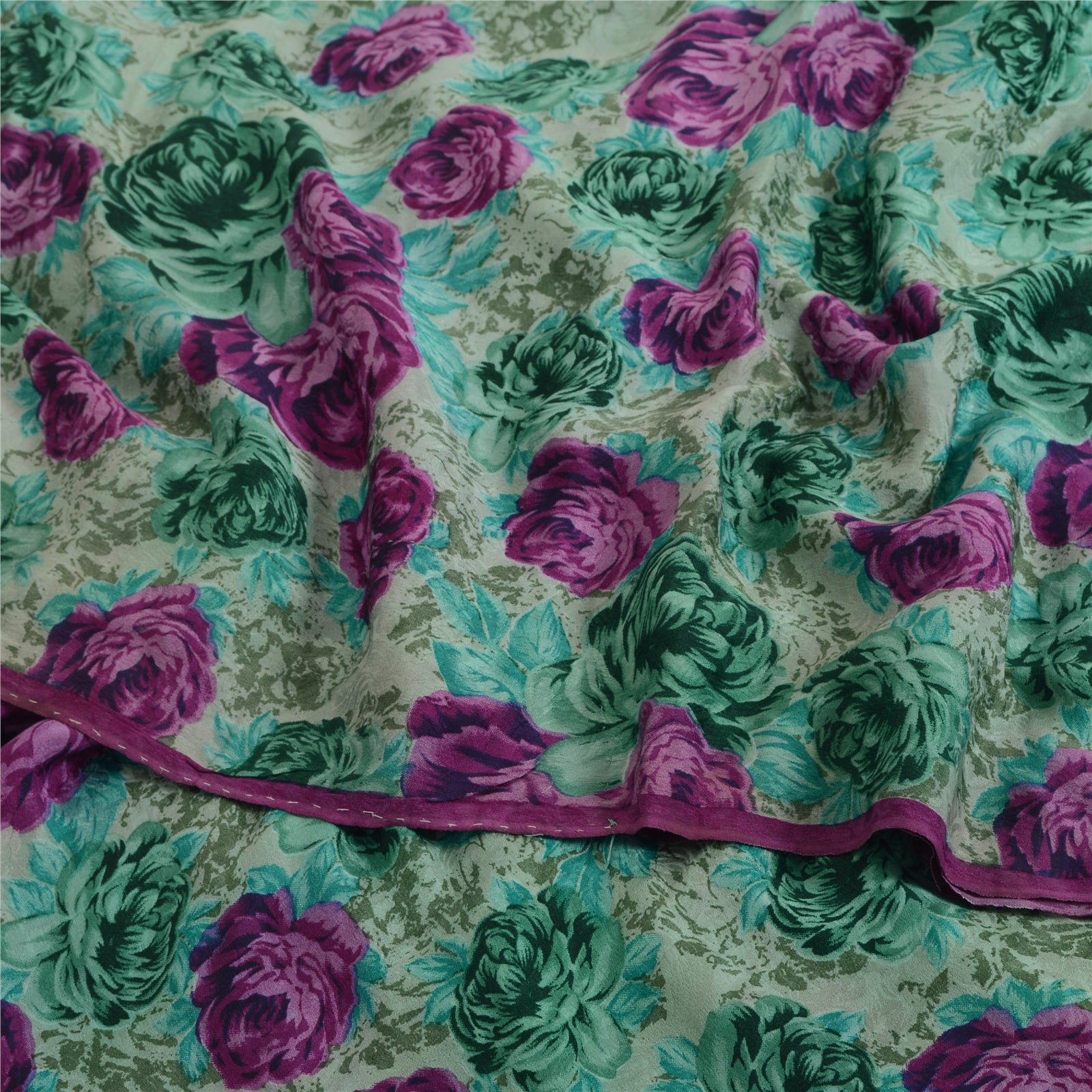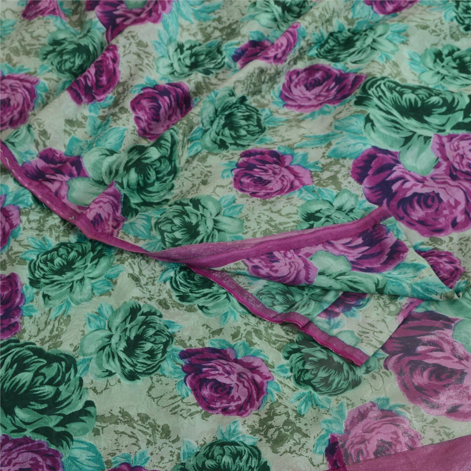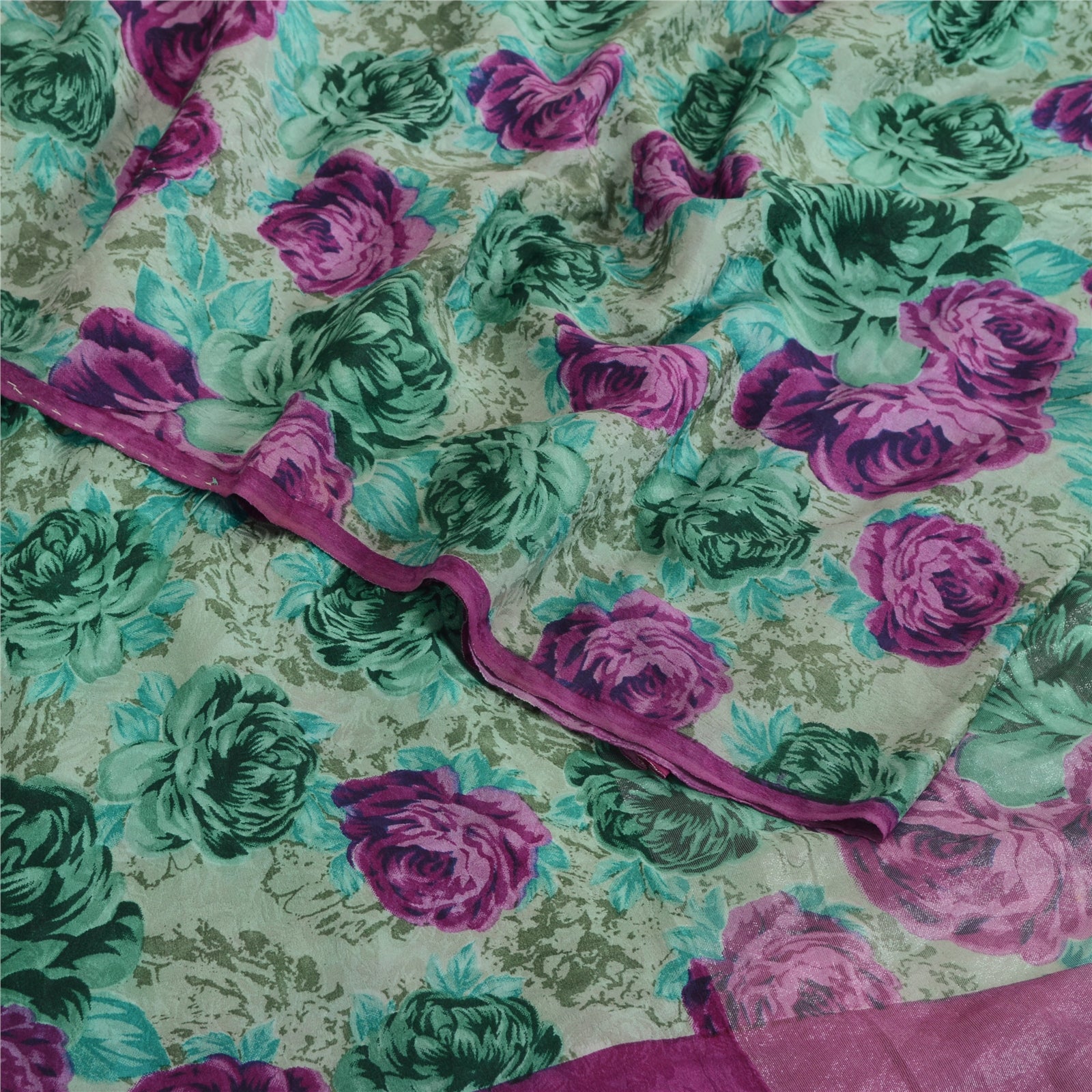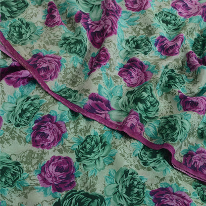 Sanskriti Vintage Sarees Green Blend Crepe Digital Printed Sari 6yd Craft Sustainable Fabric