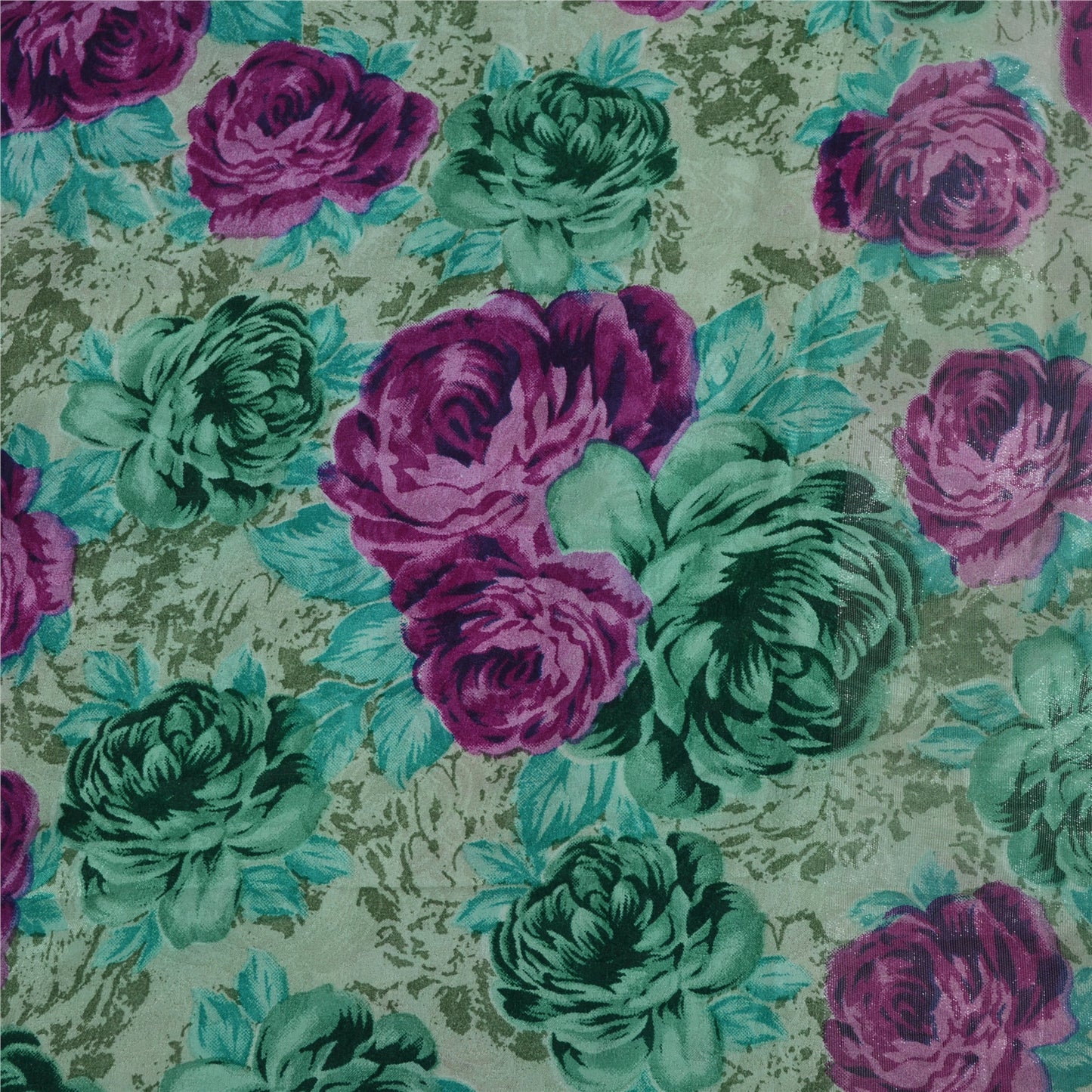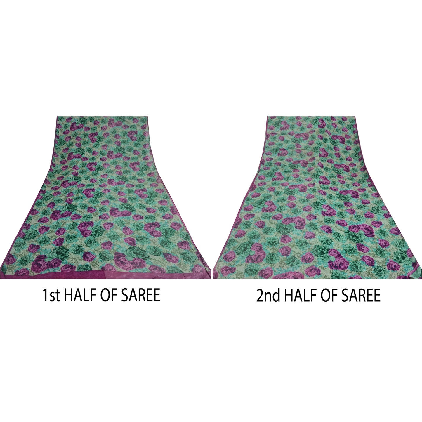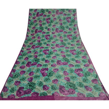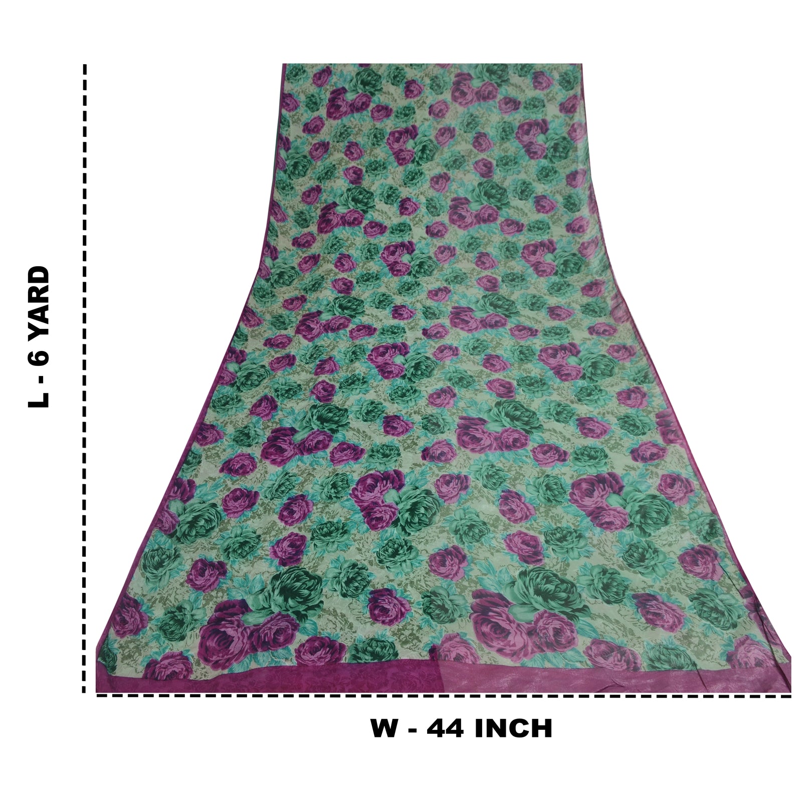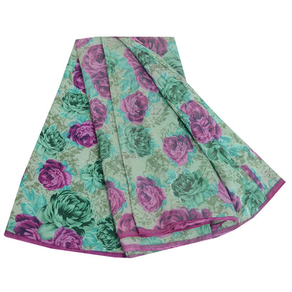 Sanskriti Vintage Sarees Green Blend Crepe Digital Printed Sari 6yd Craft Sustainable Fabric