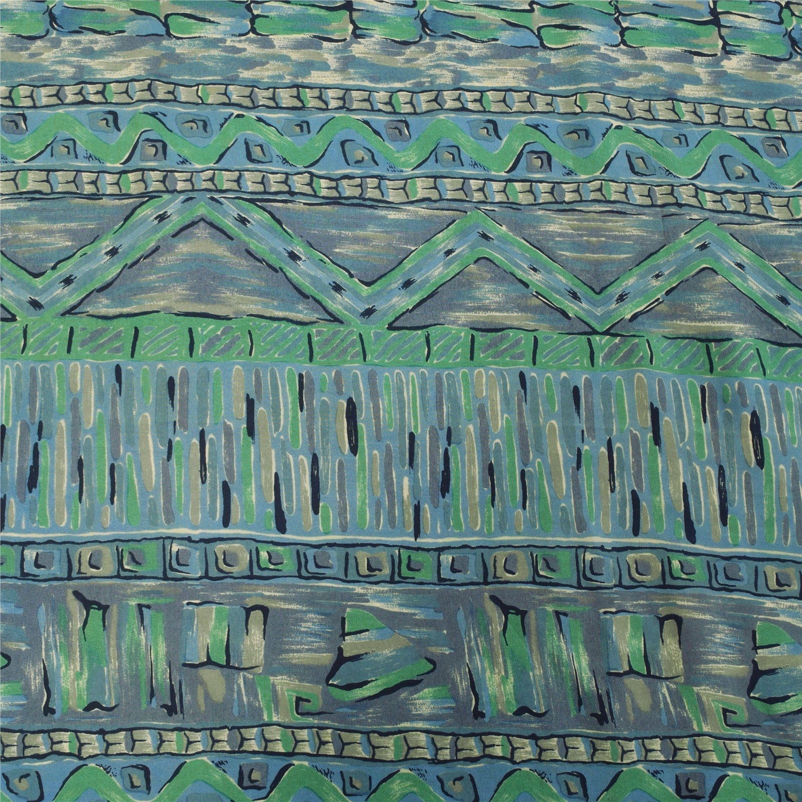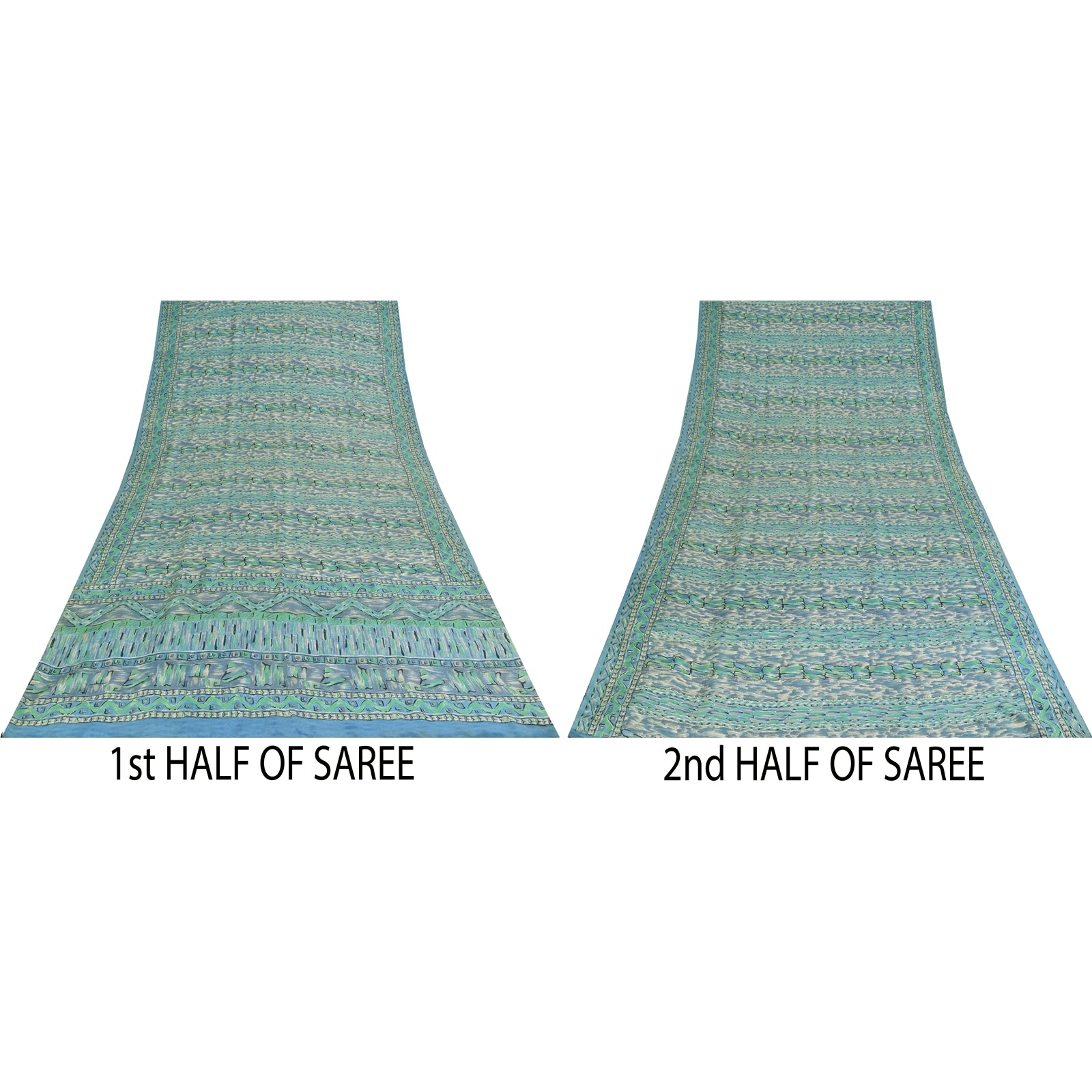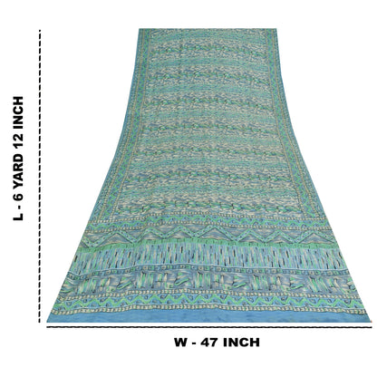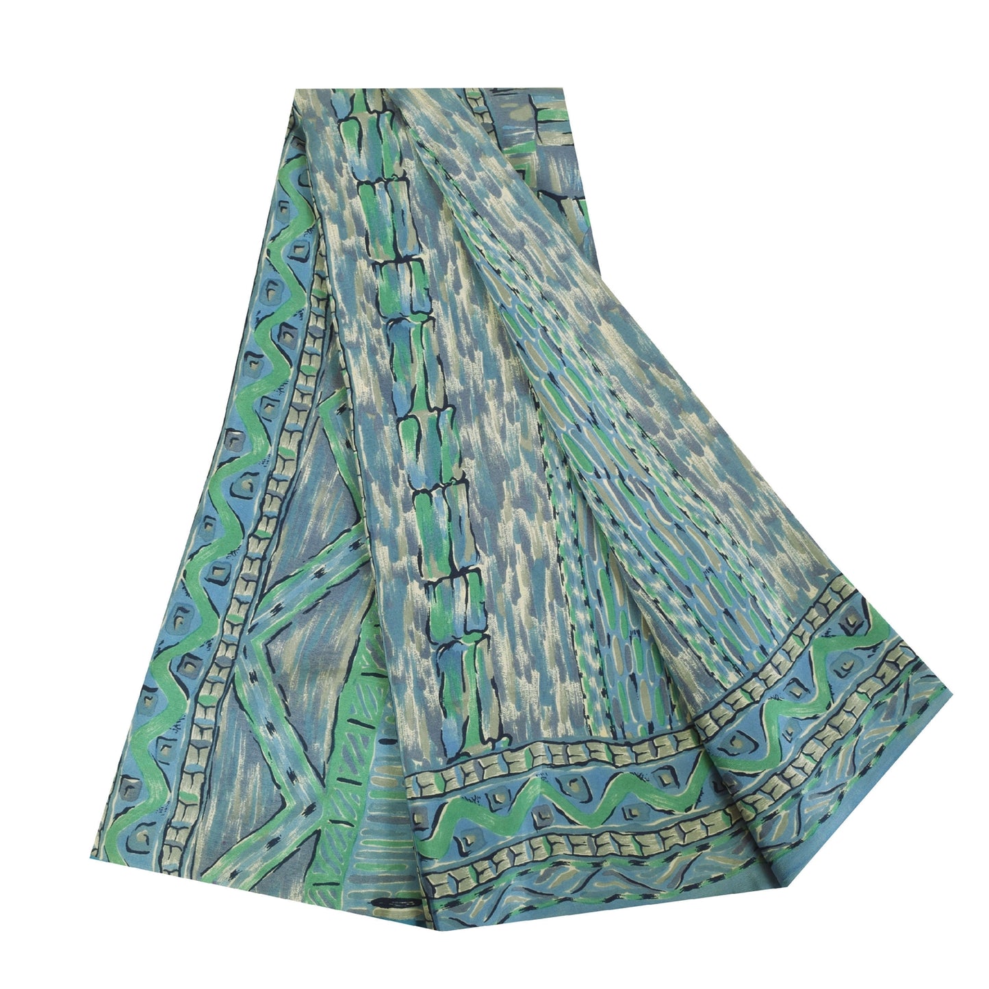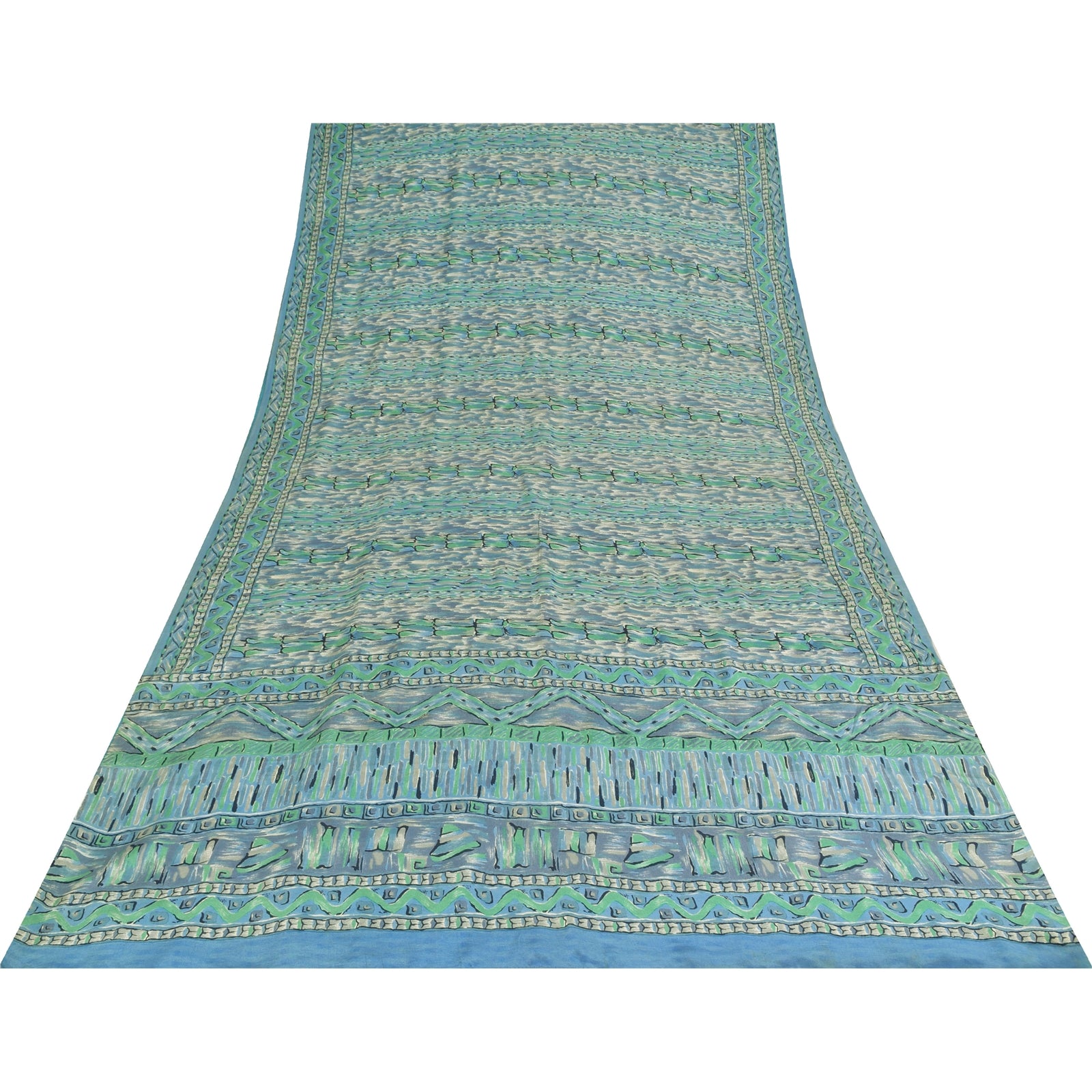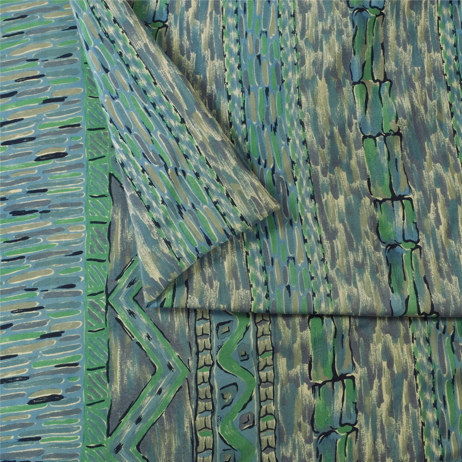 Sanskriti Vintage Sarees Green & Blue Pure Crepe Printed Sari 6+yd Craft Fabric