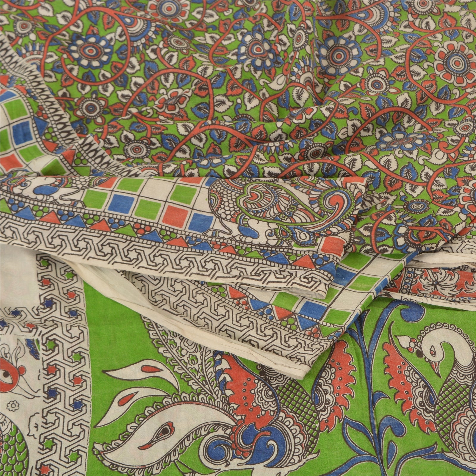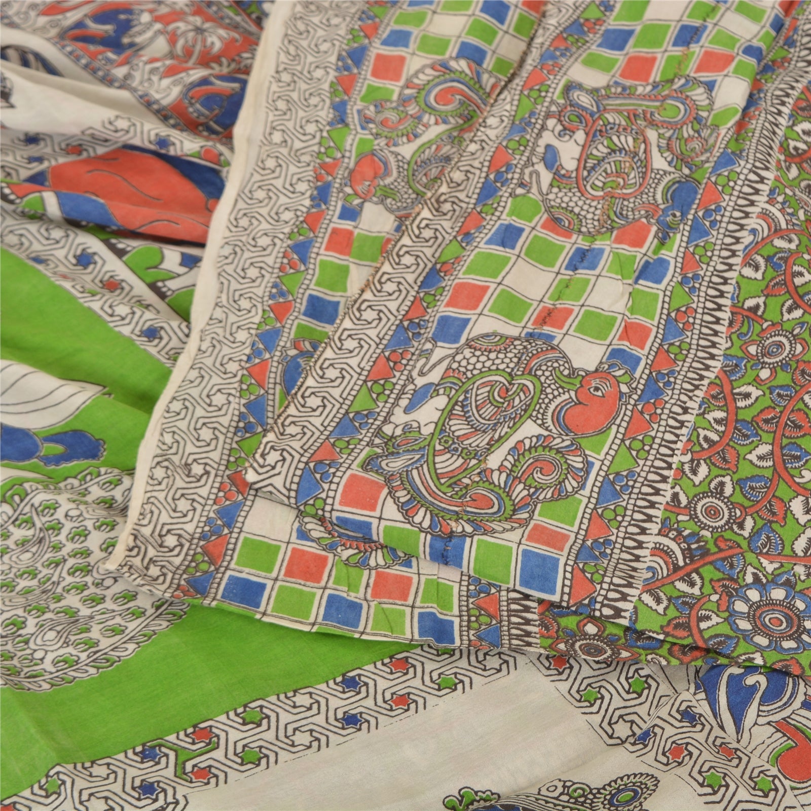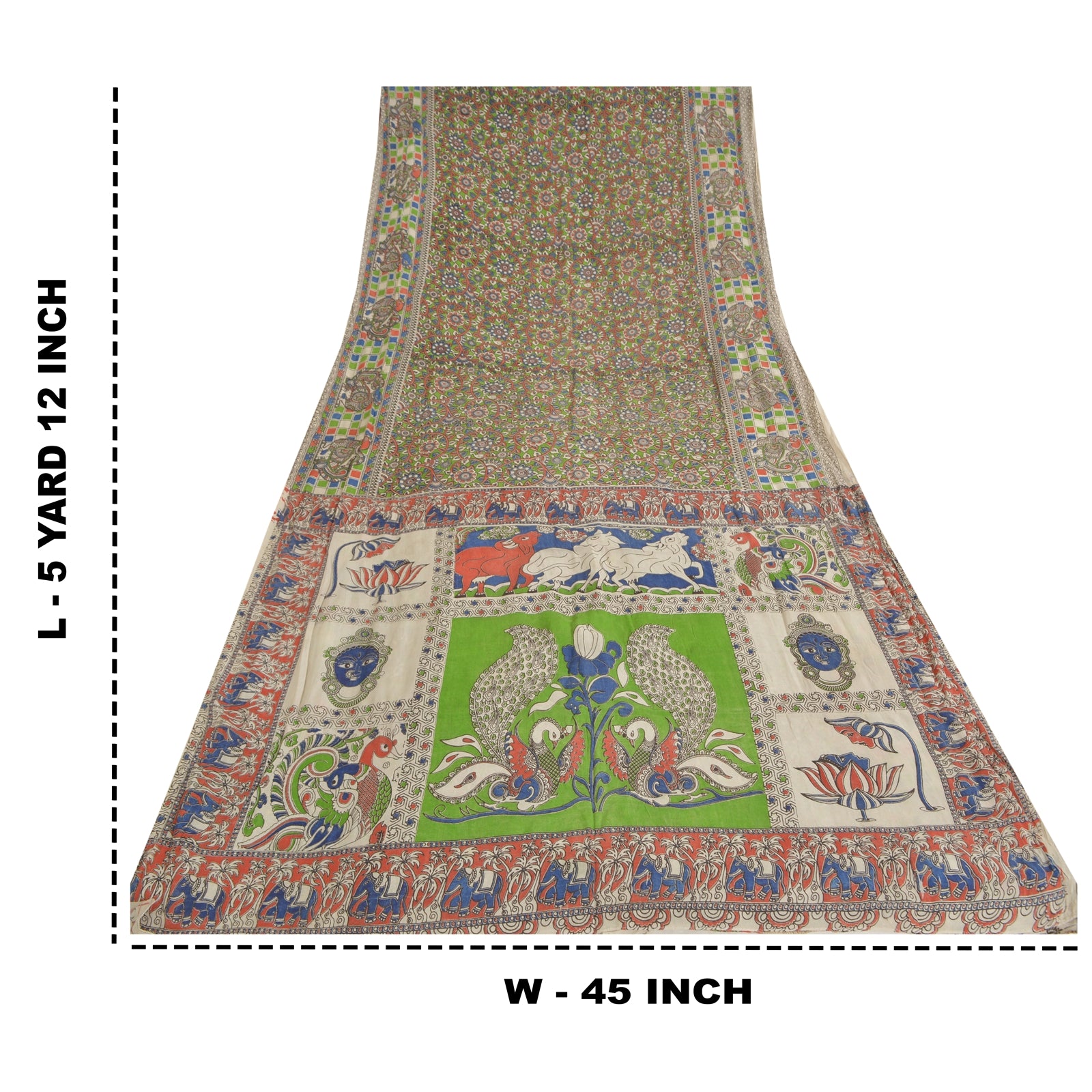 Sanskriti Vintage Sarees Green Handmade Kalamkari Pure Cotton Sari Craft Sustainable Fabric