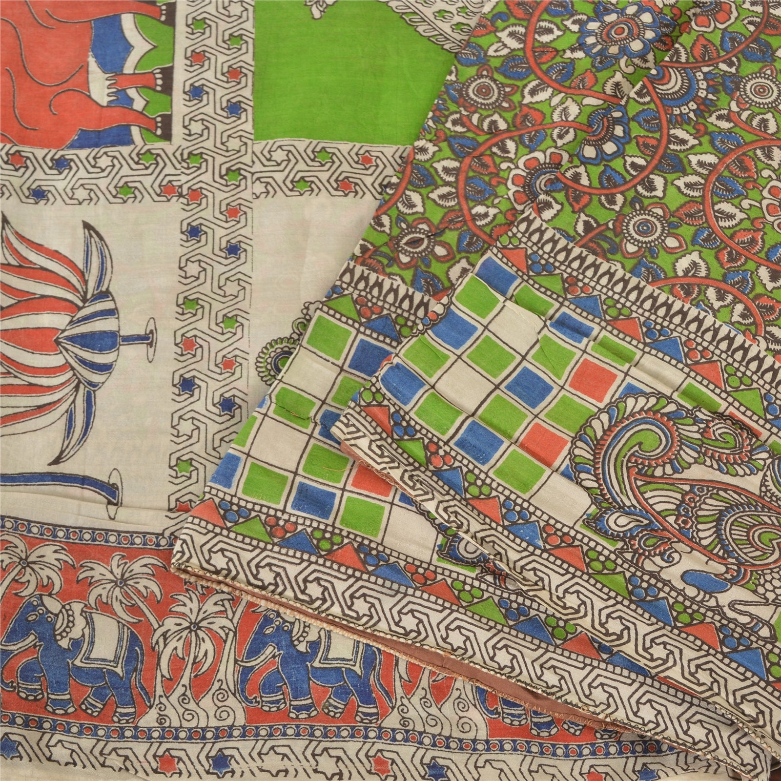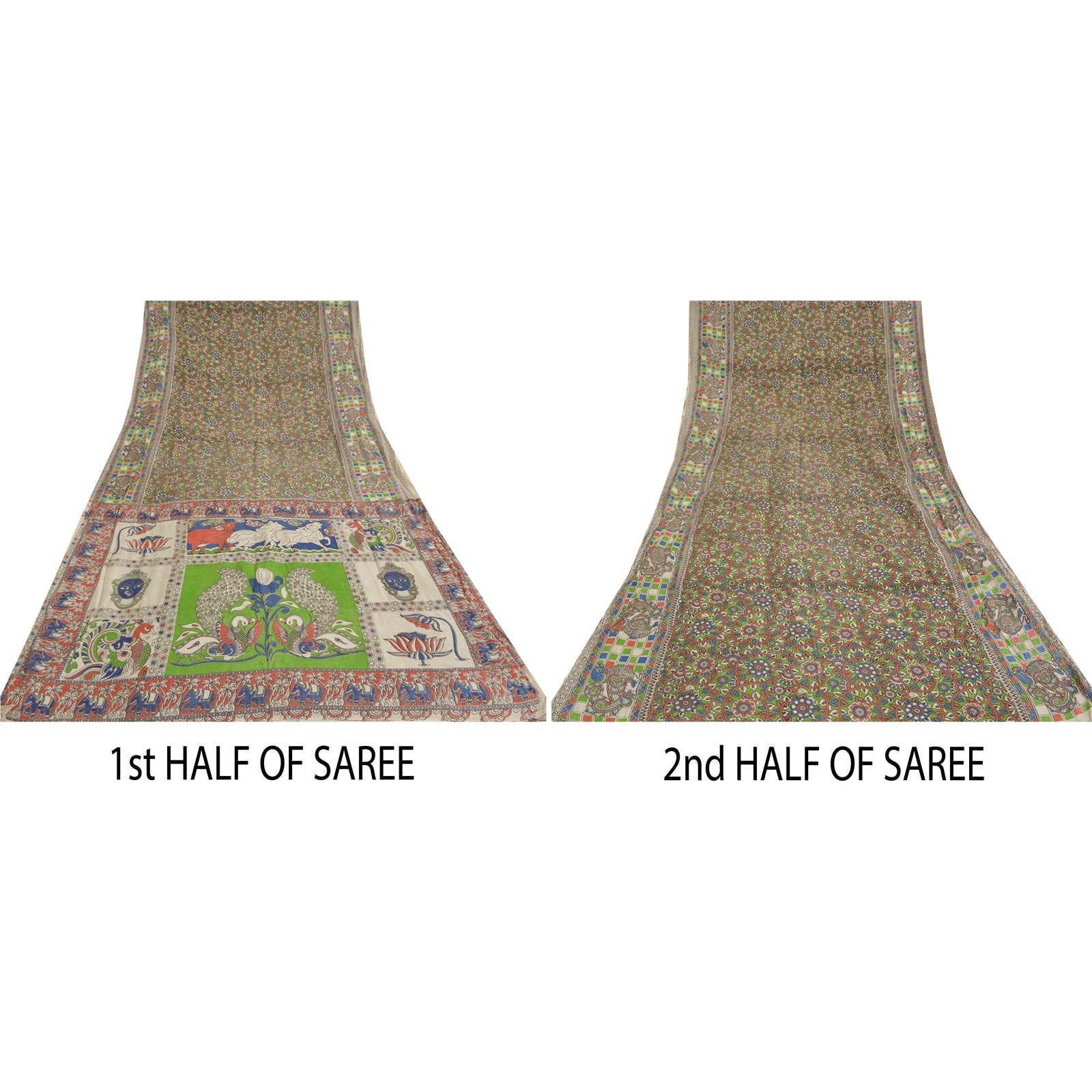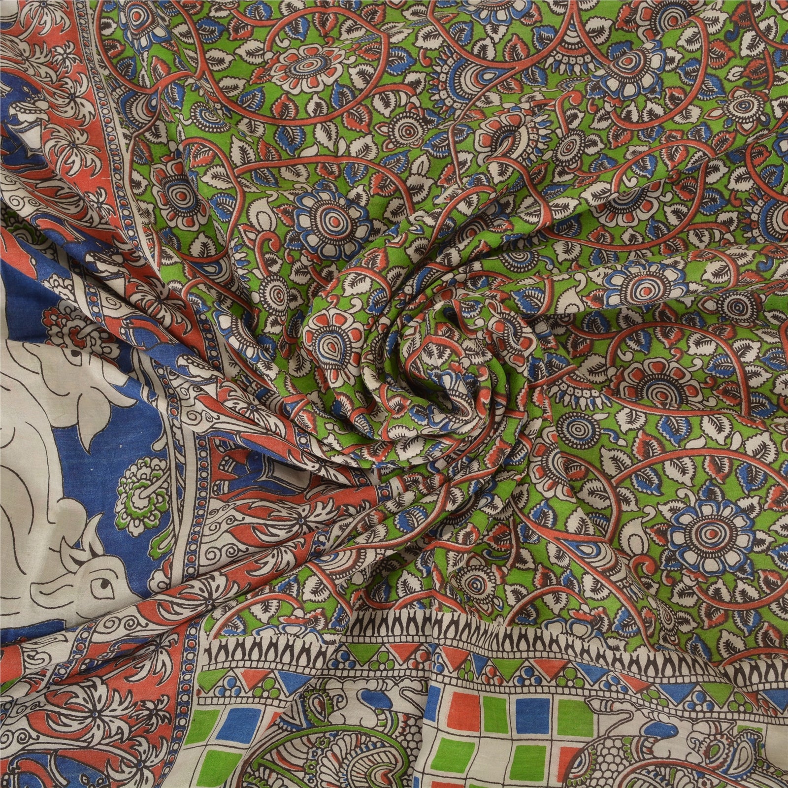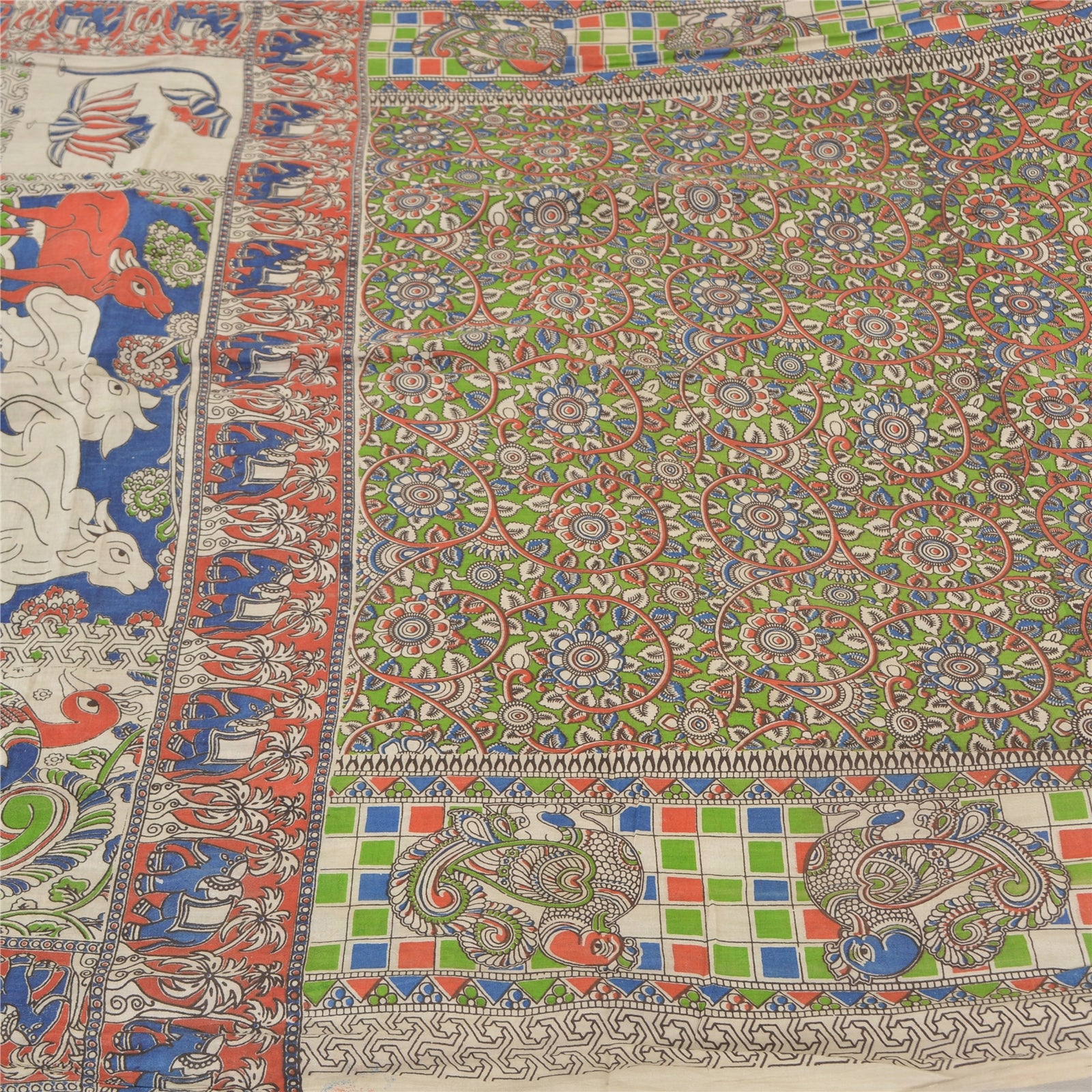 Sanskriti Vintage Sarees Green Handmade Kalamkari Pure Cotton Sari Craft Sustainable Fabric