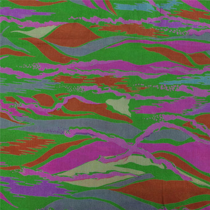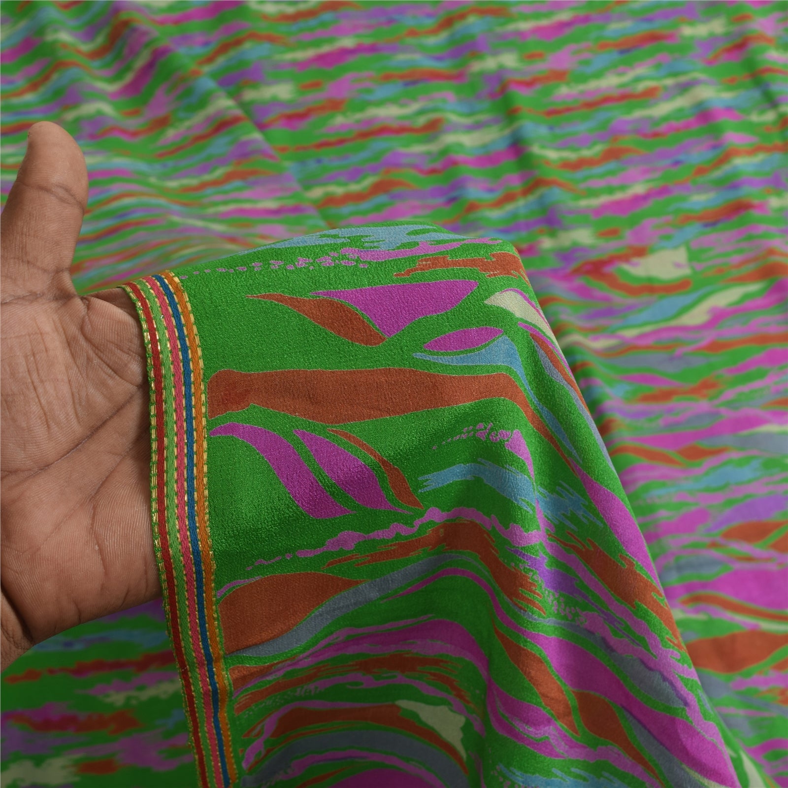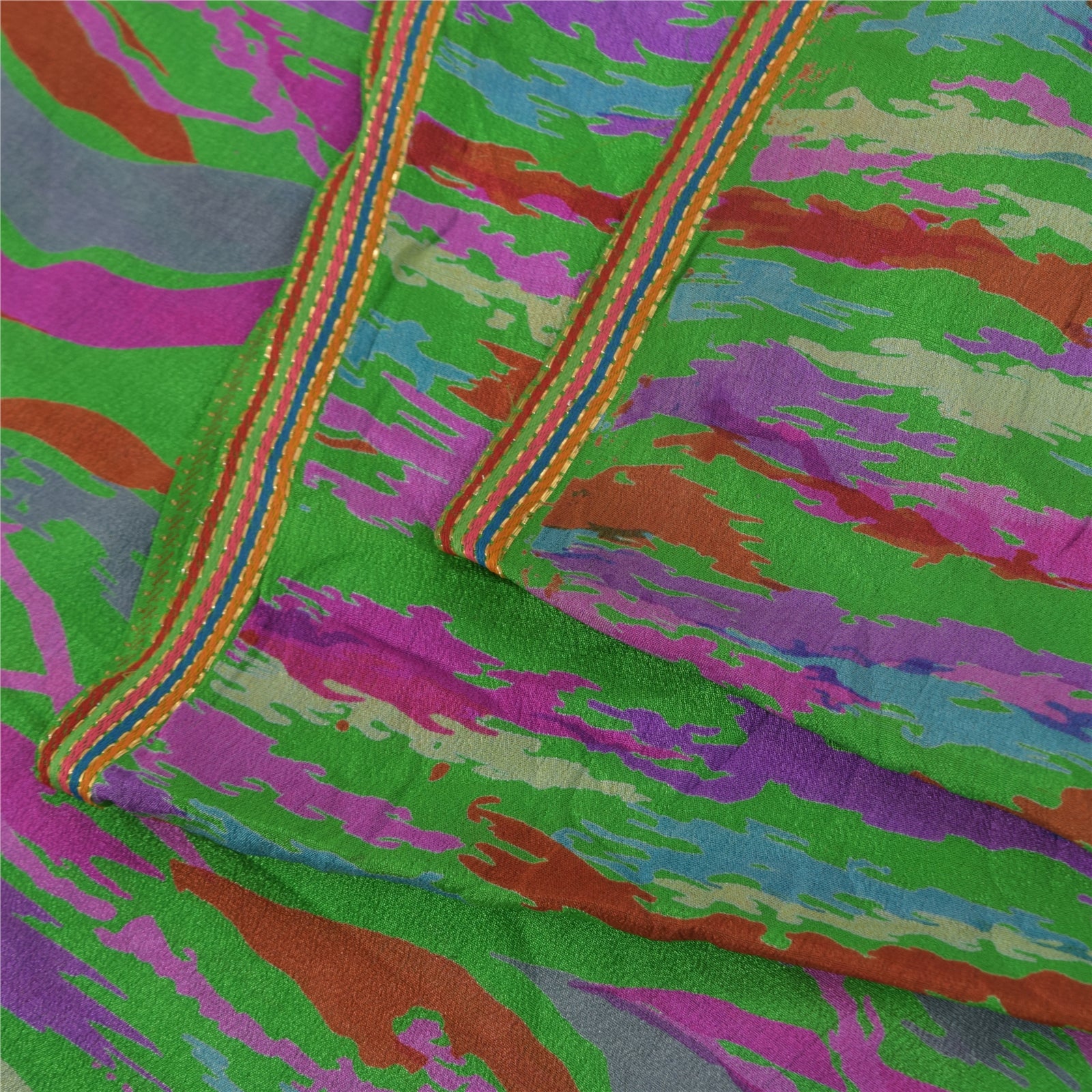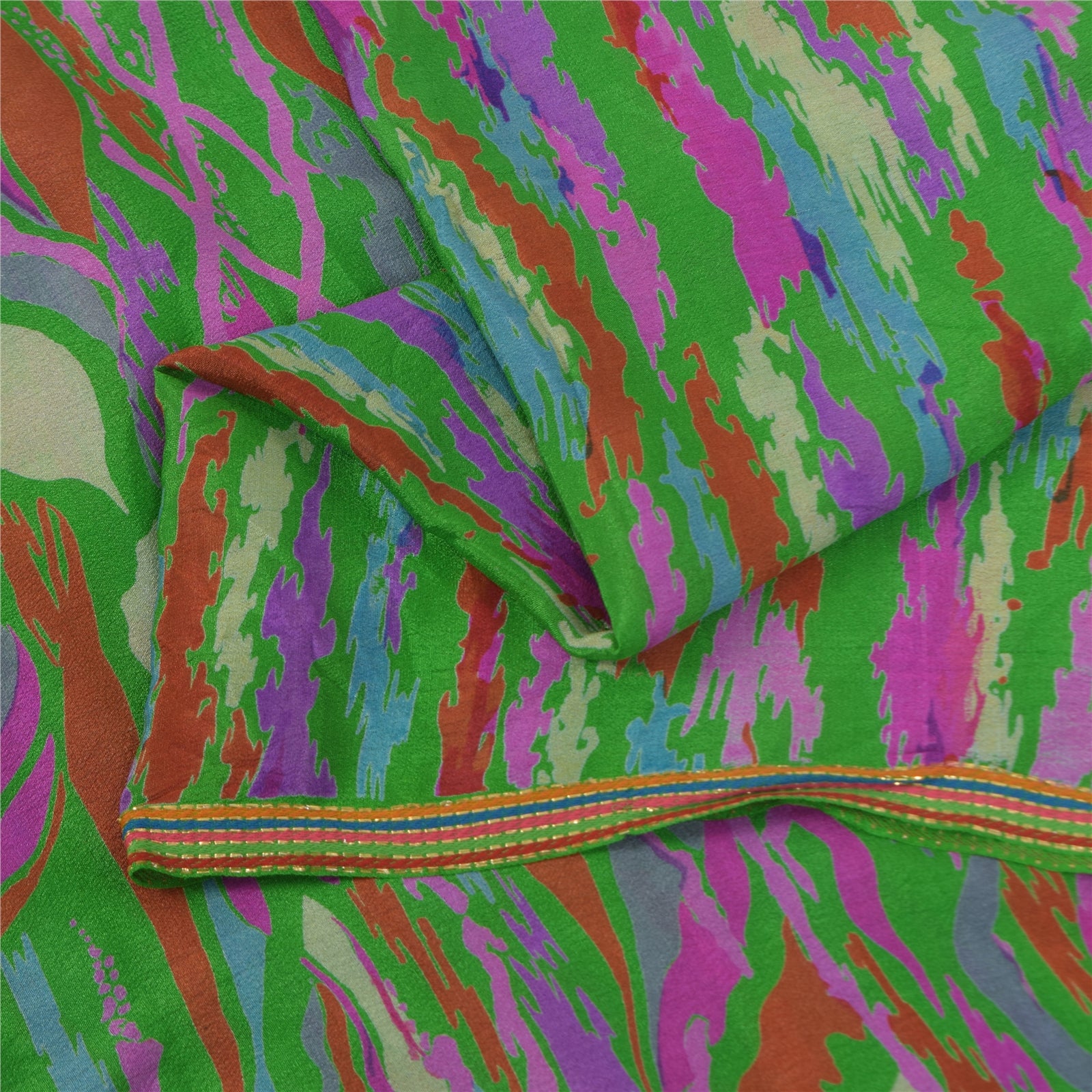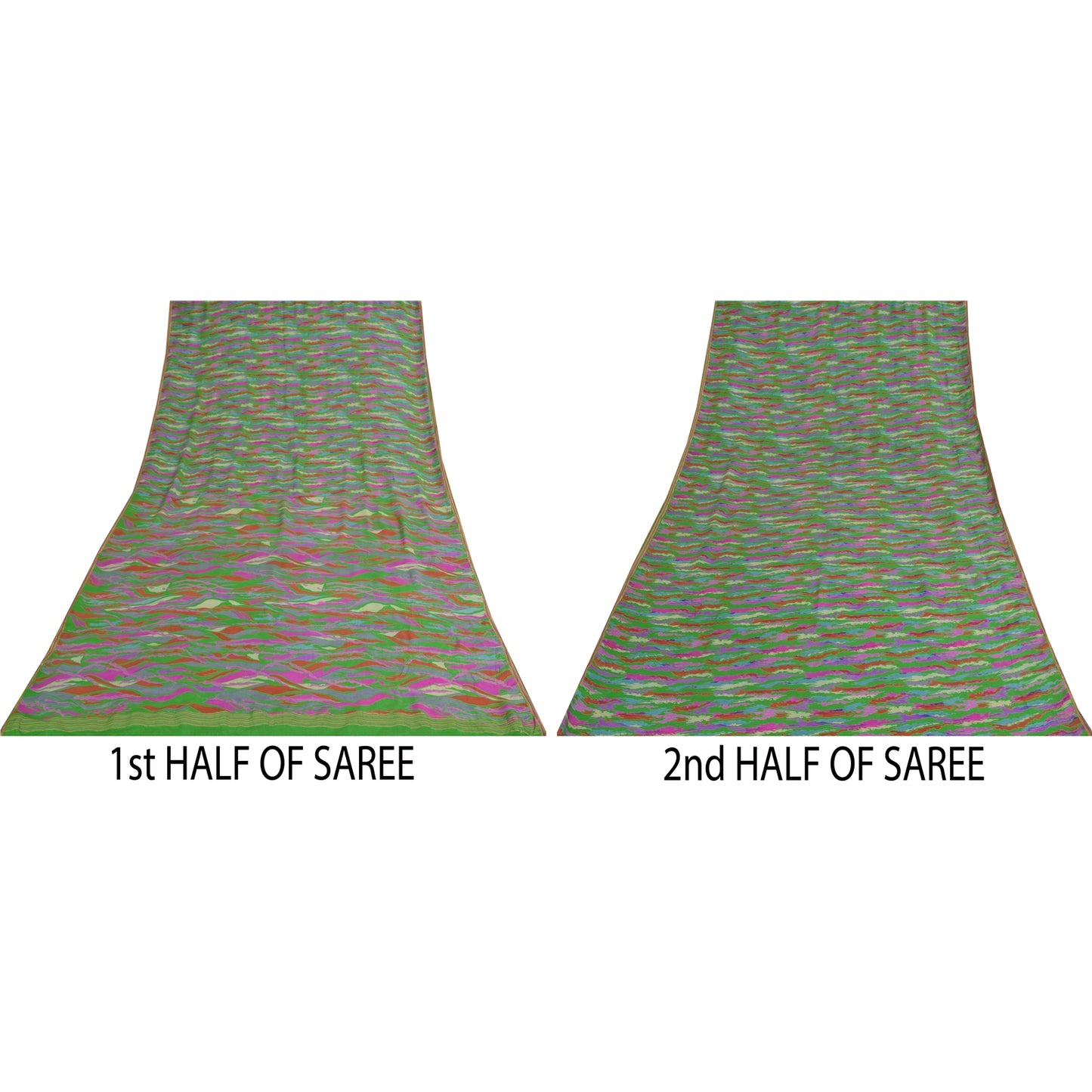 Sanskriti Vintage Sarees Green Indian Pure Silk Printed Sari 5+yd Craft Fabric