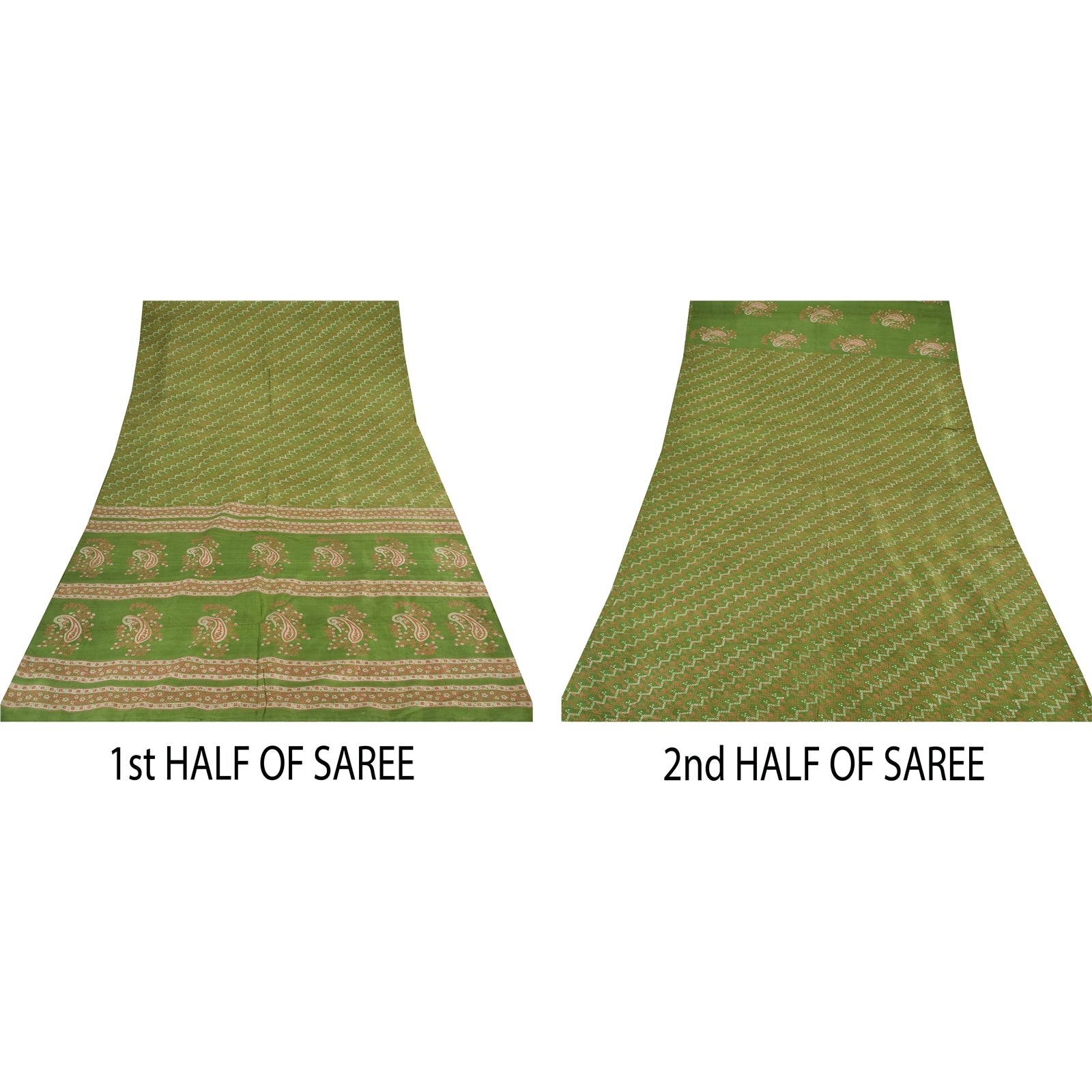 Sanskriti Vintage Sarees Green Indian Pure Silk Printed Sari 6yd Craft Sustainable Fabric