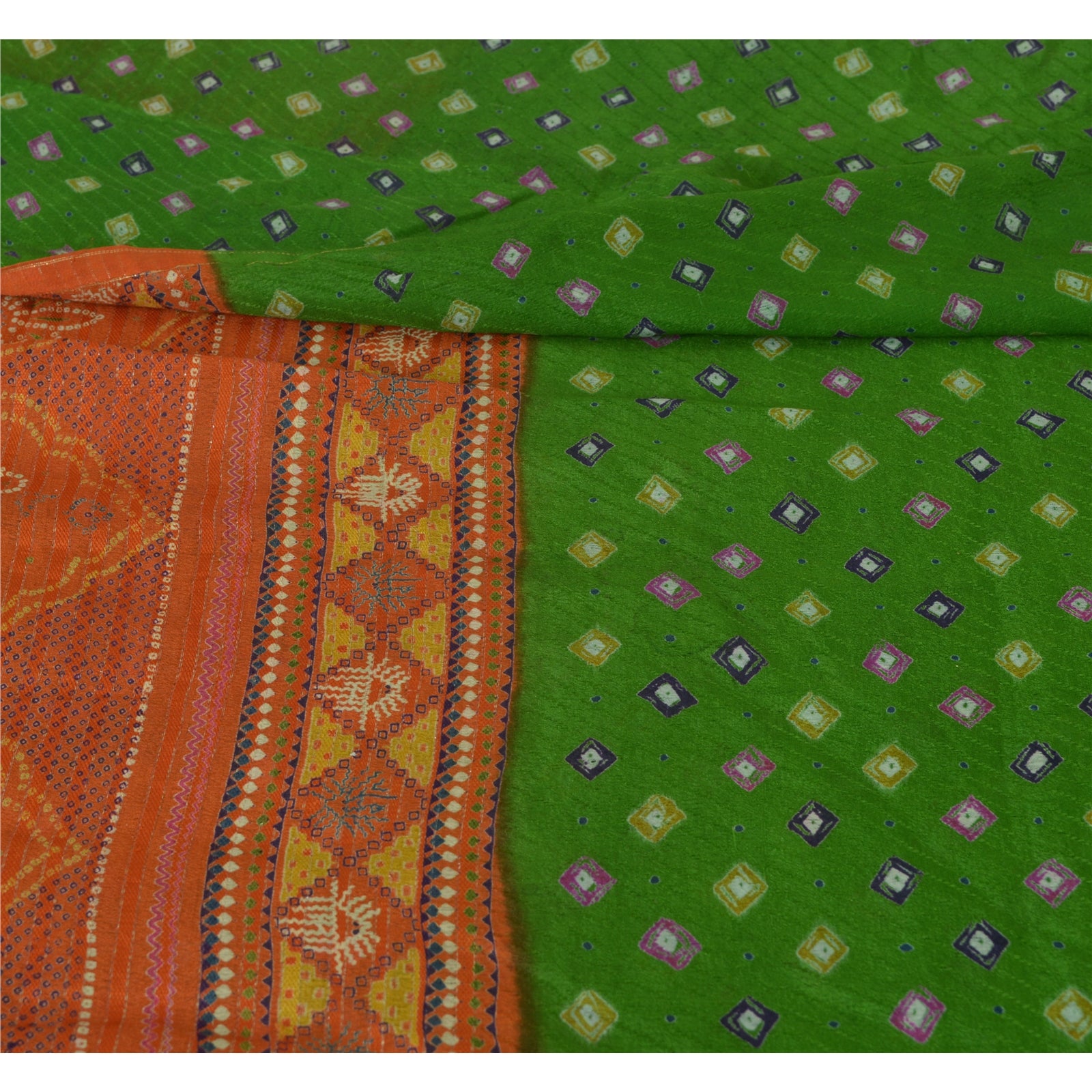 Sanskriti Vintage Sarees Green/Orange Pure Crepe Silk Sari Printed Craft Sustainable Fabric