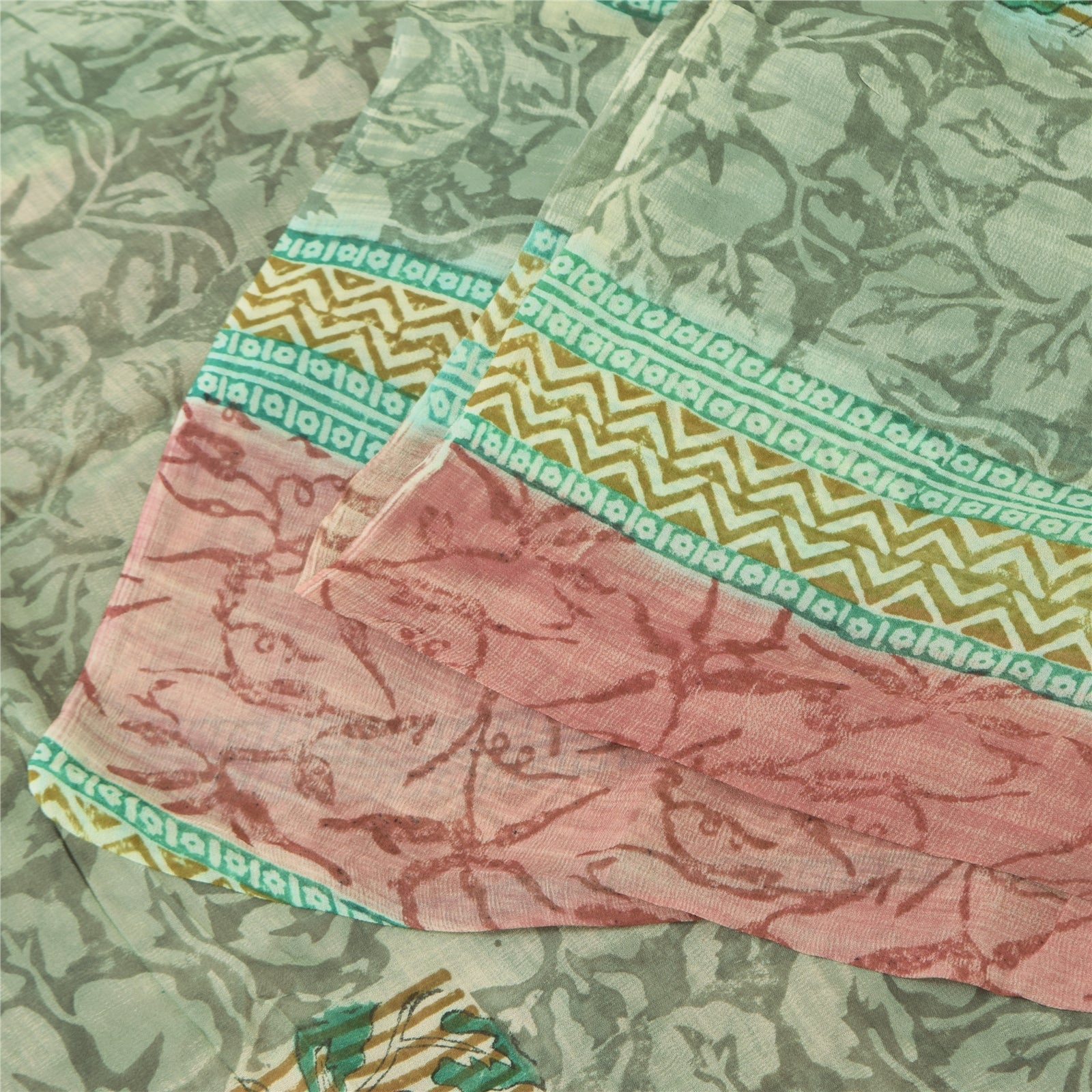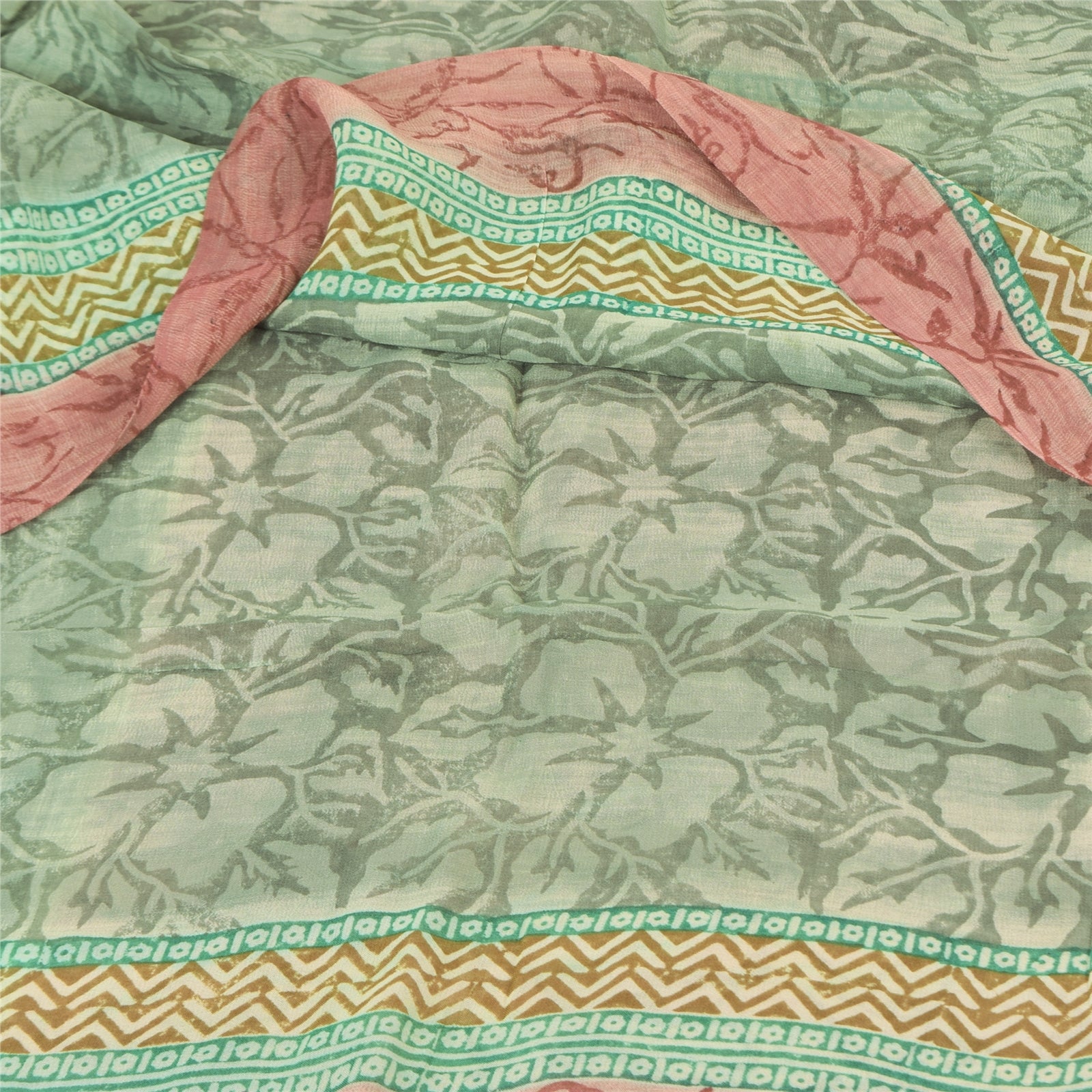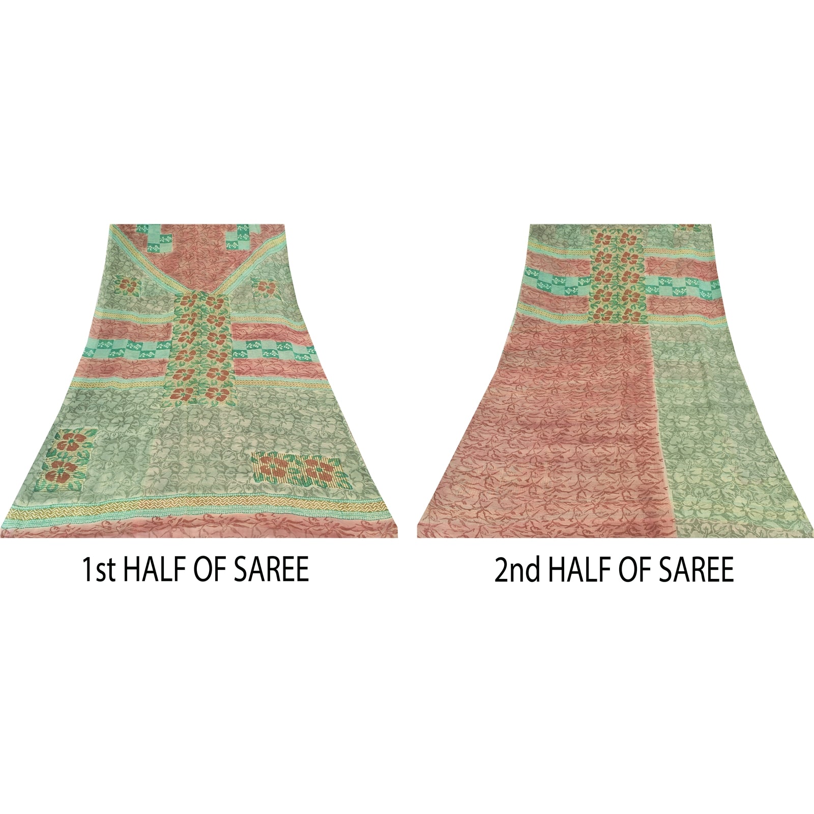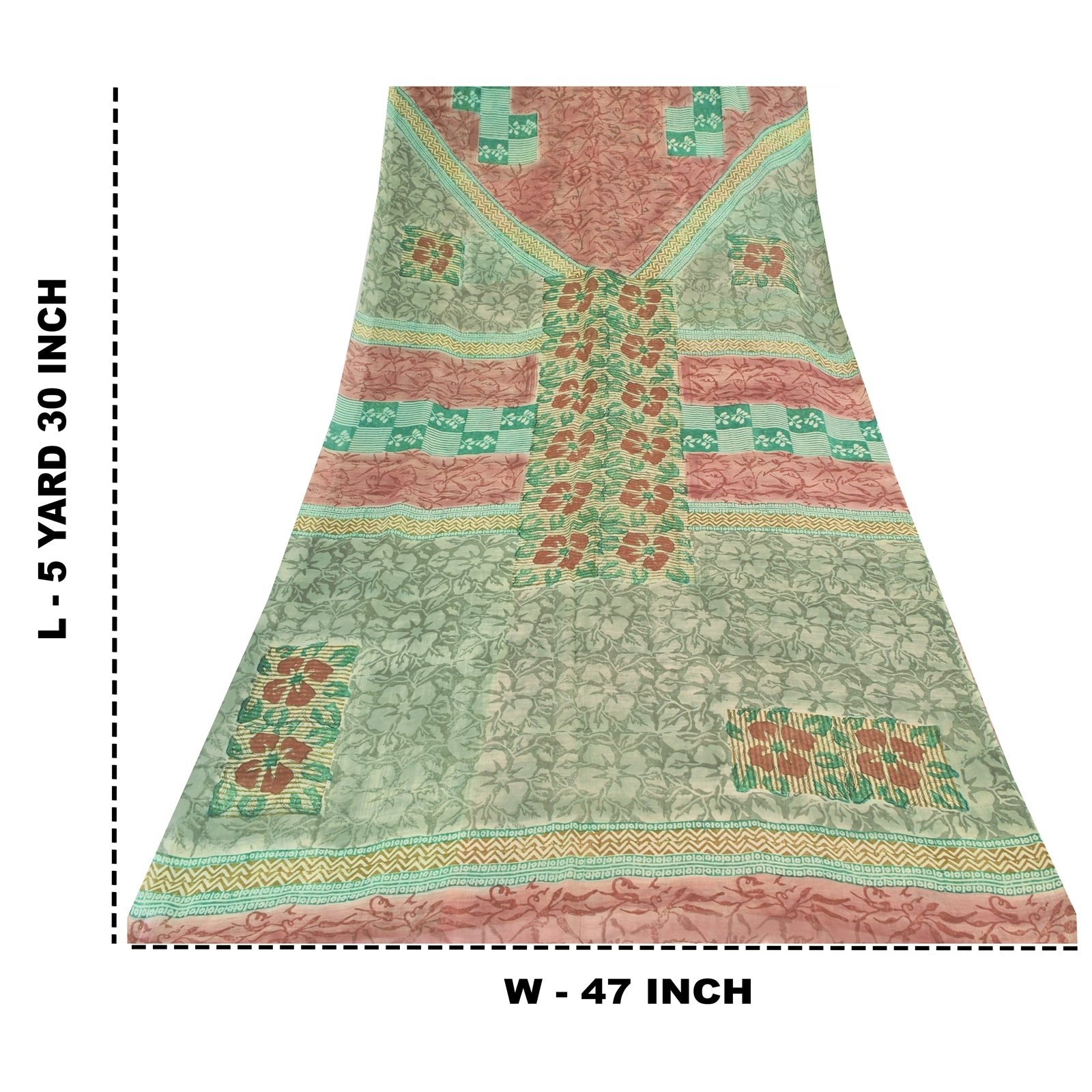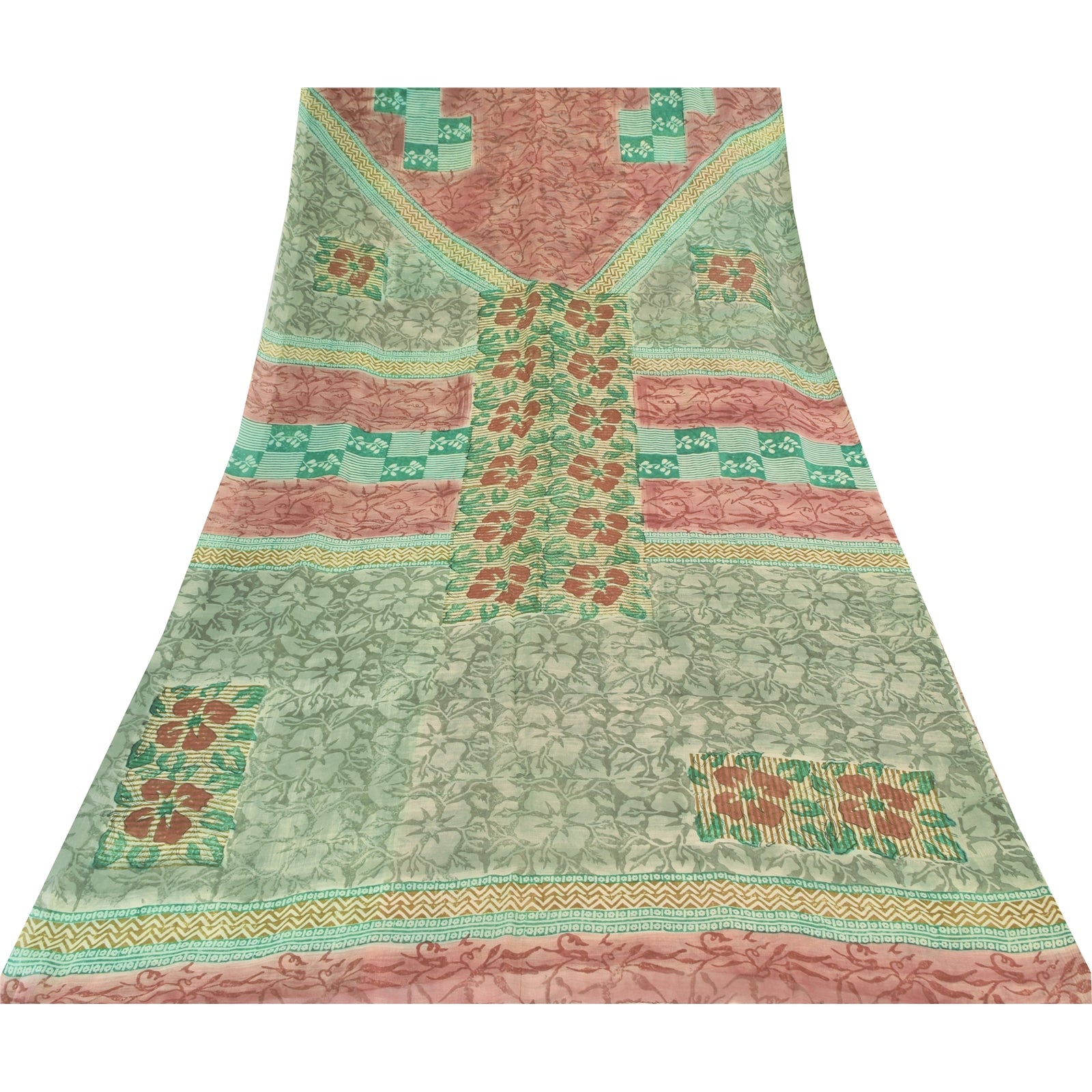 Sanskriti Vintage Sarees Green/Pink 100% Pure Georgette Printed Sari 5+yd Sustainable Fabric