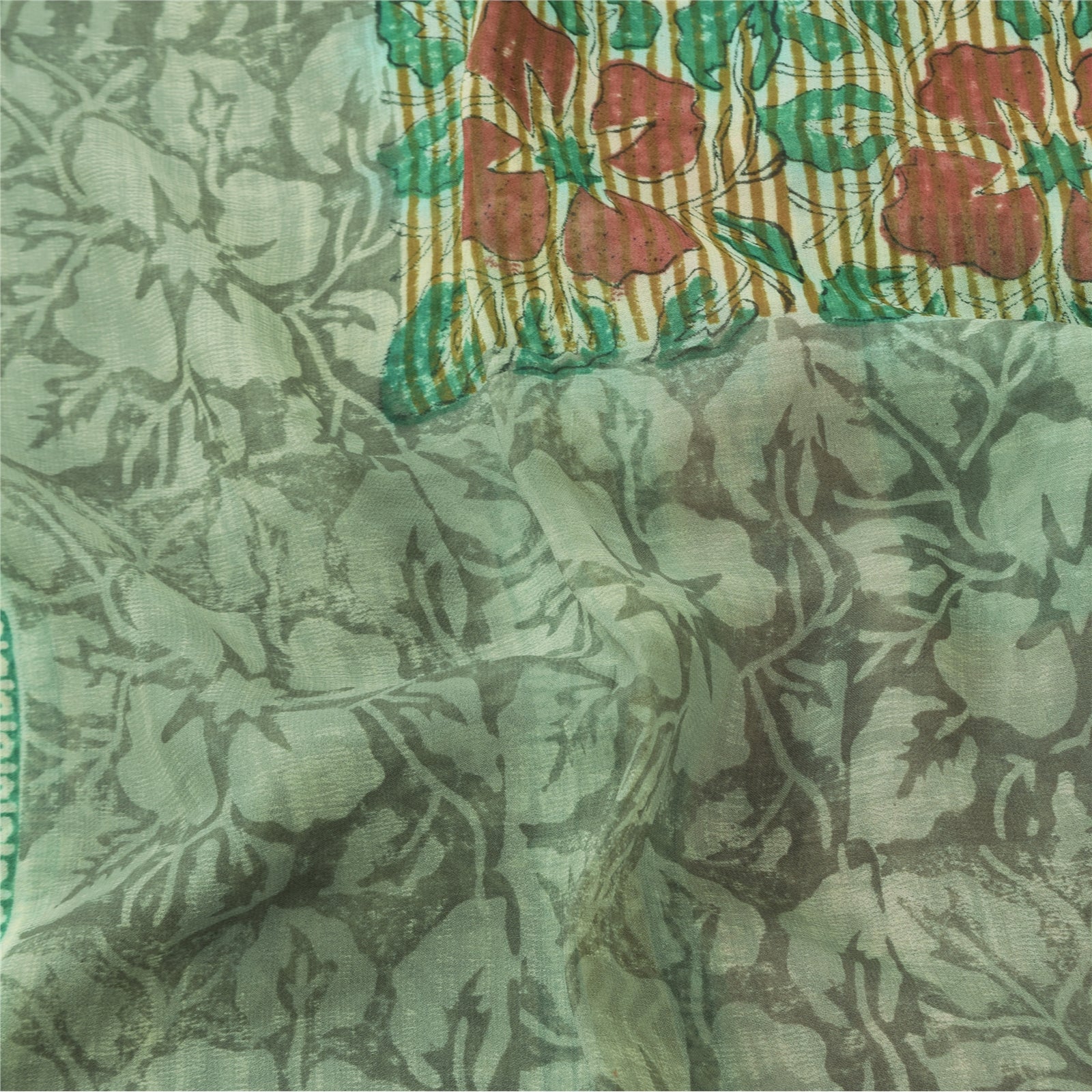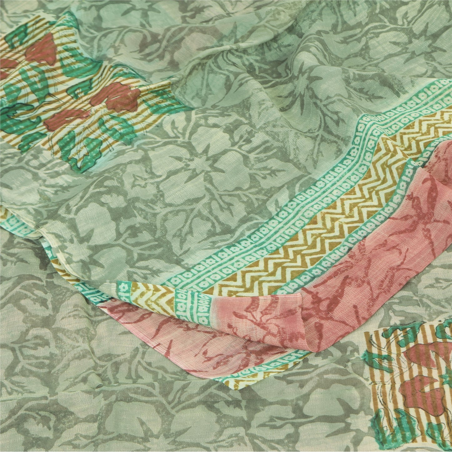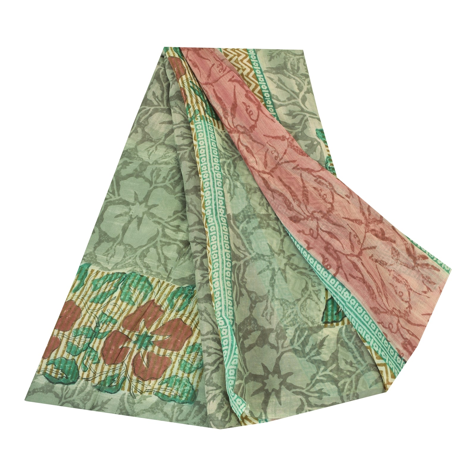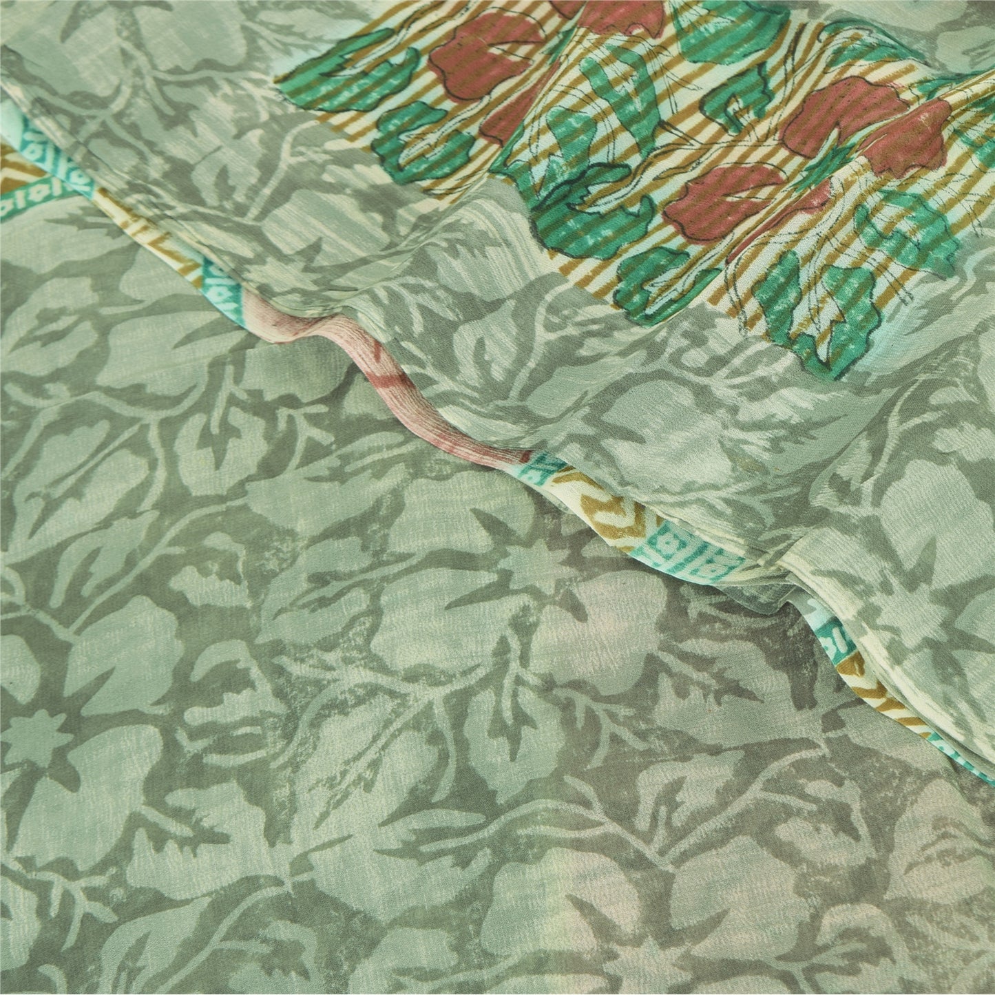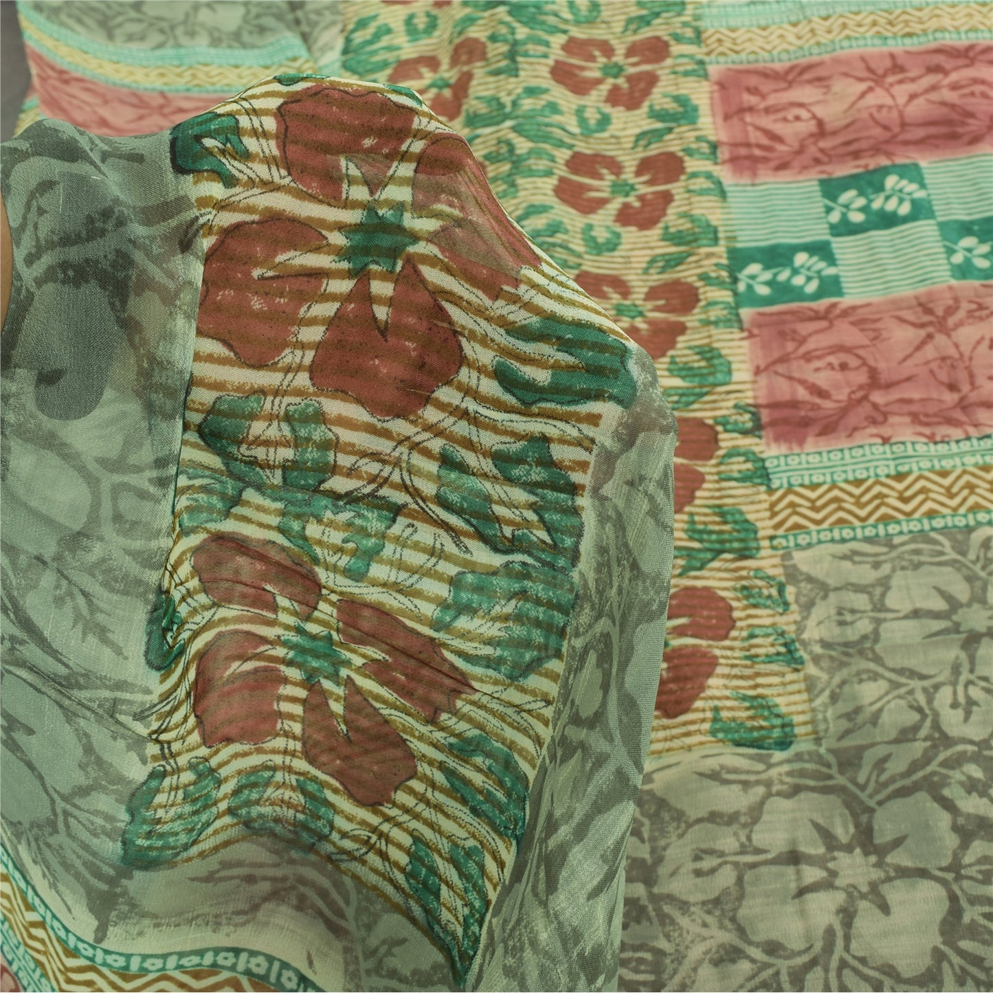 Sanskriti Vintage Sarees Green/Pink 100% Pure Georgette Printed Sari 5+yd Sustainable Fabric