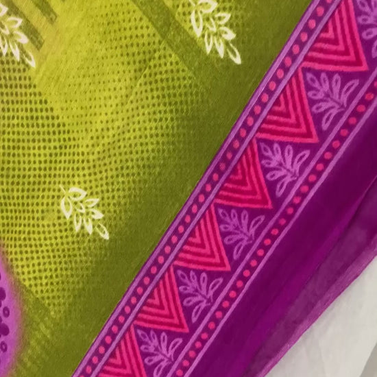 THE ITEM COLOR OR SHADE MAY BE DARKER OR LIGHTER THAN THE PICTURE. Attractive green colored pure cotton printed sari. Pallu & Border has printed floral design. Similar design in center part of saree.. This unique vintage saree can be used for various crafting ideas even if you don't want to use it as a sari. Design a dress, use it as a as window dressing, upholstery, sarongs, throw, dress making and table linen much more. Let your creative juices flow and use this decorated fabric in multiple fashion. Shipping Note: 'International buyers please note: Import duties, taxes, and charges are not included in the item price or postage cost. These charges are the buyer's responsibility. Please check with your country's customs office to determine what these additional costs will be prior to bidding or buying. Buyer will pay custom duty/tax. It is calculated and charged differently by every country. As a seller I do not have any control over it. VAT or sales tax is calculated by the platform at the time of checkout. Customs charge is payable at the time of delivery.' PCS-7058
