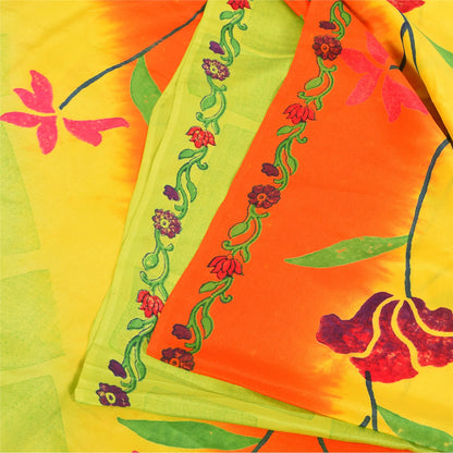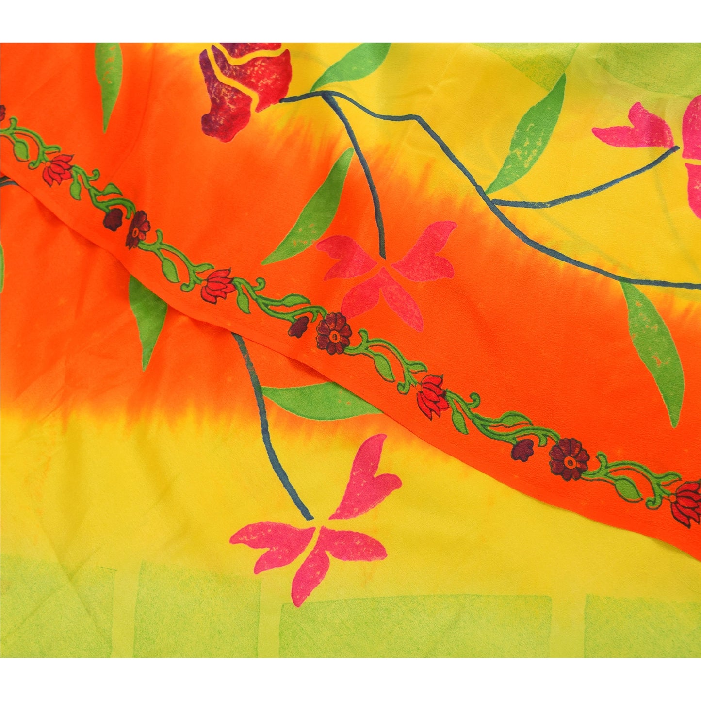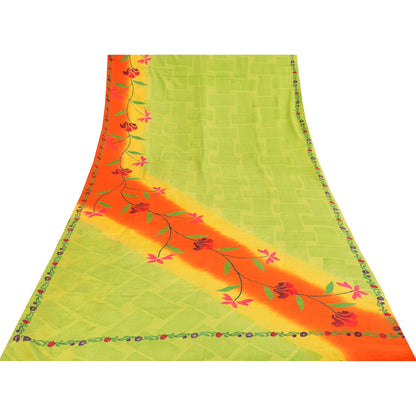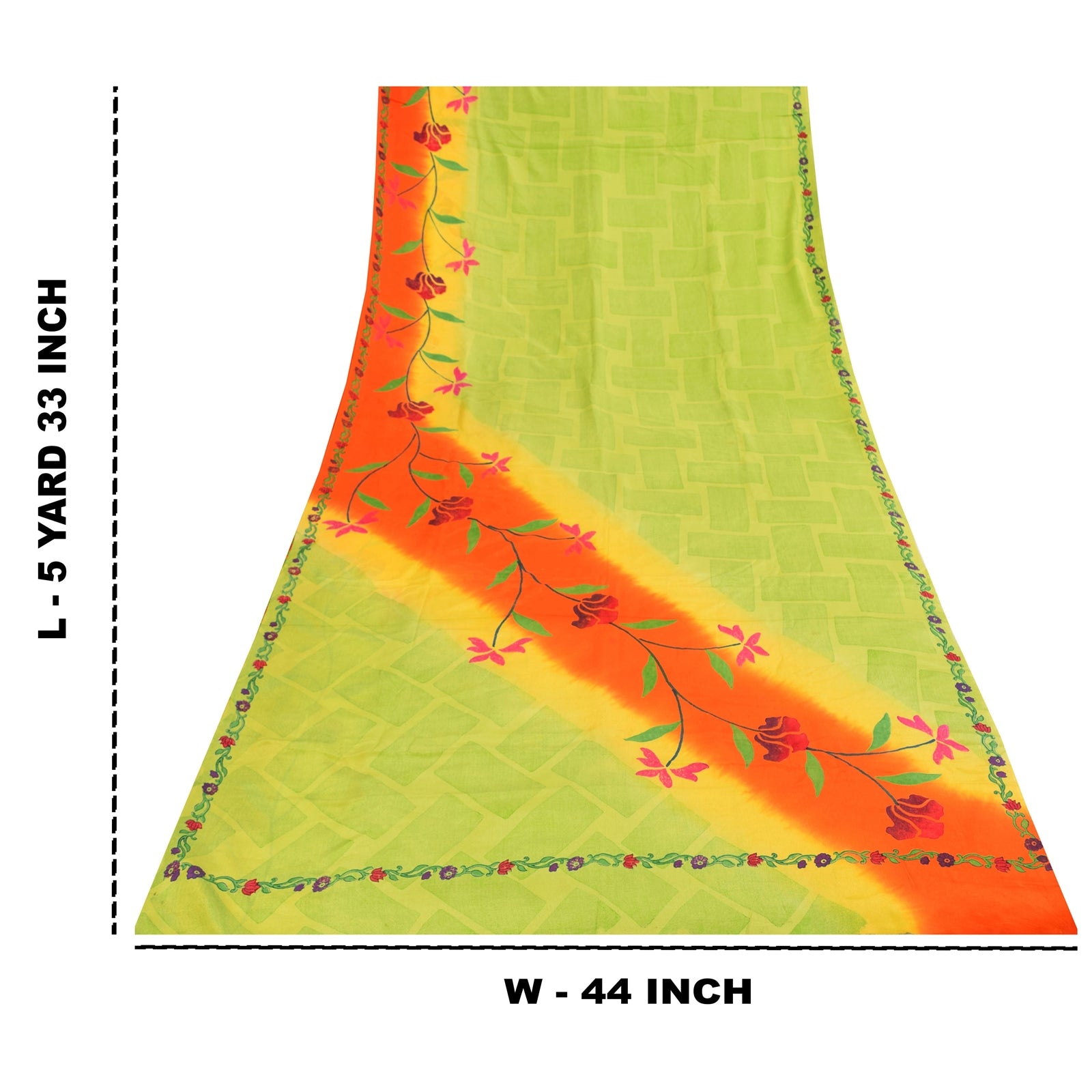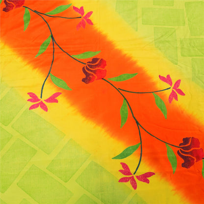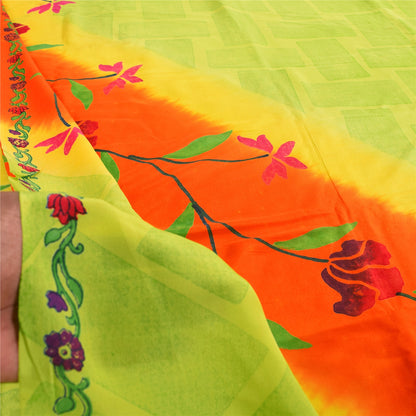 Sanskriti Vintage Sarees Green Pure Crepe Silk Printed Sari 5+yd Craft Sustainable Fabric