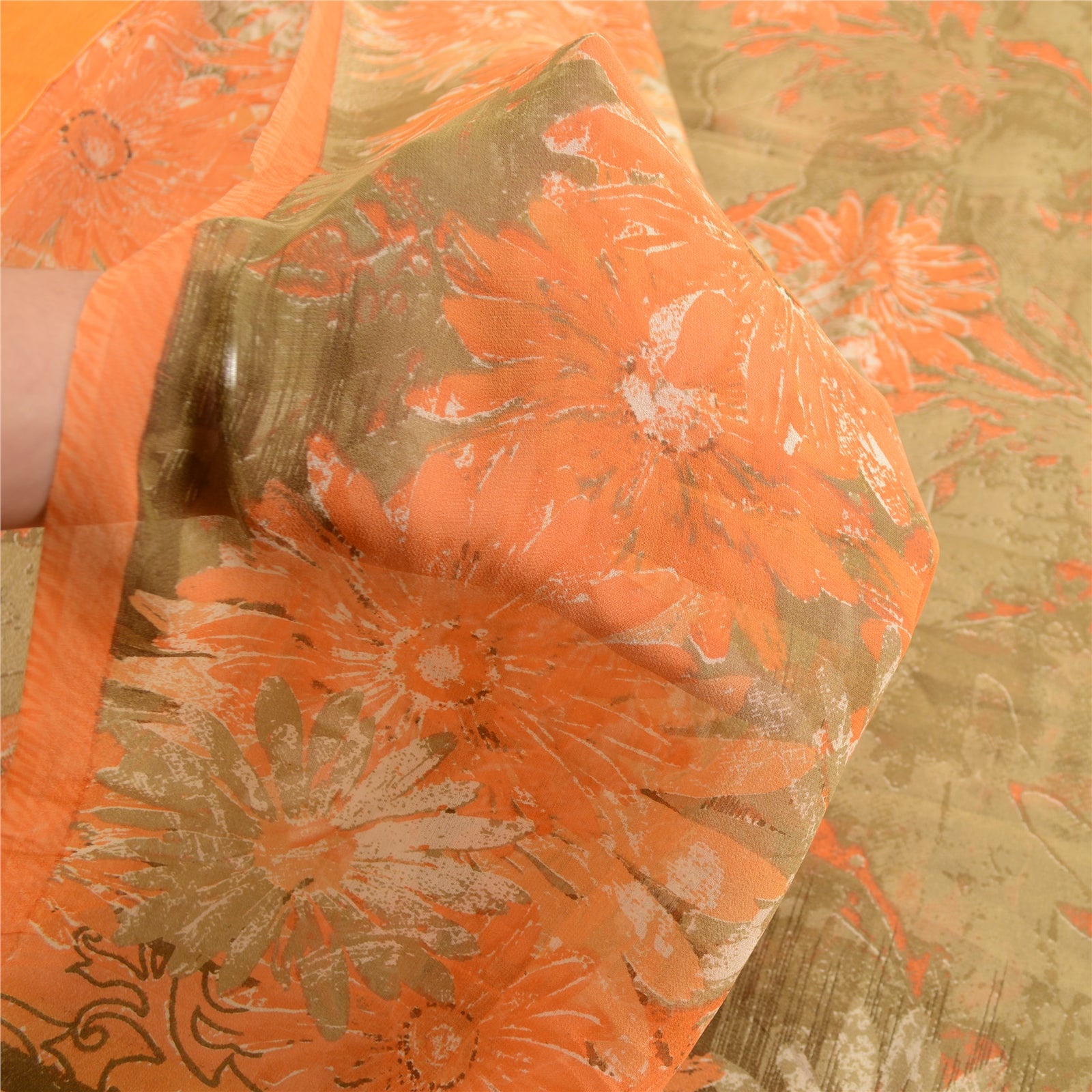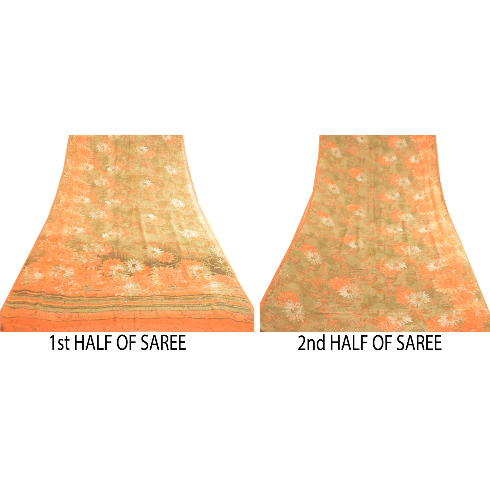 THE ITEM COLOR OR SHADE MAY BE DARKER OR LIGHTER THAN THE PICTURE.' Beautiful green & orange colored pure georgette silk printed saree. Pallu & border has printed floral design. Similar design in ceneter part of saree. What is special about this saree? Brilliant design on soft Sustainable Fabric is really enhancing the beauty of the saree.This unique vintage saree can be used for various crafting ideas even if you don't want to use it as a sari. Design a dress, use it as a as window dressing, upholstery, sarongs, throw, dress making and table linen much more. Let your creative juices flow and use this decorated Sustainable Fabric in multiple fashion. International buyers please note: Import duties, taxes, and charges are not included in the item price or postage cost. These charges are the buyer's responsibility. Please check with your country's customs office to determine what these additional costs will be prior to bidding or buying.Buyer will pay custom duty/tax. It is calculated and charged differently by every country. As a seller I do not have any control over it.VAT or sales tax is calculated by the platform at the time of checkout. Customs charge is payable at the time of delivery.
