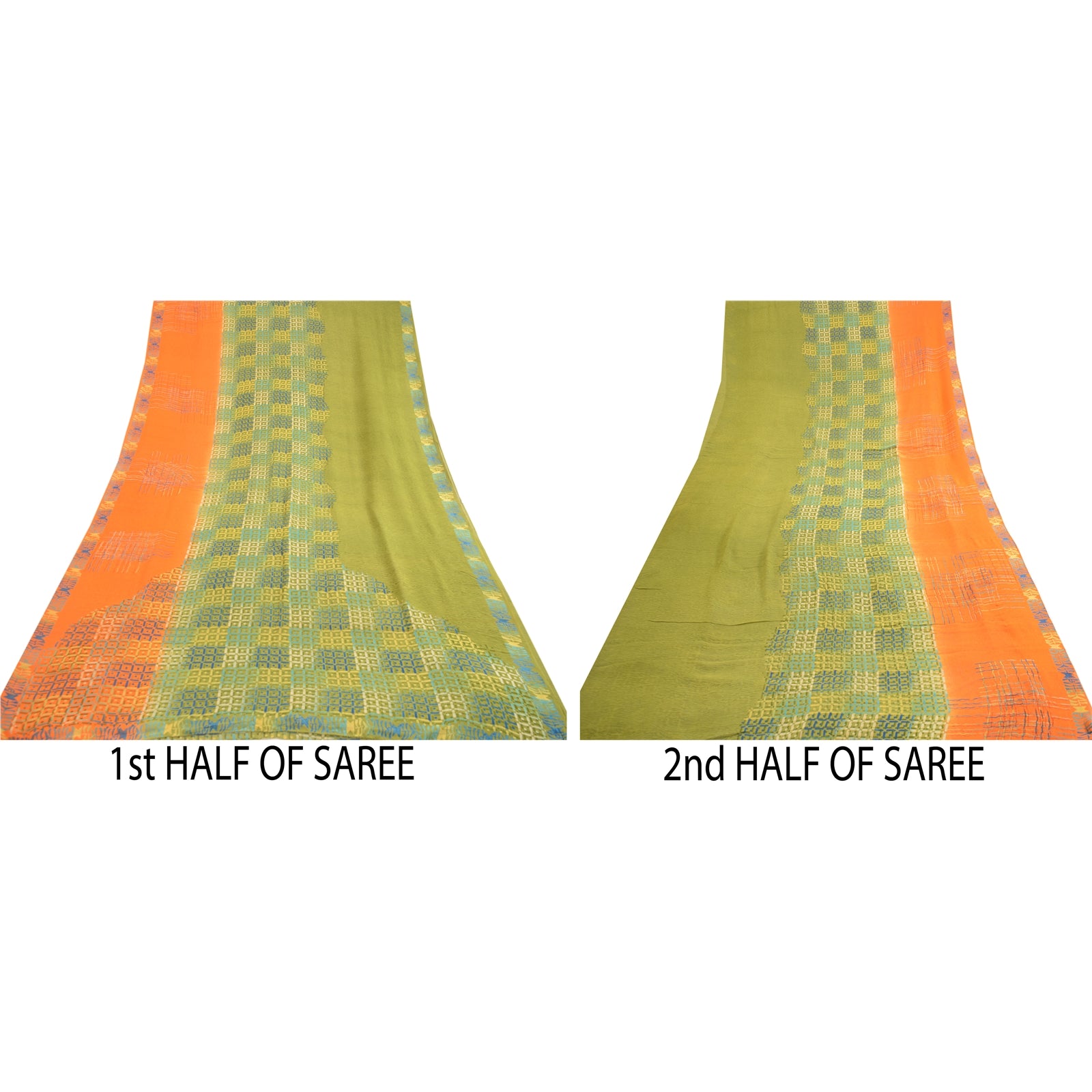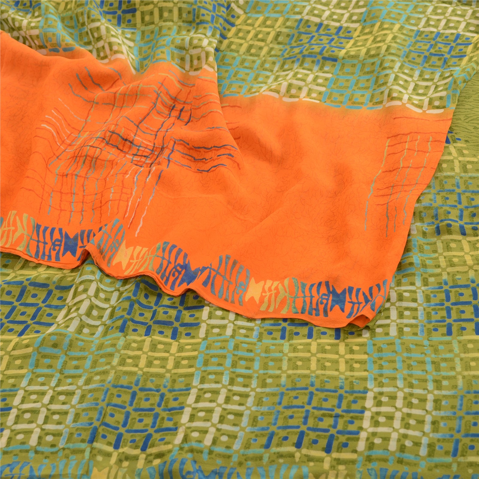 THE ITEM COLOR OR SHADE MAY BE DARKER OR LIGHTER THAN THE PICTURE.' Beautiful green & orange colored pure georgette silk printed saree. Pallu & Border has printed geometric design. Abstract design in center part of saree. What is special about this saree? Brilliant design on soft Sustainable Fabric is really enhancing the beauty of the saree.This unique vintage saree can be used for various crafting ideas even if you don't want to use it as a sari. Design a dress, use it as a as window dressing, upholstery, sarongs, throw, dress making and table linen much more. Let your creative juices flow and use this decorated Sustainable Fabric in multiple fashion. International buyers please note: Import duties, taxes, and charges are not included in the item price or postage cost. These charges are the buyer's responsibility. Please check with your country's customs office to determine what these additional costs will be prior to bidding or buying.Buyer will pay custom duty/tax. It is calculated and charged differently by every country. As a seller I do not have any control over it.VAT or sales tax is calculated by the platform at the time of checkout. Customs charge is payable at the time of delivery.