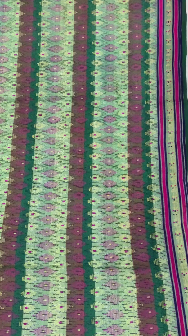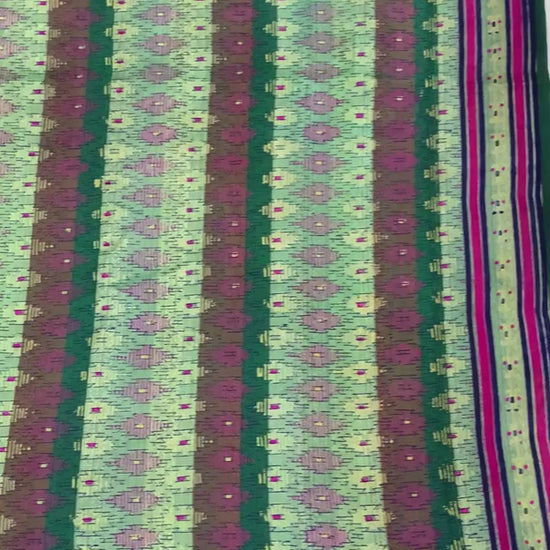 Sanskriti Vintage Sarees Green Pure Silk Block Printed & Woven Sari 5+yd Fabric