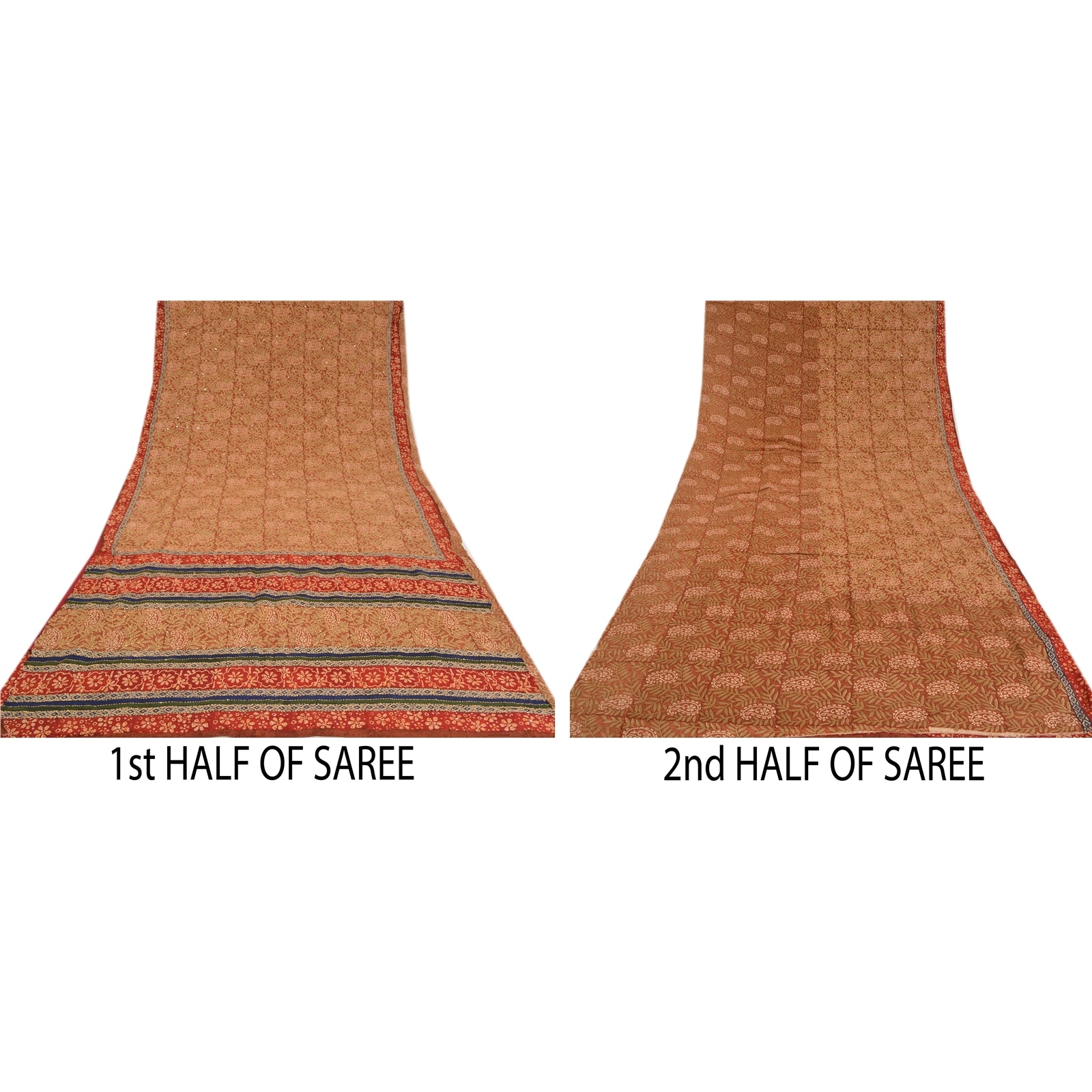 Sanskriti Vintage Sarees Hand Beaded Kantha Printed Pure Crepe Silk Sari Sustainable Fabric