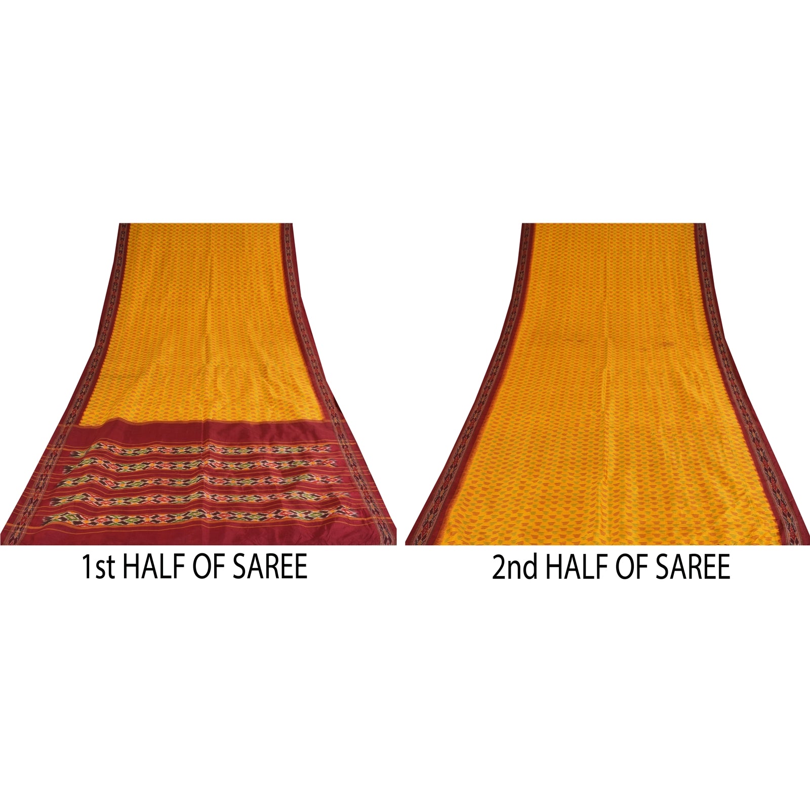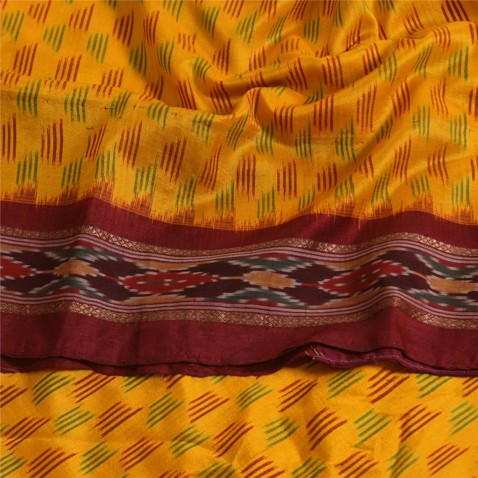 THE ITEM COLOR OR SHADE MAY BE DARKER OR LIGHTER THAN THE PICTURE. Attractive yellow colored pure silk ikat hand woven pochampally sari. Pallu & Border has geometric design with ikat woven work. Similar work in center part of saree.. This unique vintage saree can be used for various crafting ideas even if you don't want to use it as a sari. Design a dress, use it as a as window dressing, upholstery, sarongs, throw, dress making and table linen much more. Let your creative juices flow and use this decorated fabric in multiple fashion. Shipping Note: 'International buyers please note: Import duties, taxes, and charges are not included in the item price or postage cost. These charges are the buyer's responsibility. Please check with your country's customs office to determine what these additional costs will be prior to bidding or buying. Buyer will pay custom duty/tax. It is calculated and charged differently by every country. As a seller I do not have any control over it. VAT or sales tax is calculated by the platform at the time of checkout. Customs charge is payable at the time of delivery.' PT-6263