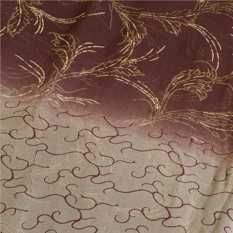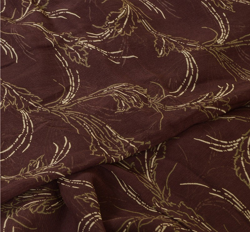 Title: PRG-13720 KreatvKraft Sarees Indian Brown Pure Chiffon Silk Print Sari Craft Fabric