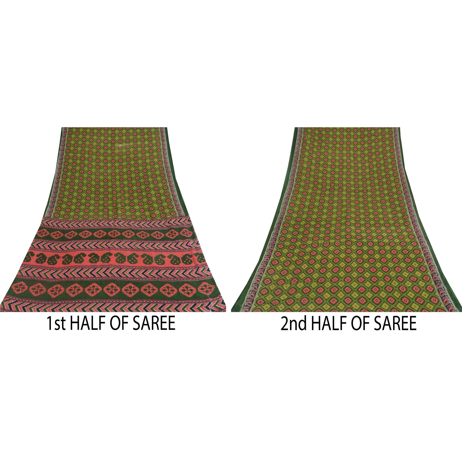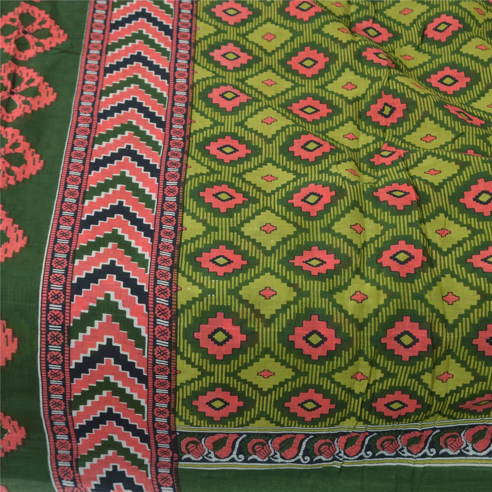 Sanskriti Vintage Sarees Indian Green Pure Cotton Printed Sari 5+yd Craft Sustainable Fabric