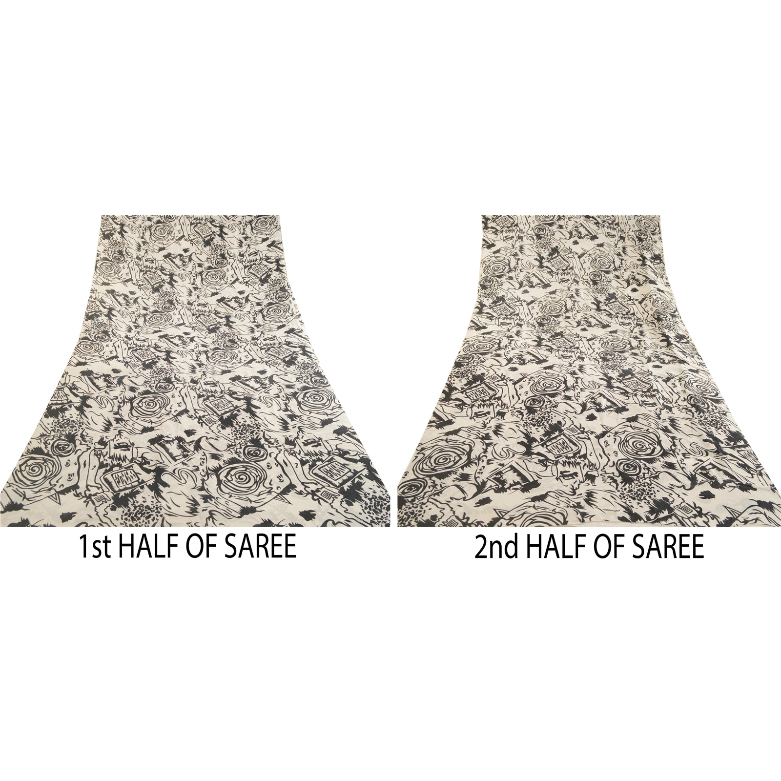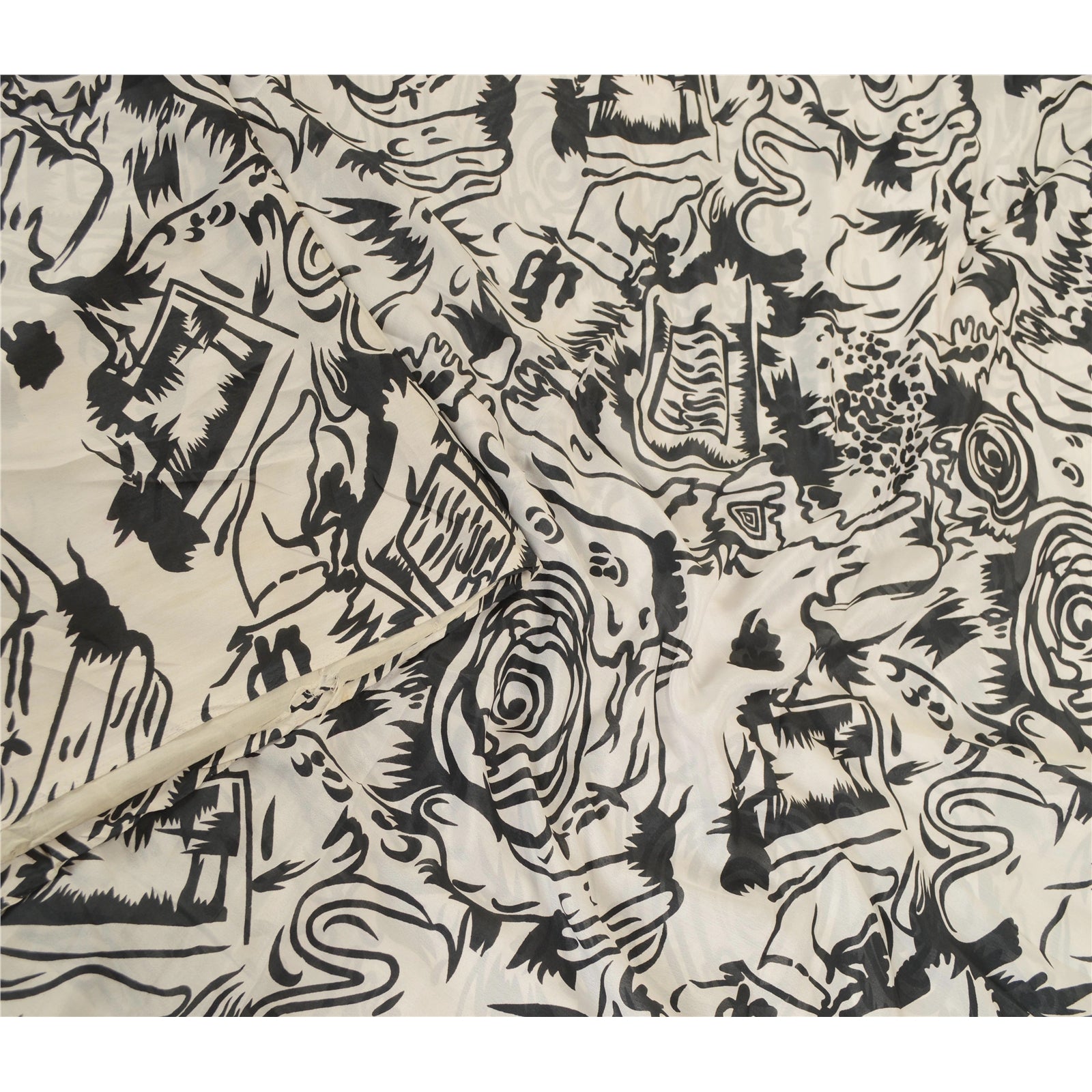 THE ITEM COLOR OR SHADE MAY BE DARKER OR LIGHTER THAN THE PICTURE.' Gorgeous ivory & black colored artificial silk printed saree. Allover sari has printed abstract design. This Sustainable Fabric is artificial silk. What is special about this saree?Very soft & smooth moss crepe Sustainable Fabric with attractive colorful print pattern is beauty of the saree.This unique vintage saree can be used for various crafting ideas even if you don't want to use it as a sari. Design a dress, use it as a throw, as window dressing, upholstery, sarongs, table linen and much more. Let your creative juices flow and use this decorated Sustainable Fabric in multiple fashion. Saree has mild stain on it. Internationalbuyers please note:Import duties, taxes, and charges are not included in the item price or postage cost. These charges are the buyer's responsibility. Please check with your country's customs office to determine what these additional costs will be prior to bidding or buying.Buyer will pay custom duty/tax. It is calculated and charged differently by every country. As a seller I do not have any control over it.VAT or sales tax is calculated by the platform at the time of checkout. Customs charge is payable at the time of delivery.