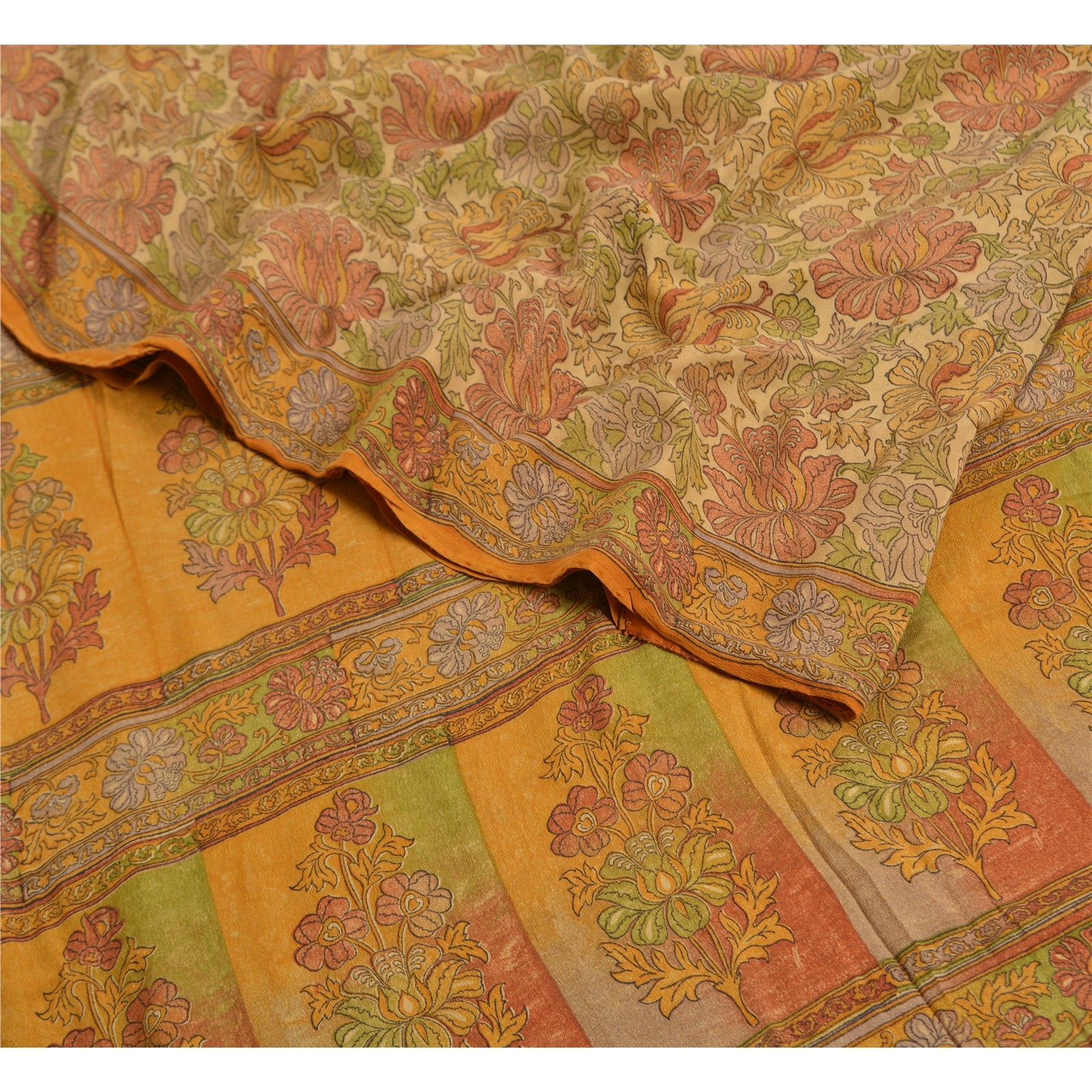 THE ITEM COLOR OR SHADE MAY BE DARKER OR LIGHTER THAN THE PICTURE.' Beautiful multi colored pure crepe silk printed saree. Pallu & Border has printed flroal design. Floral design in center part of saree. What is special about this saree? Fabulous design is really enhancing the beauty of the saree. This unique vintage saree can be used for various crafting ideas even if you don't want to use it as a sari. Design a dress, use it as window,dressing, upholstery, sarongs, throw, dress making and table linen much more. Let your creative juices flow and use this decorated Sustainable Fabric in multiple fashion. International buyers please note: Import duties, taxes, and charges are not included in the item price or postage cost. These charges are the buyer's responsibility. Please check with your country's customs office to determine what these additional costs will be prior to bidding or buying.Buyer will pay custom duty/tax. It is calculated and charged differently by every country. As a seller I do not have any control over it.VAT or sales tax is calculated by the platform at the time of checkout. Customs charge is payable at the time of delivery.
