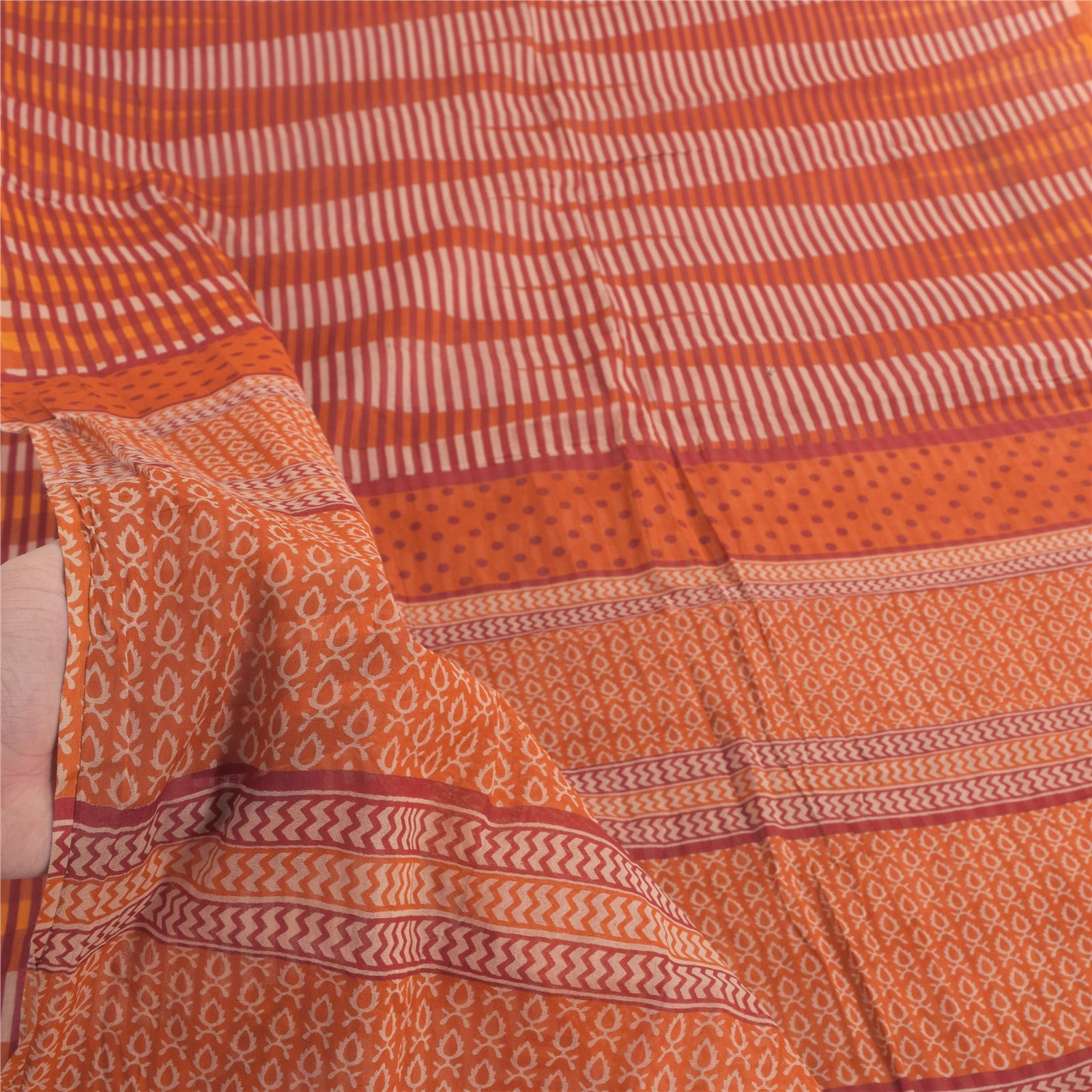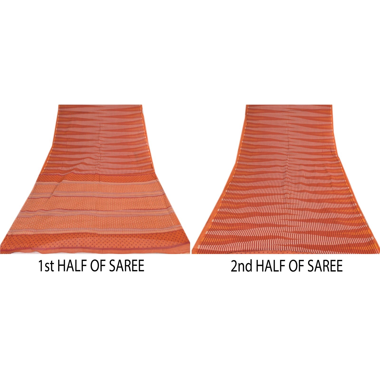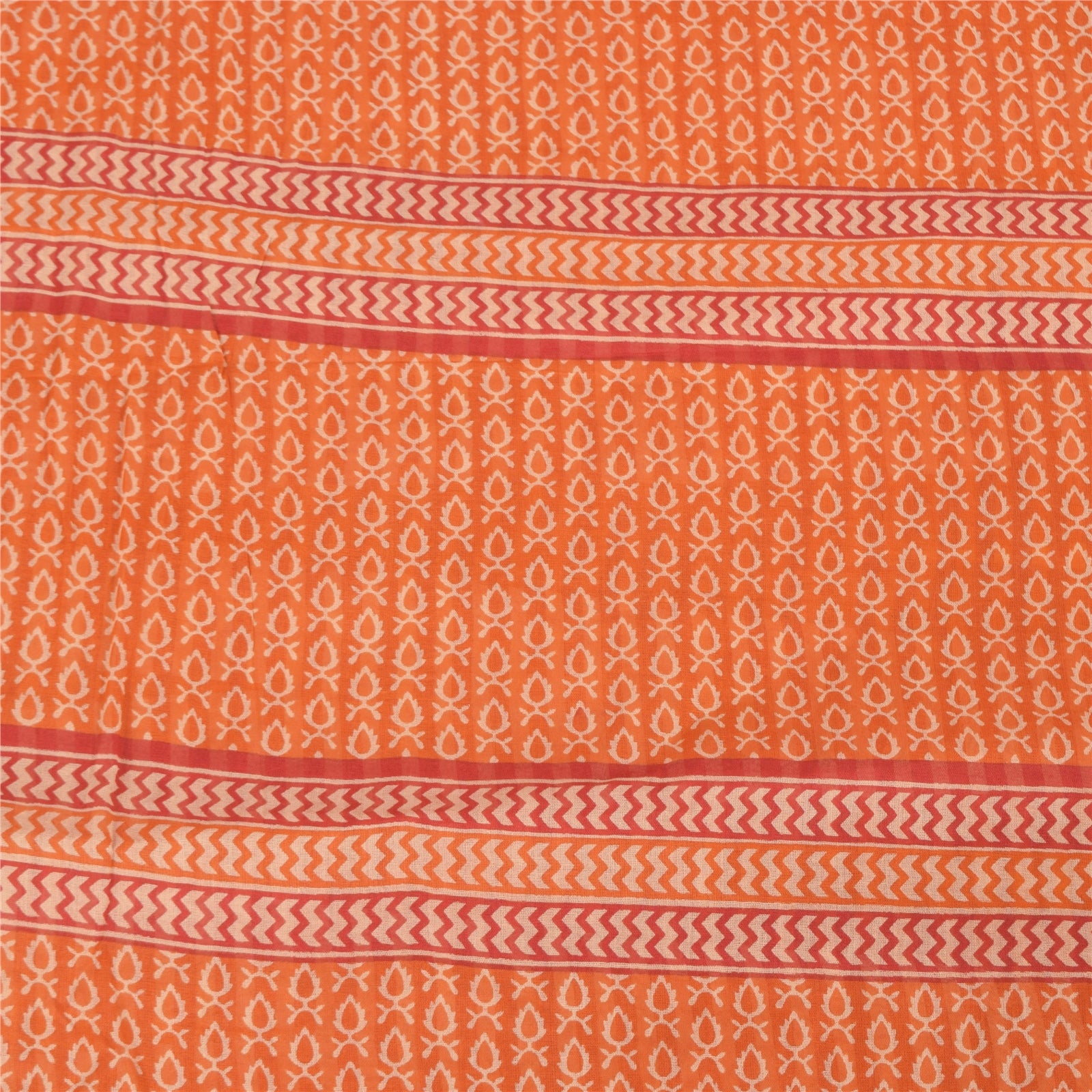 Sanskriti Vintage Sarees Indian Orange Pure Cotton Printed Sari 5yd Craft Sustainable Fabric