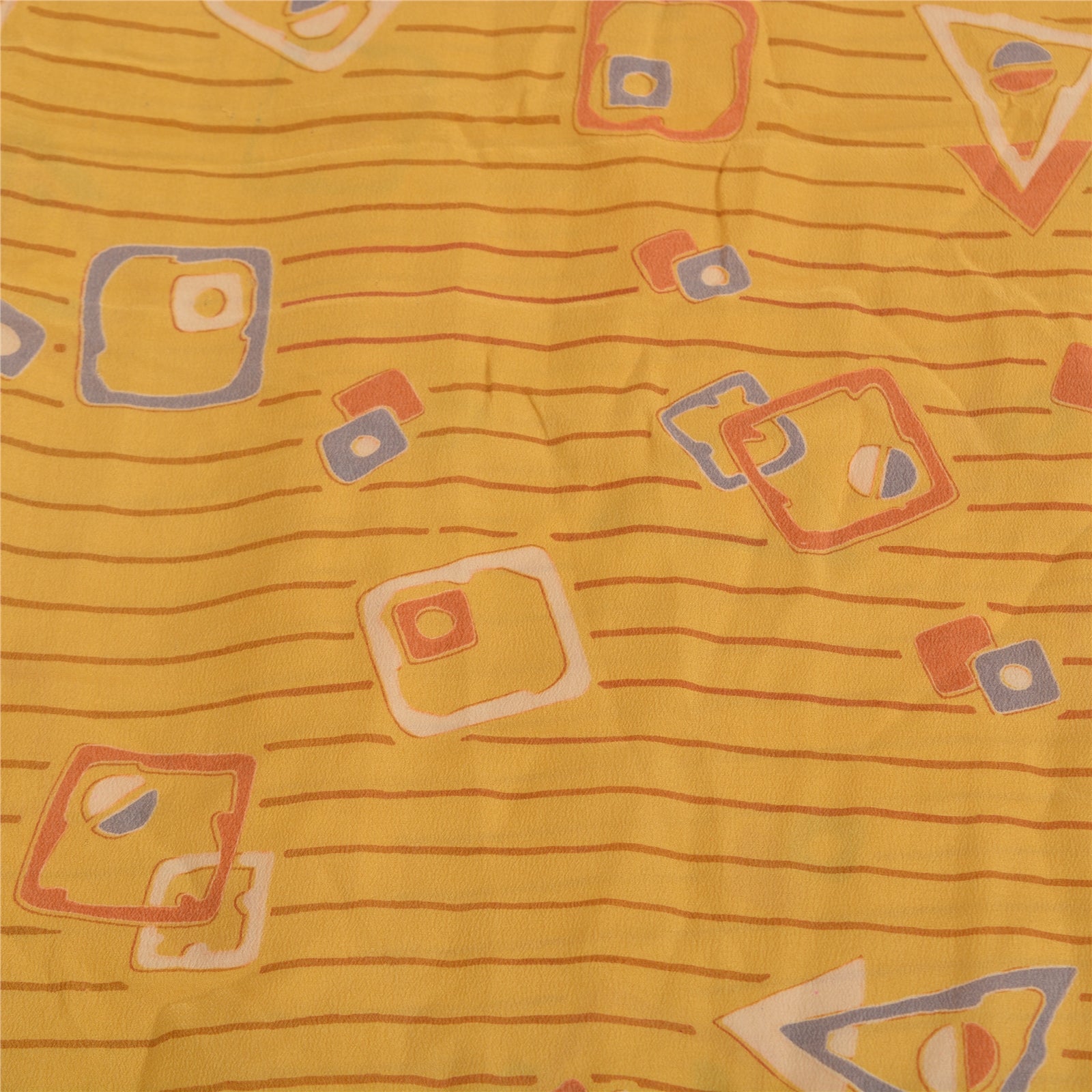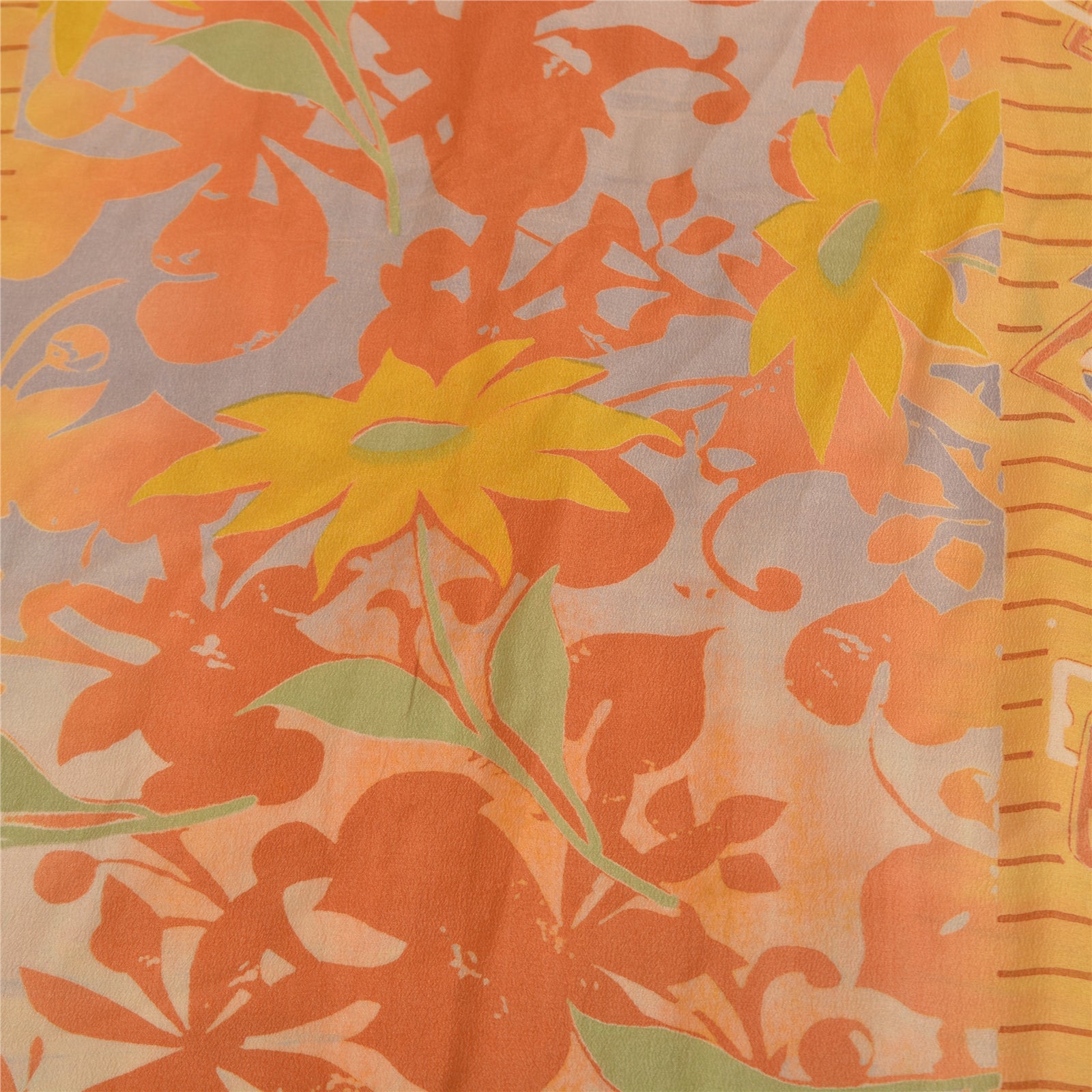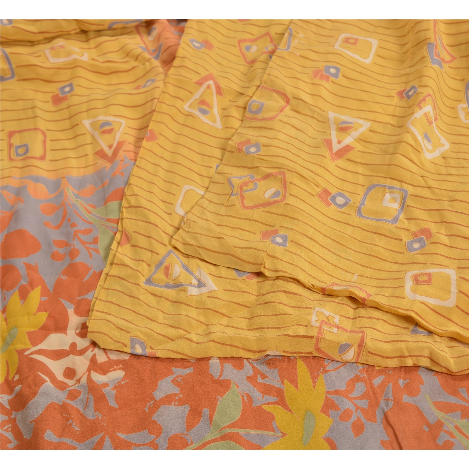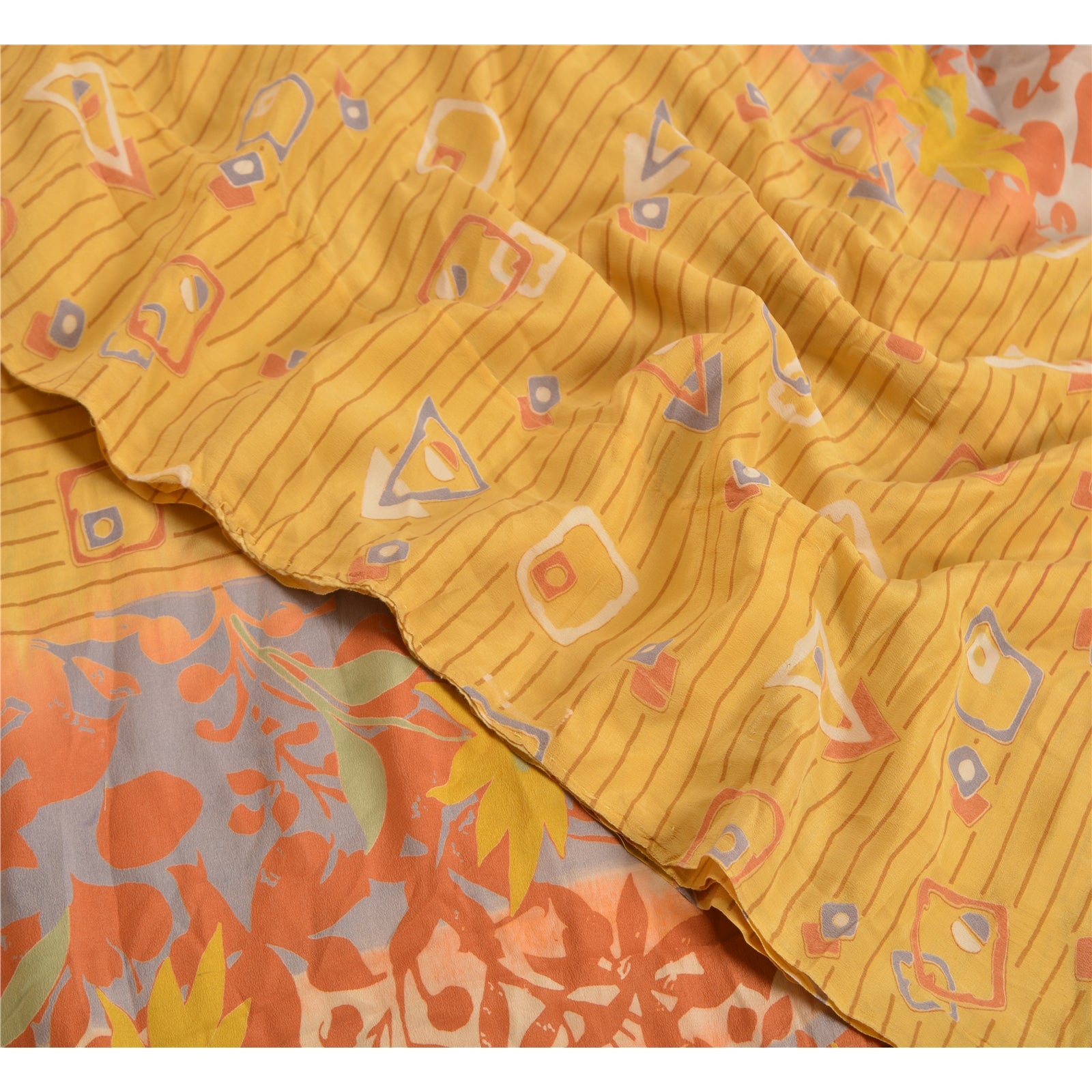 Sanskriti Vintage Sarees Indian Yellow Pure Crepe Silk Printed Sari Craft Sustainable Fabric