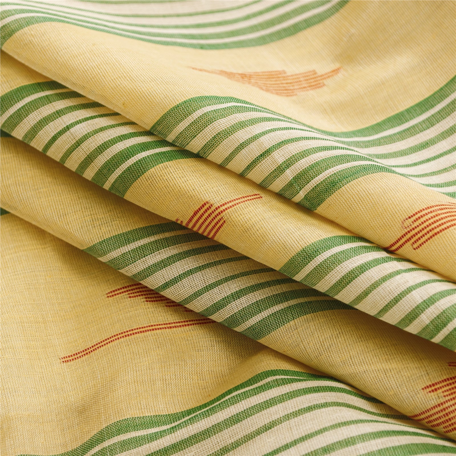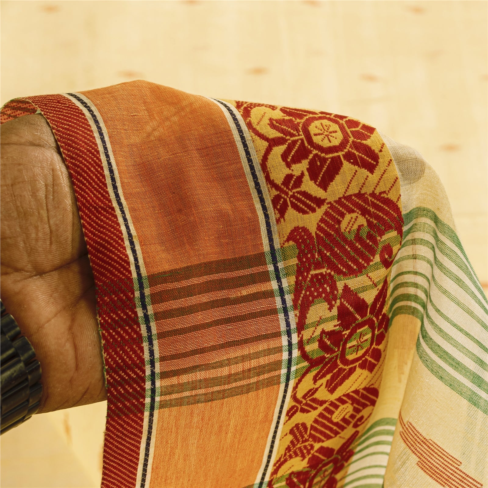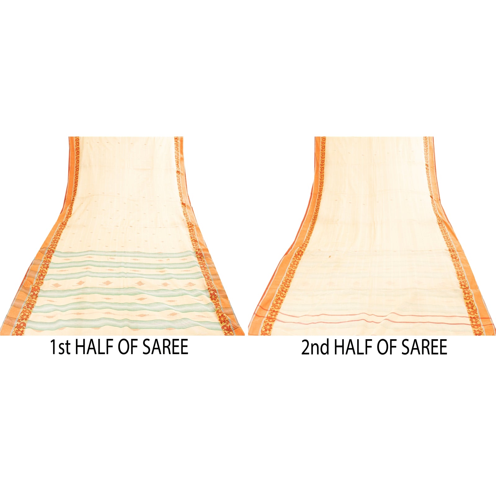 Sanskriti Vintage Sarees Ivory Tant Hand WovenPure Cotton Sari 5+yd Craft Fabric