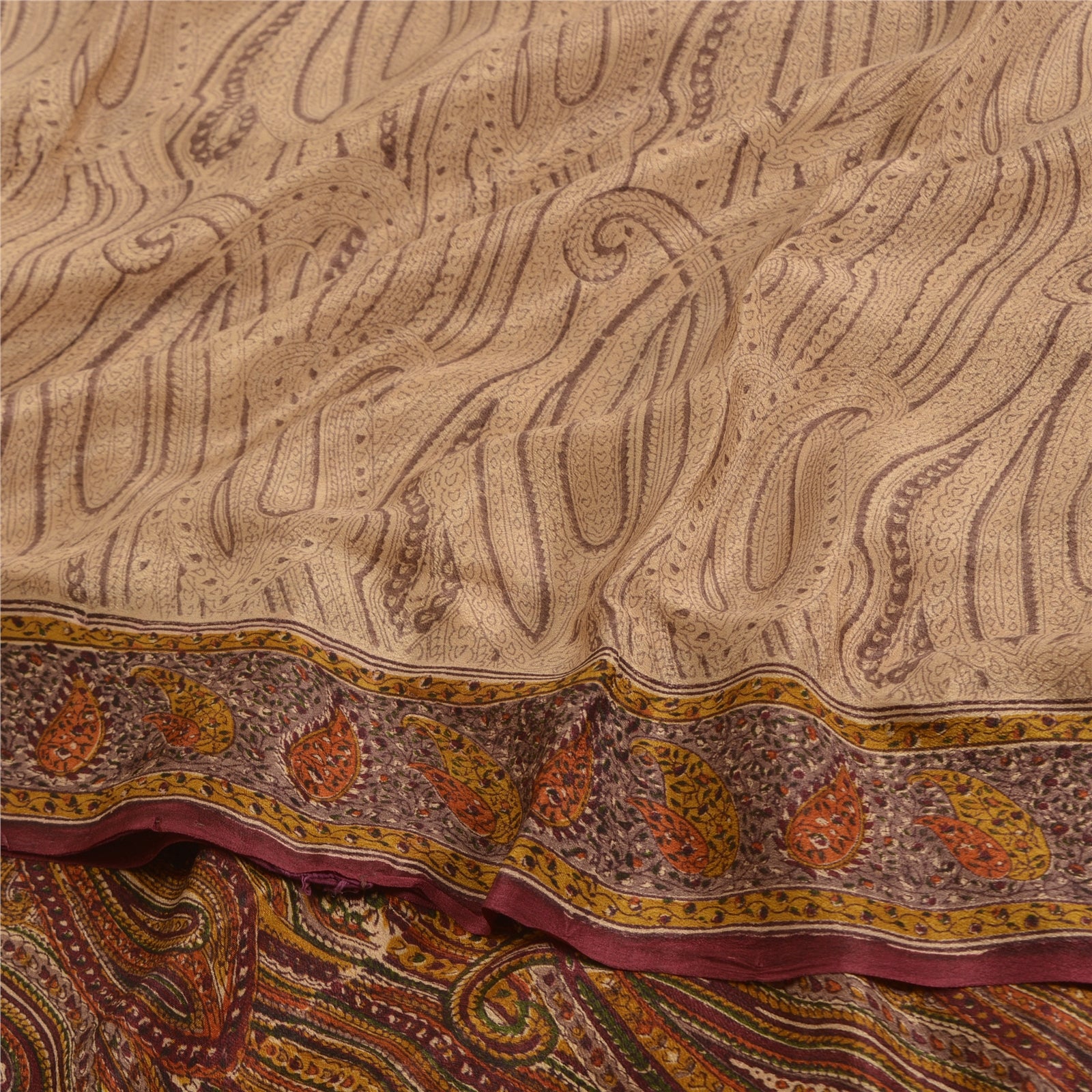 Sanskriti Vintage Sarees Light-Brown Pure Crepe Silk Printed Sari Craft Sustainable Fabric