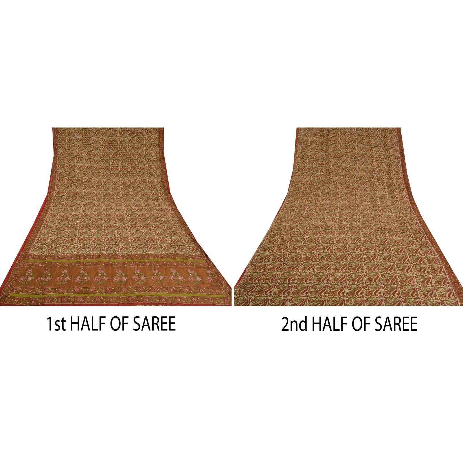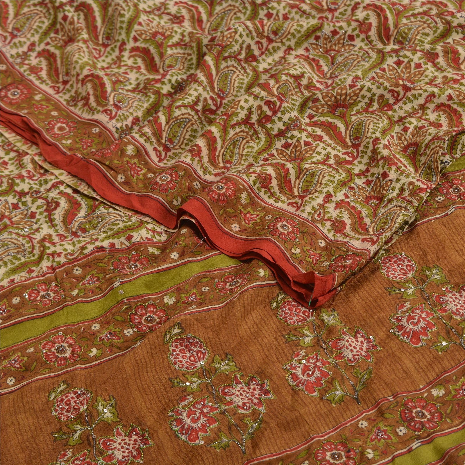 Sanskriti Vintage Sarees Multi Hand Beaded Pure Crepe Silk Printed Sari Sustainable Fabric