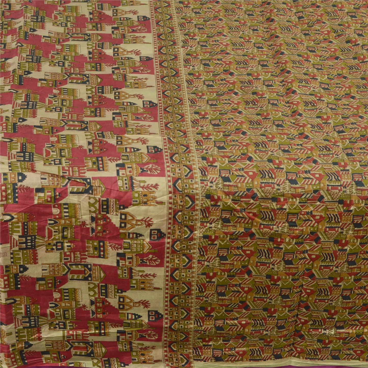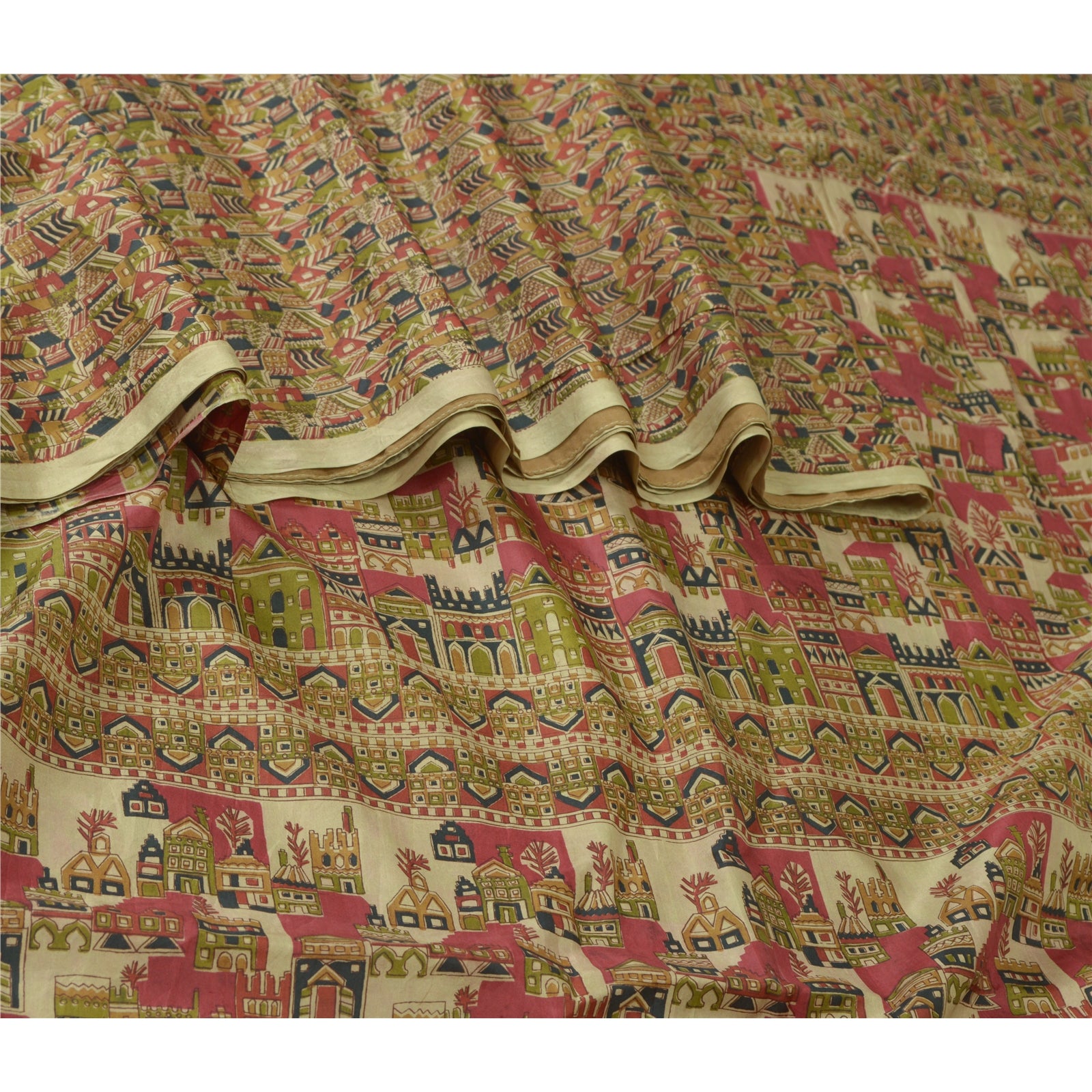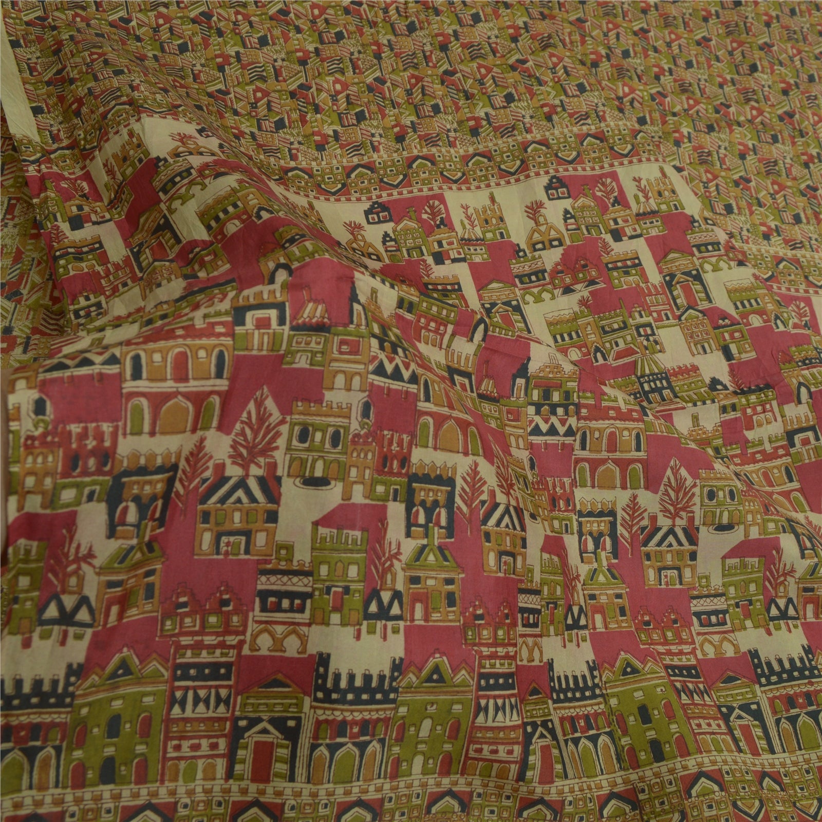 Sanskriti Vintage Sarees Multi Indian Sari 100% Pure Silk Printed Craft Sustainable Fabric