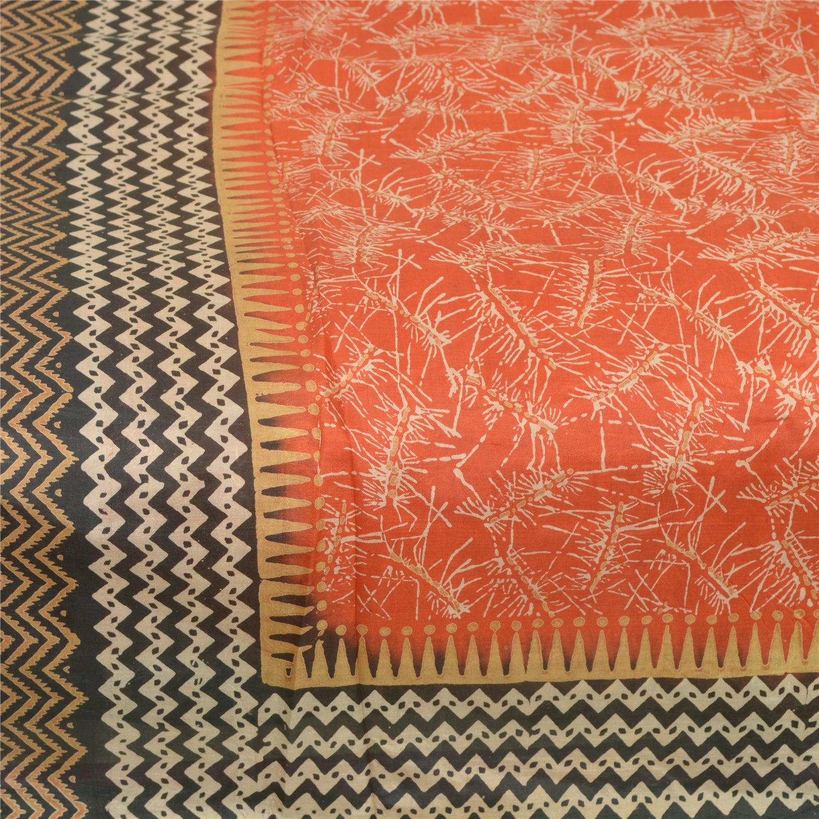 Sanskriti Vintage Sarees Orange/Black 100% Pure Silk Printed Sari Craft Sustainable Fabric