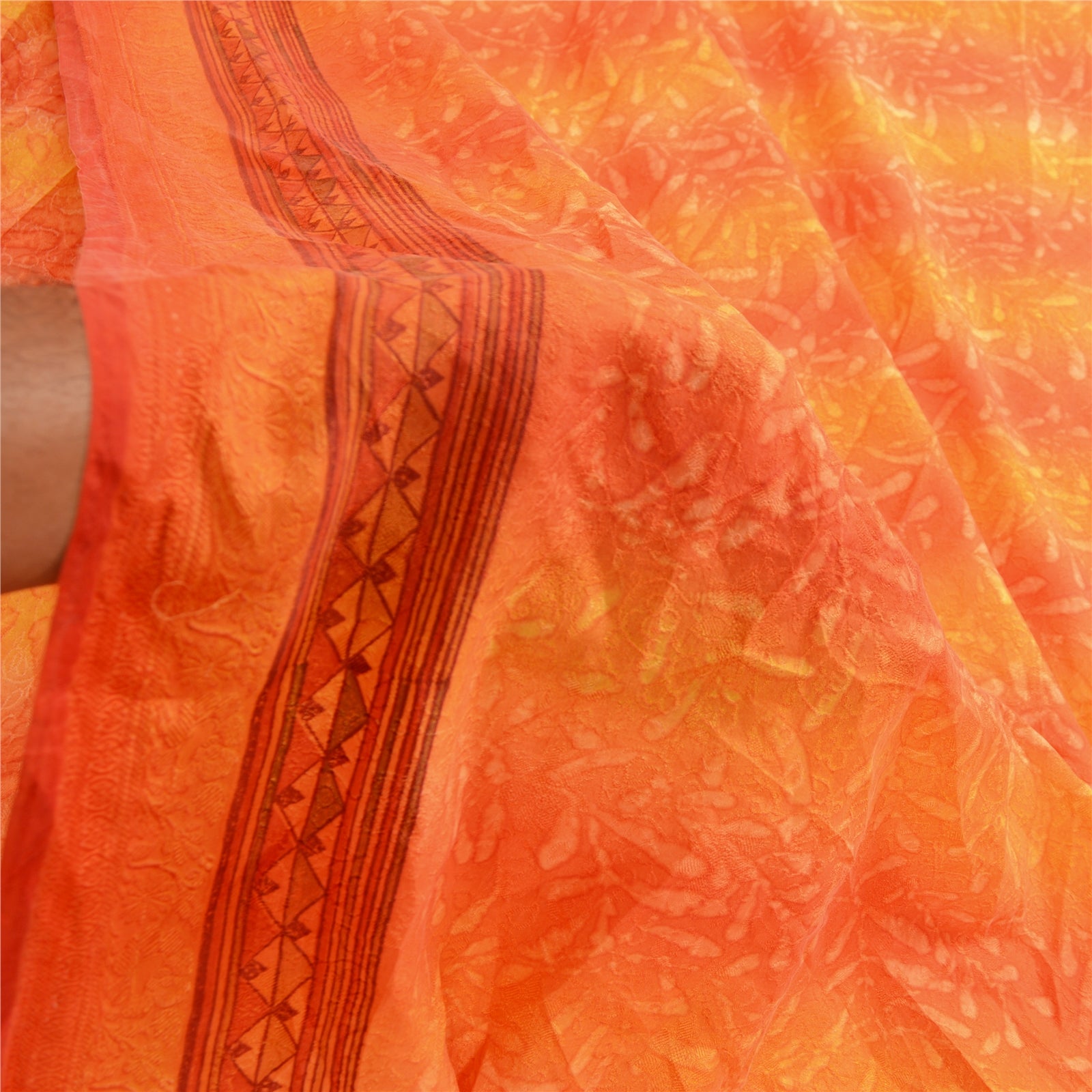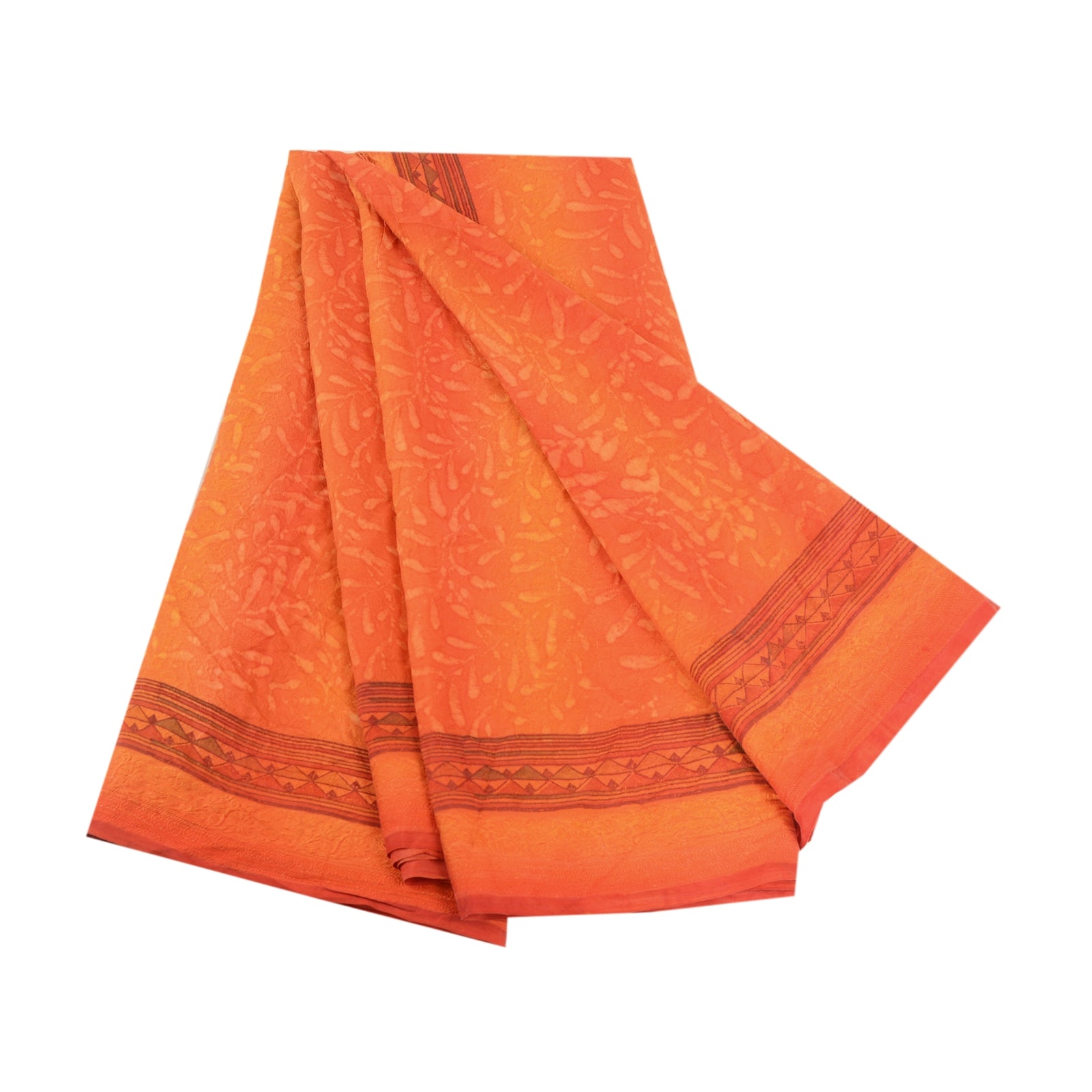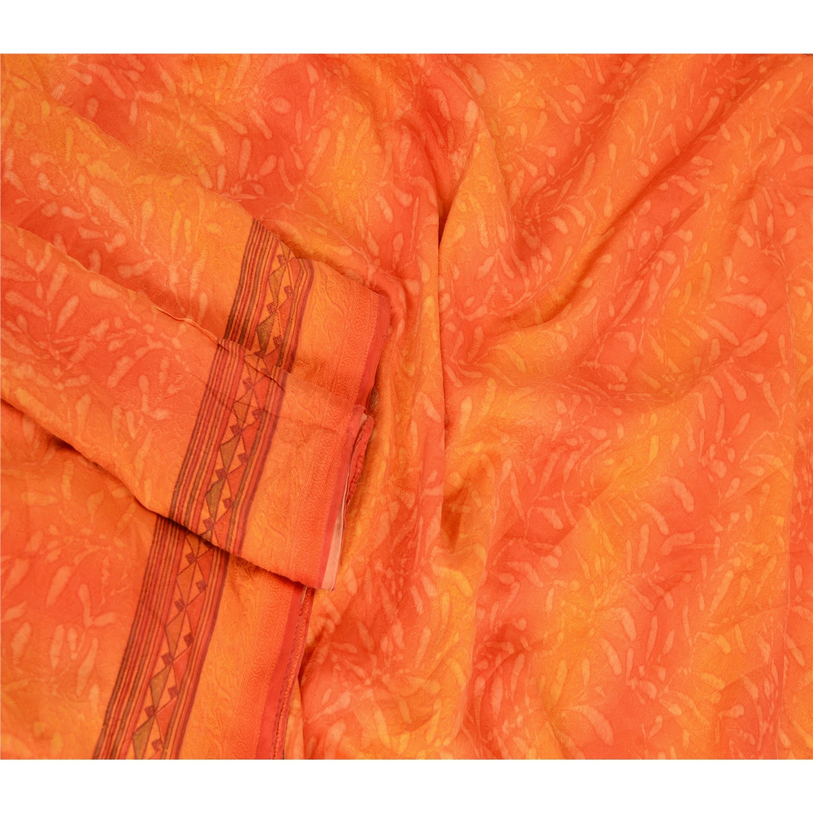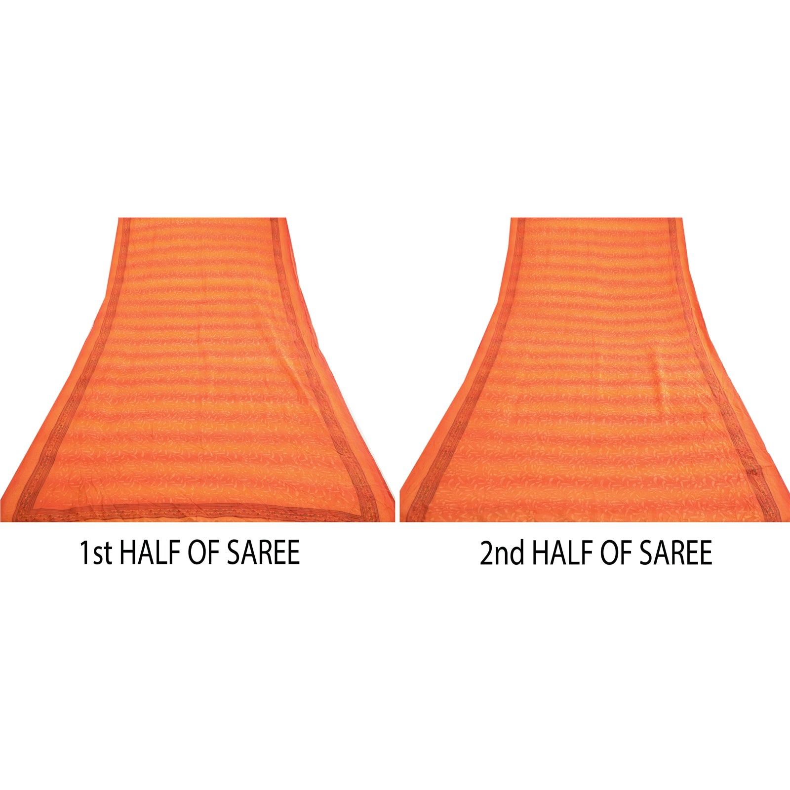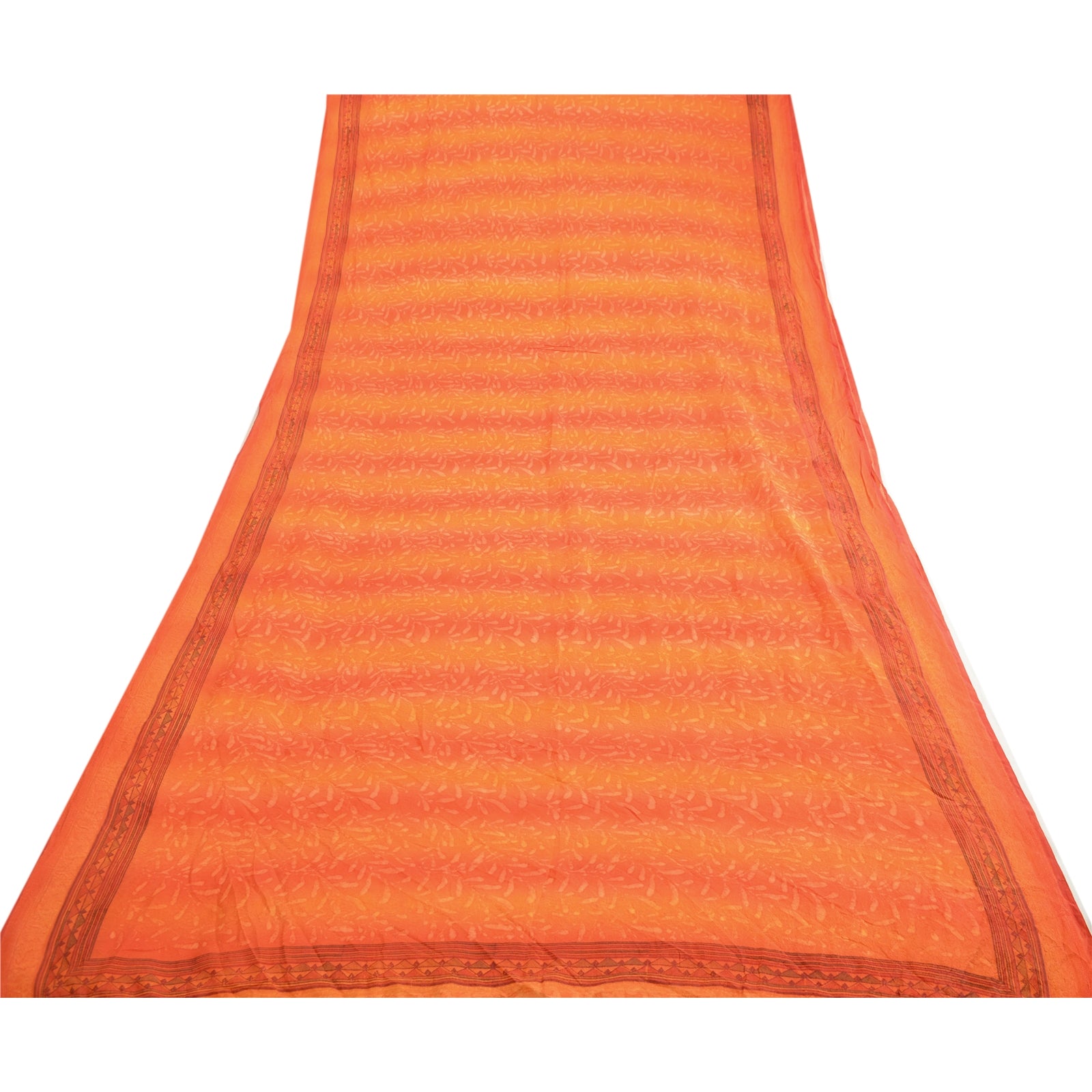 Sanskriti Vintage Sarees Orange From India Pure Silk Printed Sari Craft Sustainable Fabric