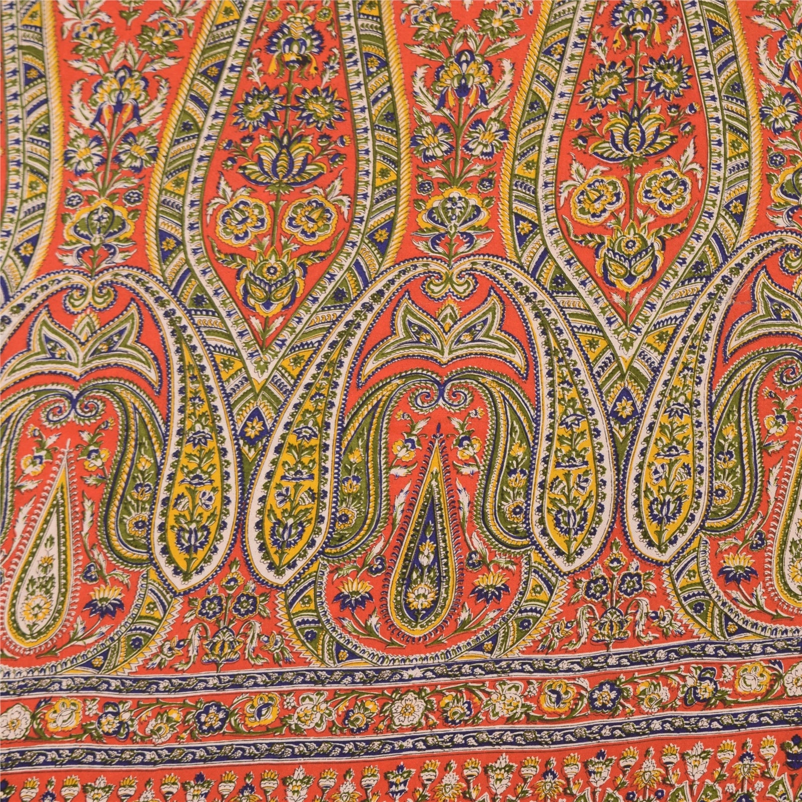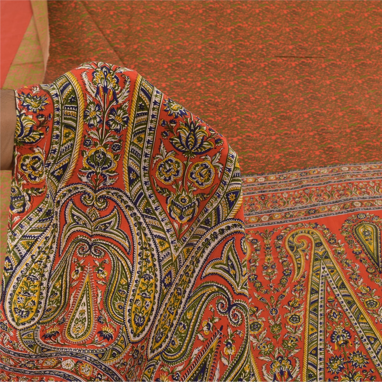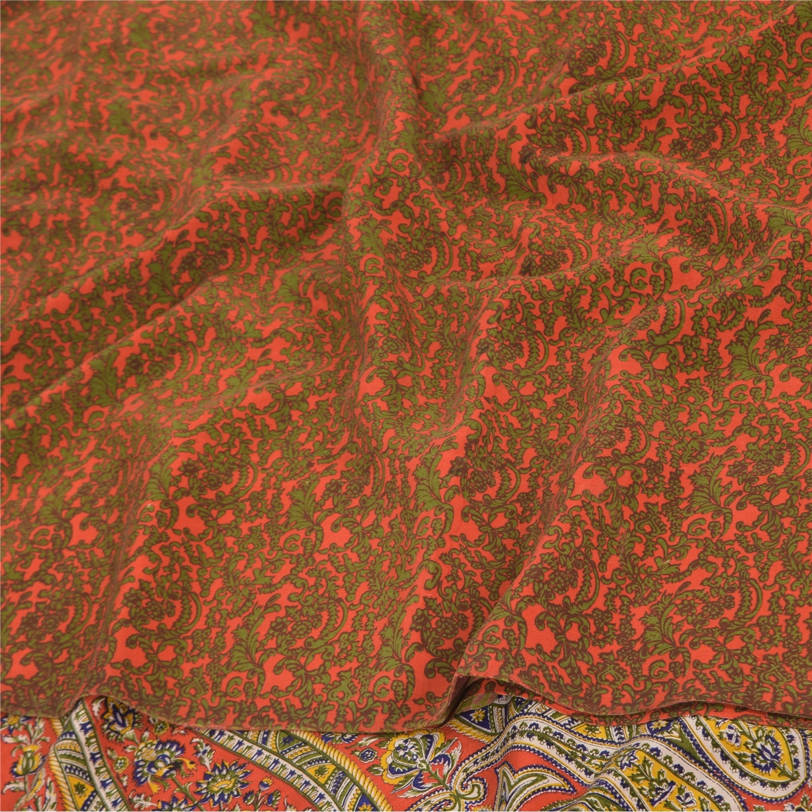 Sanskriti Vintage Sarees Orange/Green Pure Crepe Silk Printed Sari Craft Sustainable Fabric