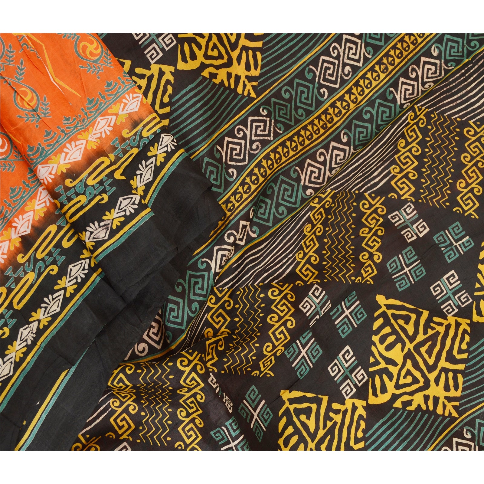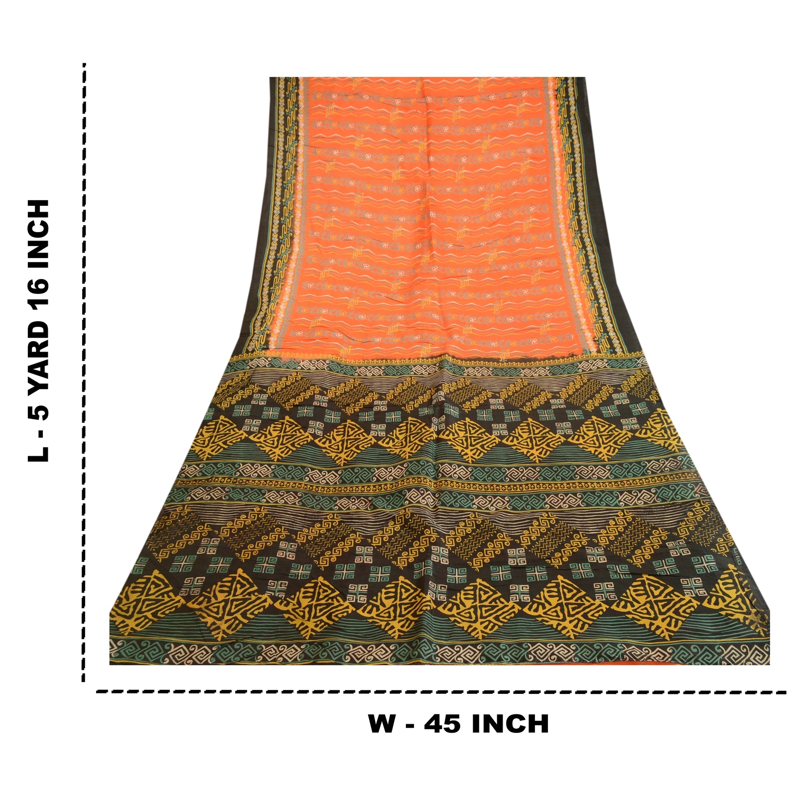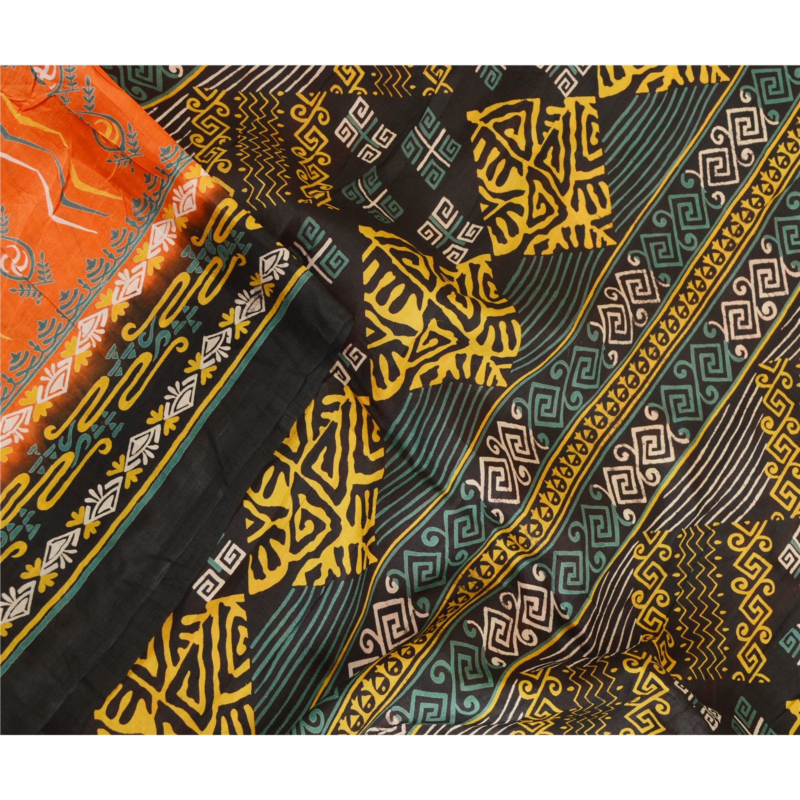 Sanskriti Vintage Sarees Orange Indian 100% Pure Silk Printed Sari Craft Sustainable Fabric