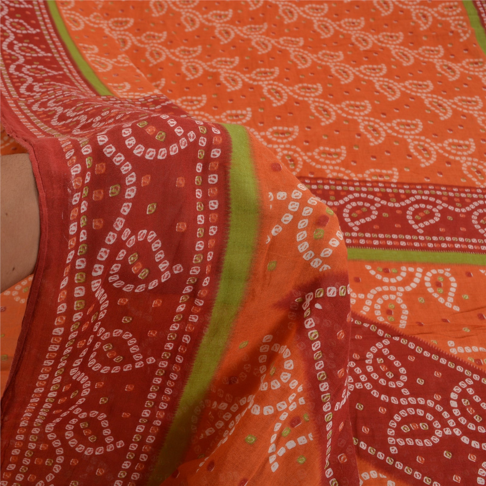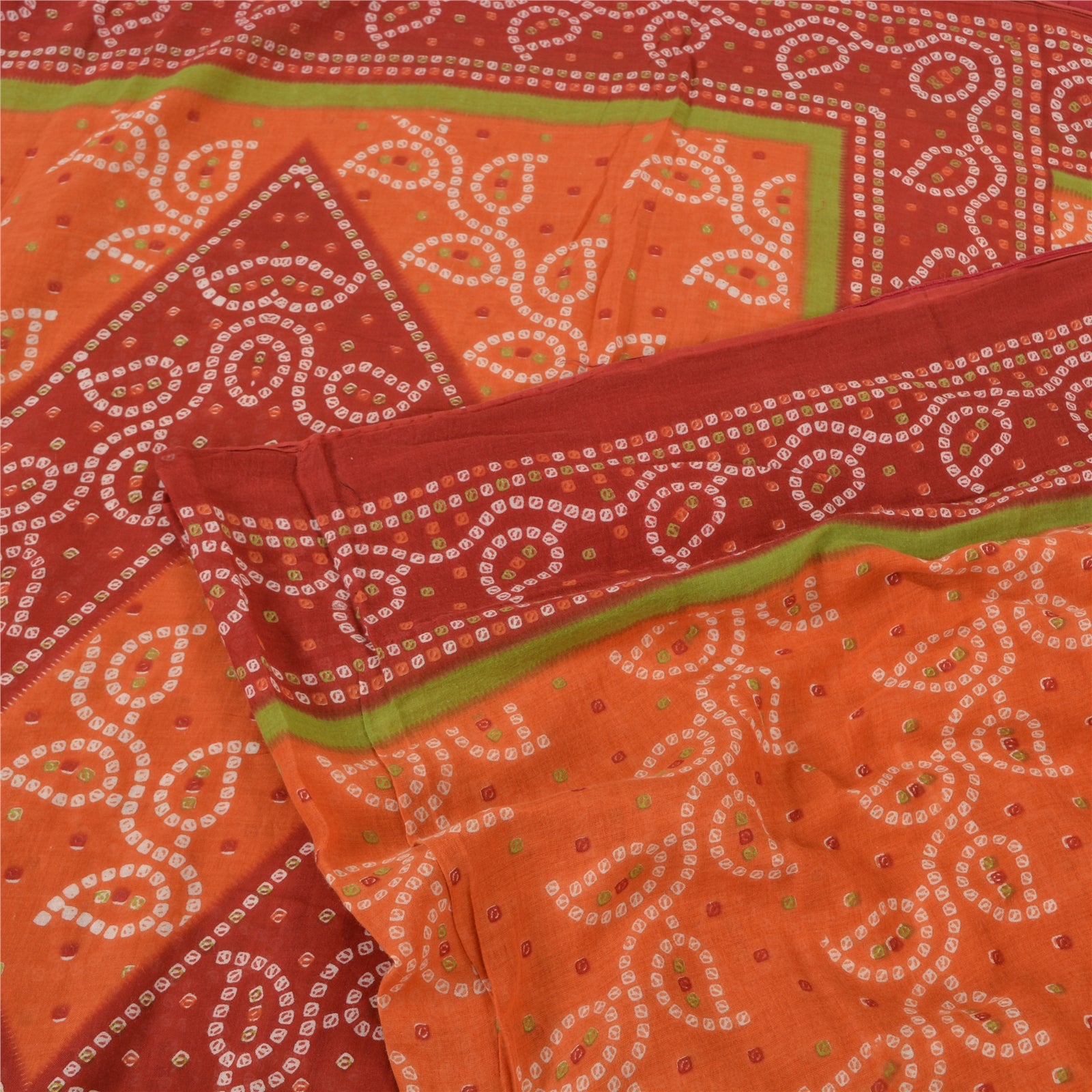 Sanskriti Vintage Sarees Orange/Red Bandhani Print Pure Cotton Sari Craft Sustainable Fabric