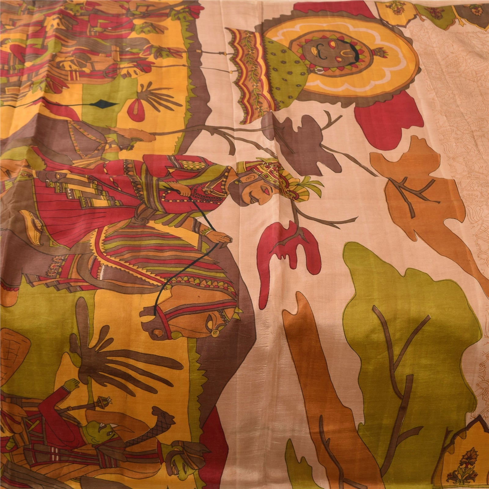 Sanskriti Vintage Sarees Peach 100%Pure Silk Human Printed Sari 6yd Craft Sustainable Fabric