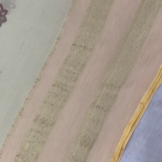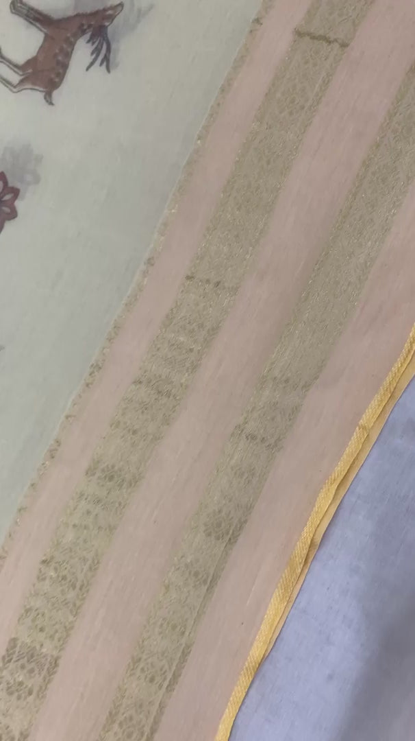 Sanskriti Vintage Sarees Peach Women Deer Pure Cotton Printed Sari 5+yd Fabric